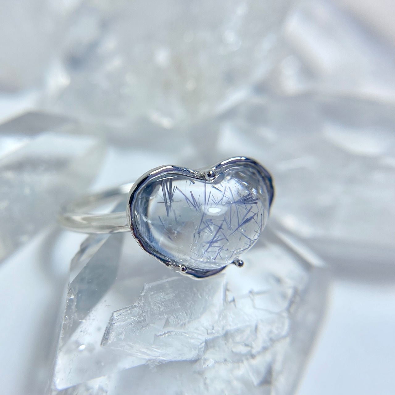 ハート!天然デュモルチェライトインクォーツシルバーリング 16号 原石から磨いた1点ものジュエリー!