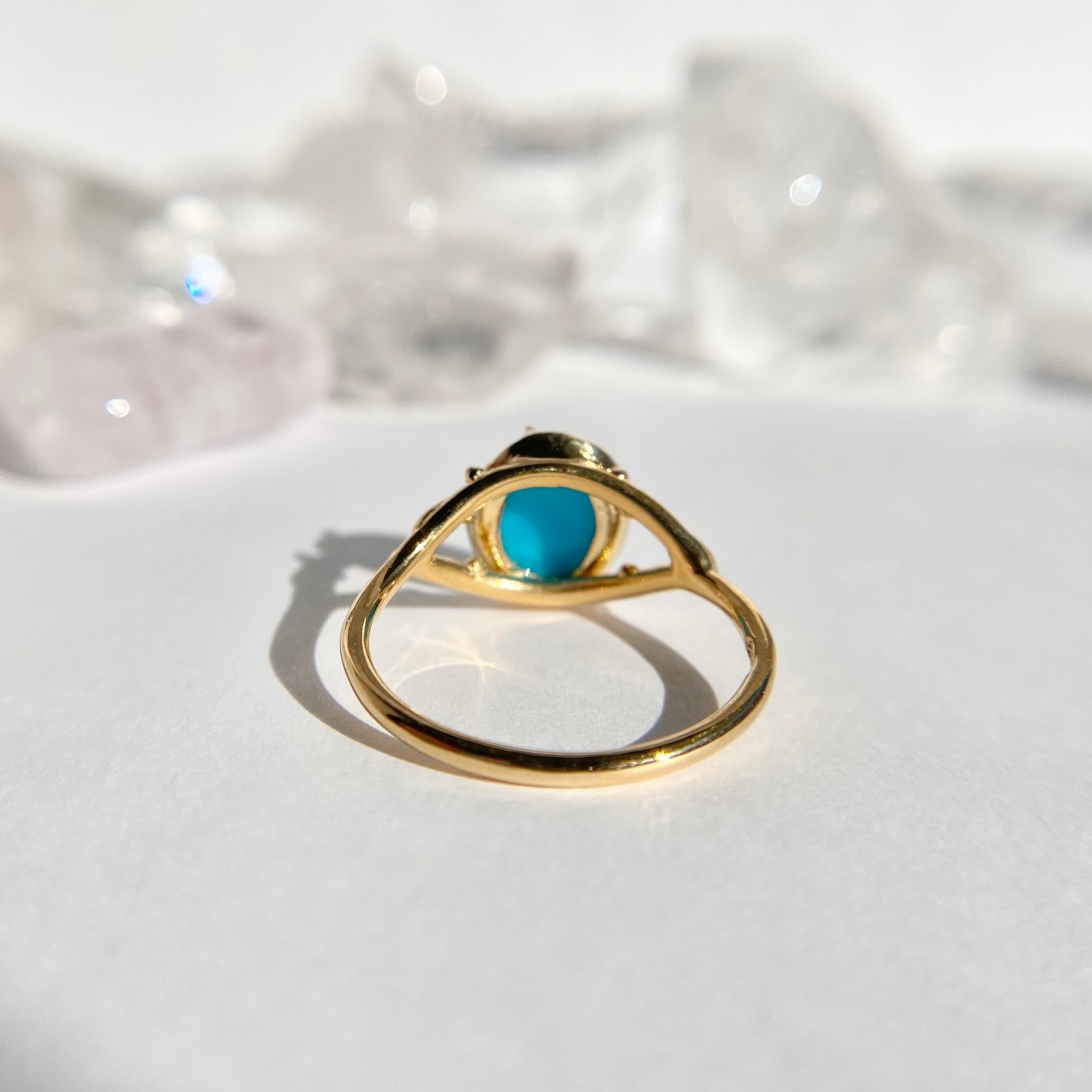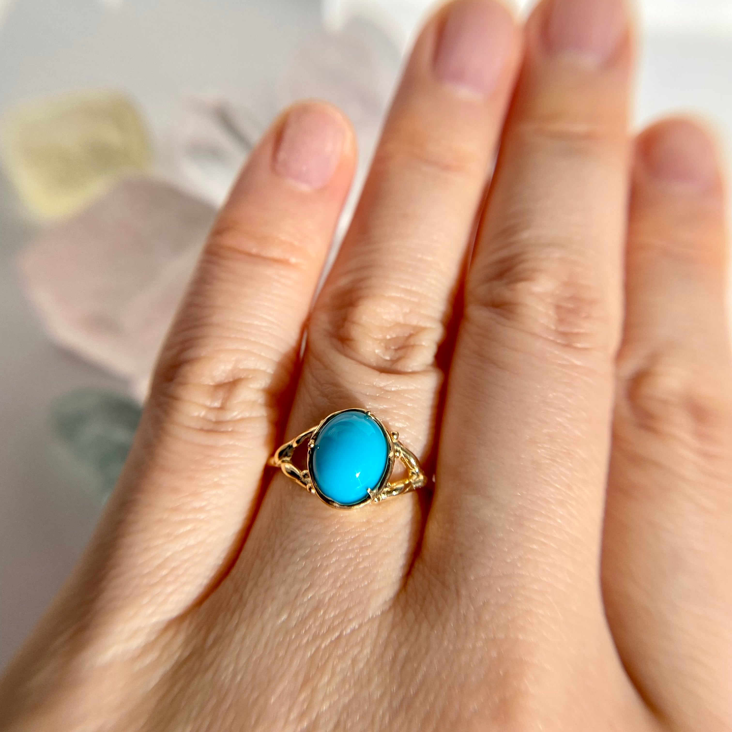 天然トルコ石リング 13.5号 スリーピングビューティー産原石から磨いた1点ものジュエリー!