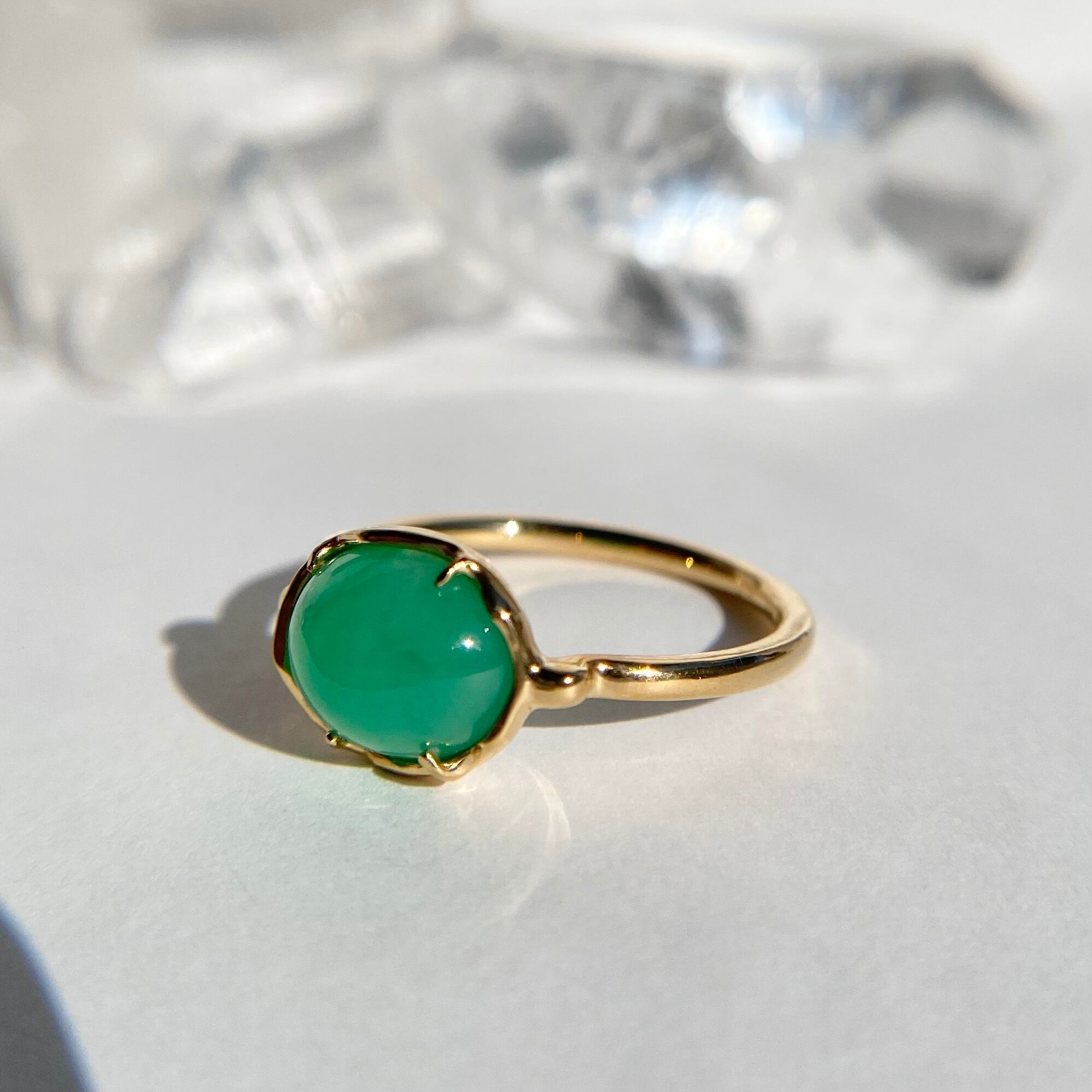 天然クリソプレーズリング 16号 原石から磨いた1点ものジュエリー!