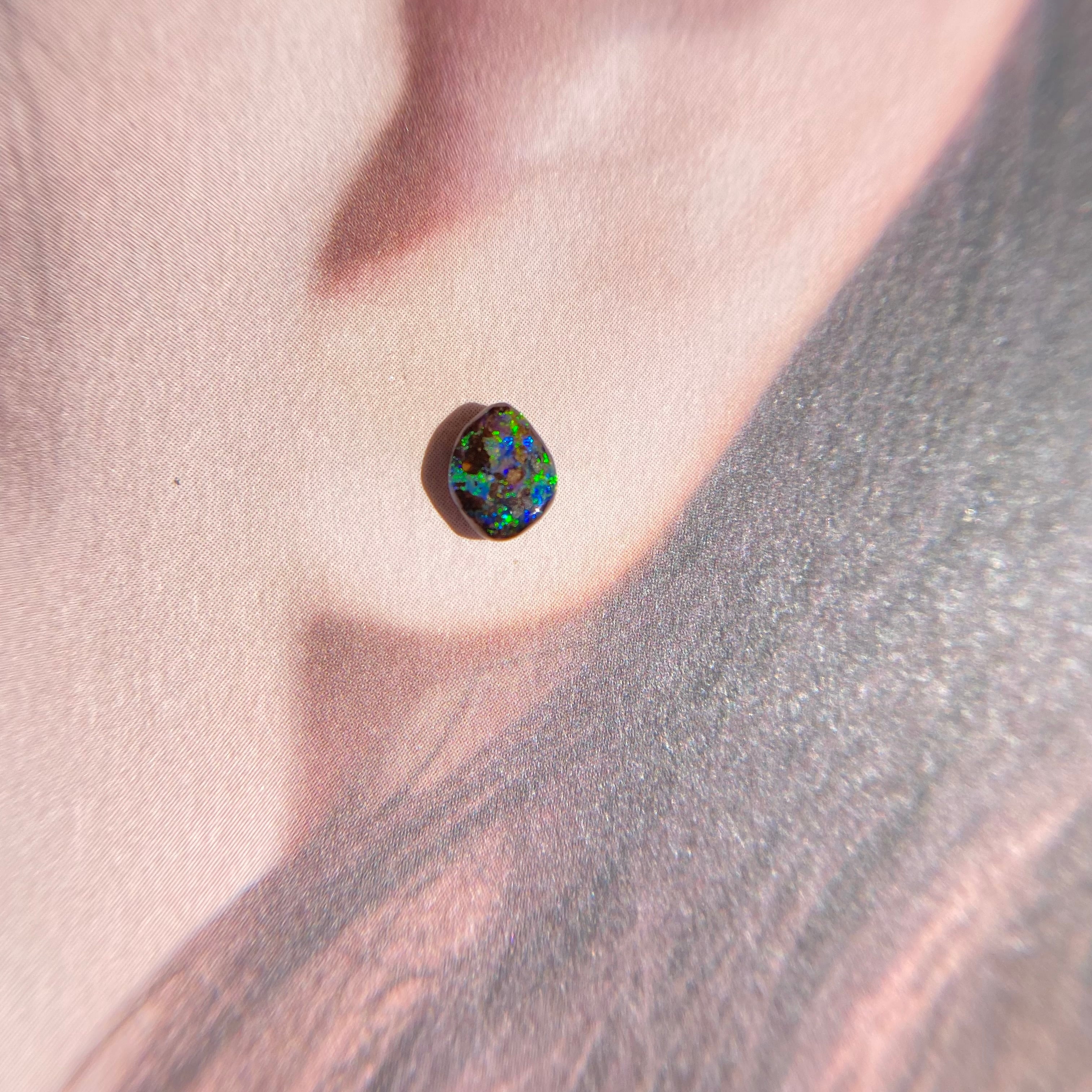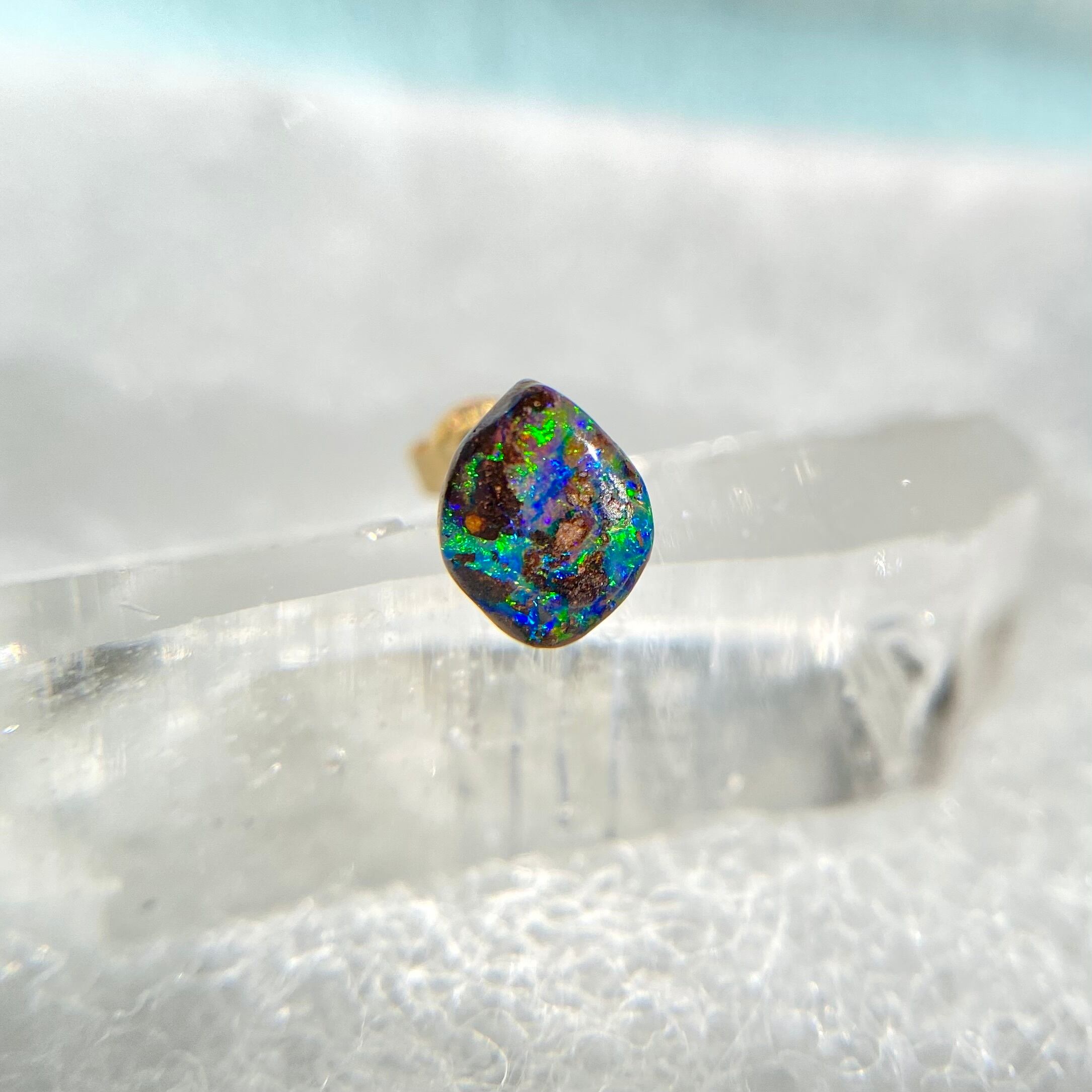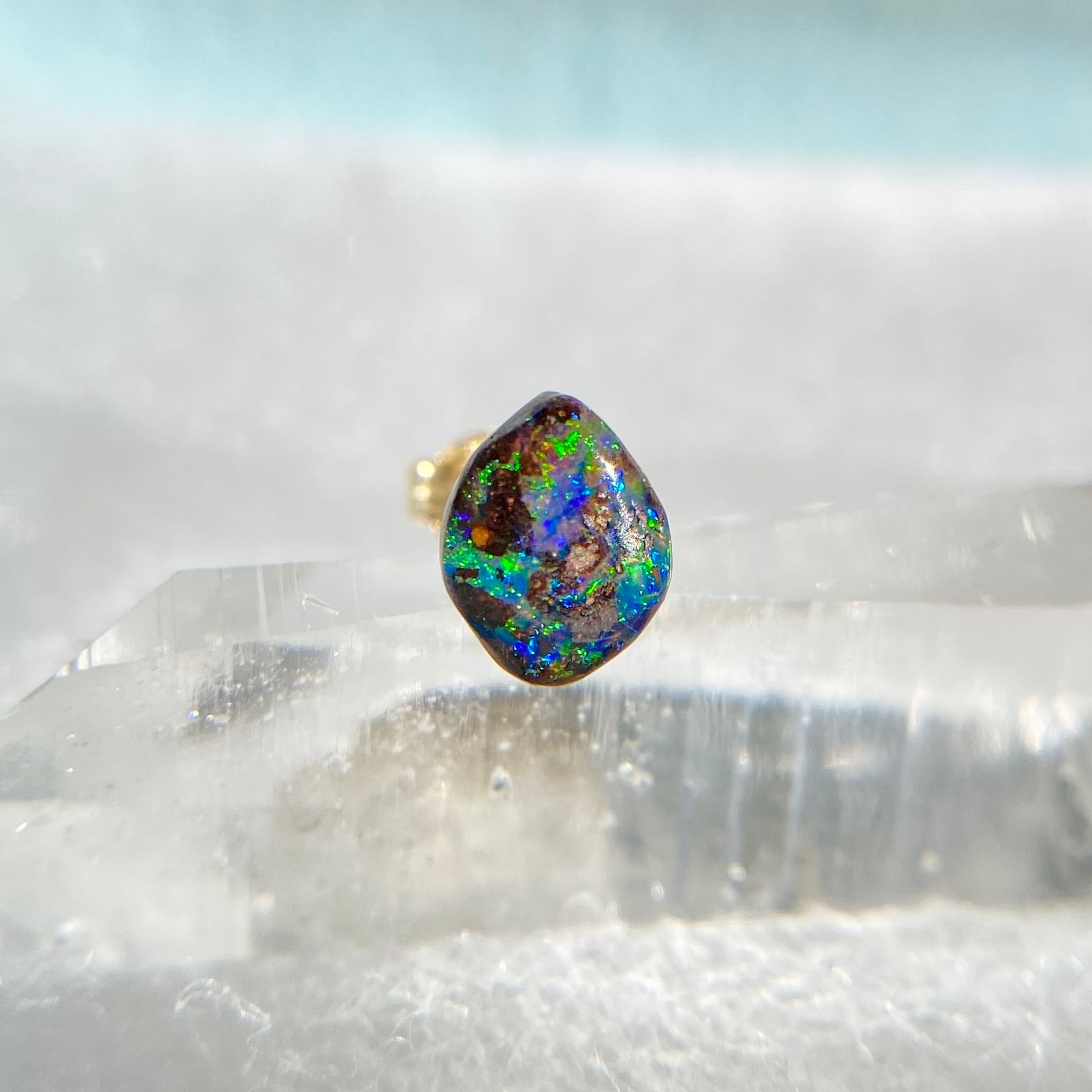 緑、青色の美しい遊色が魅力のK18天然ボルダーオパール片耳ピアスが新登場!