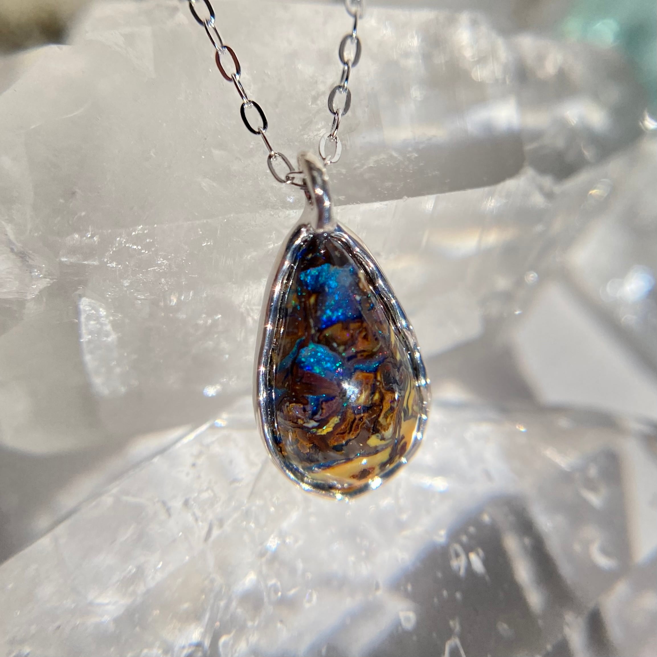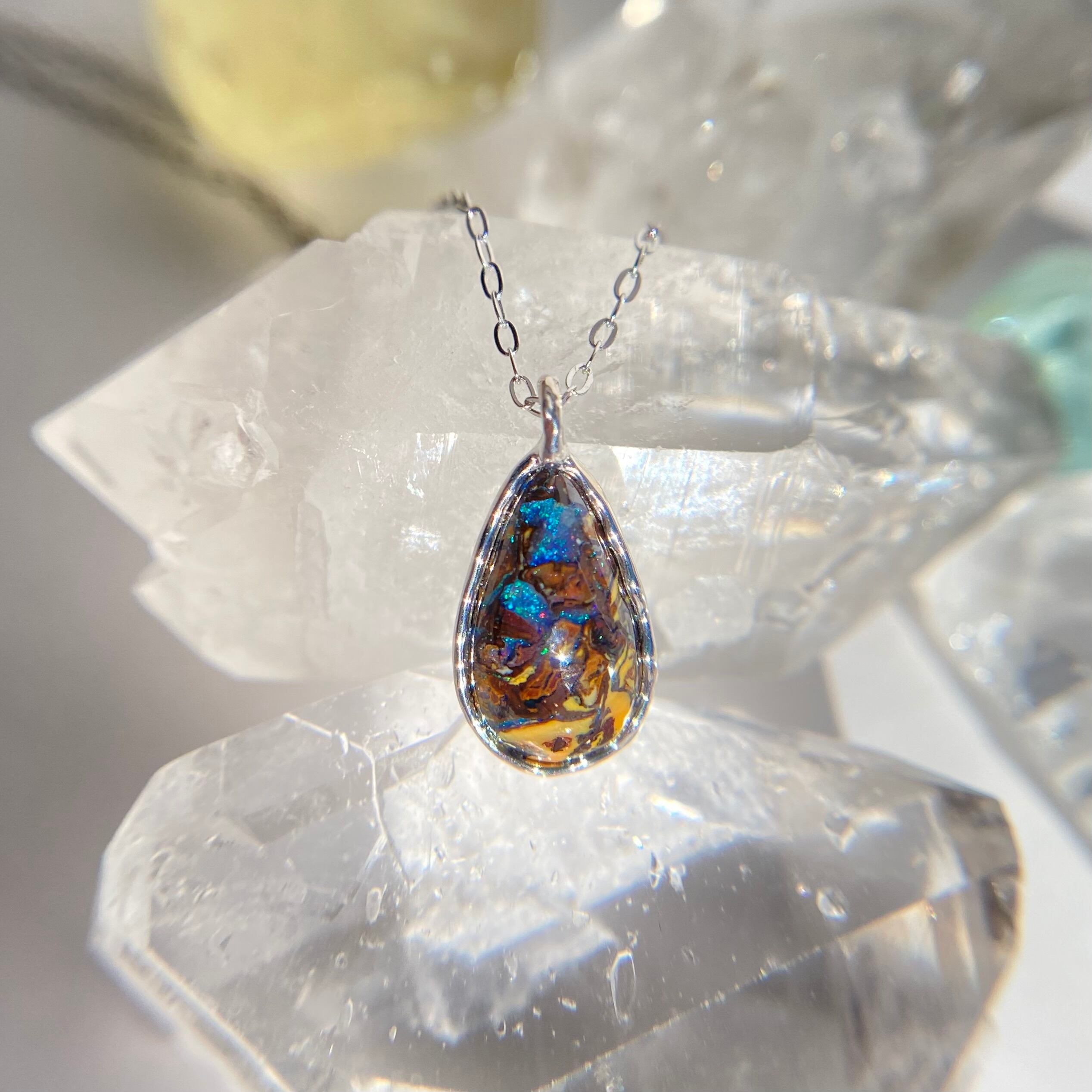 天然ボルダーオパールネックレス☆ オーストラリア産原石から磨いた1点もの!