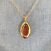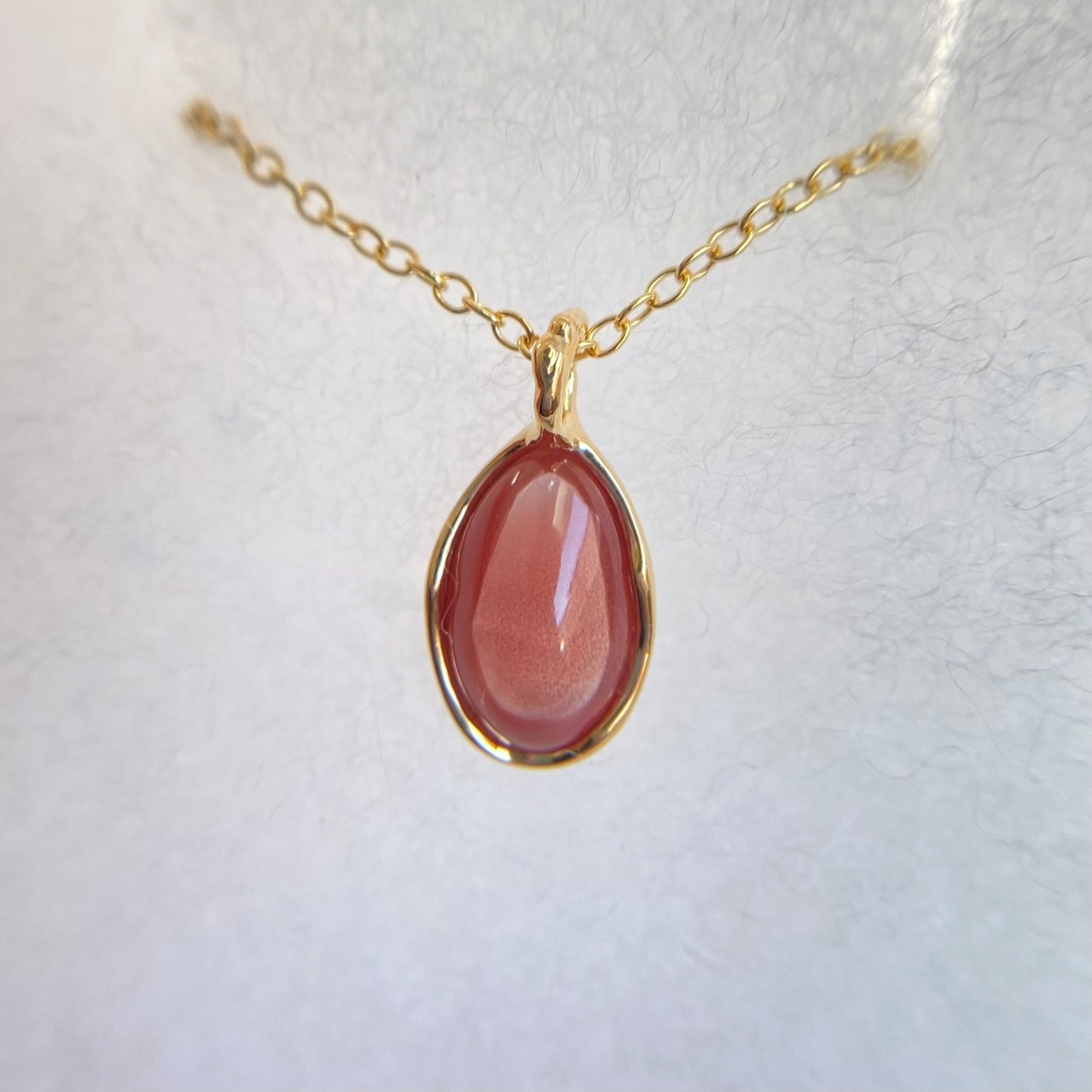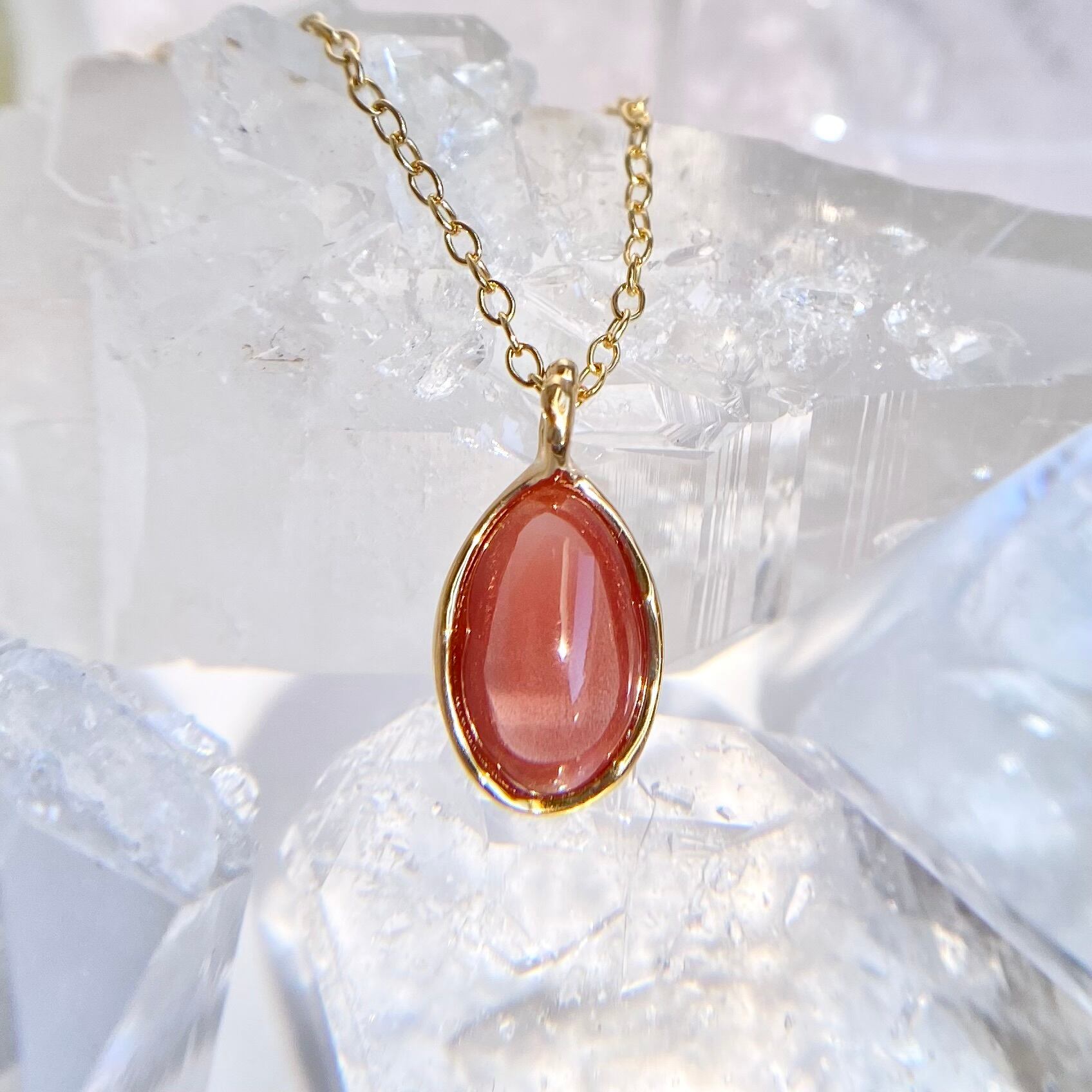 透明な朱色に光に透かすと紺色の部分がちらりと見える個性的なオレゴンサンストーンです。