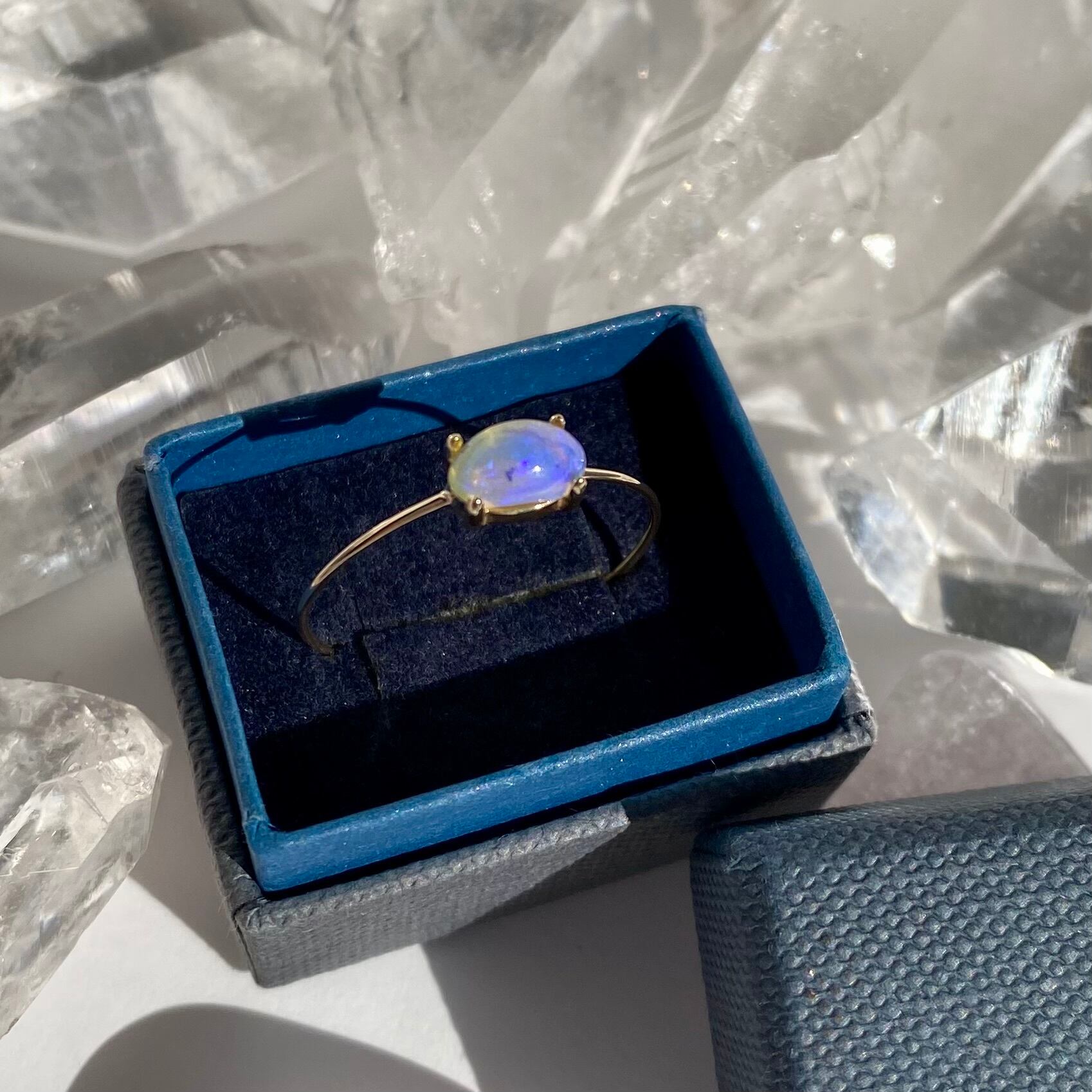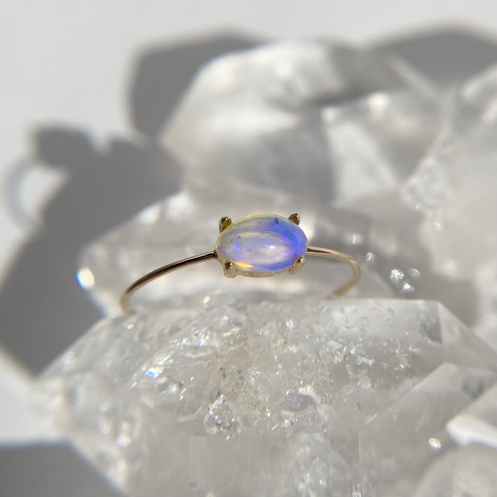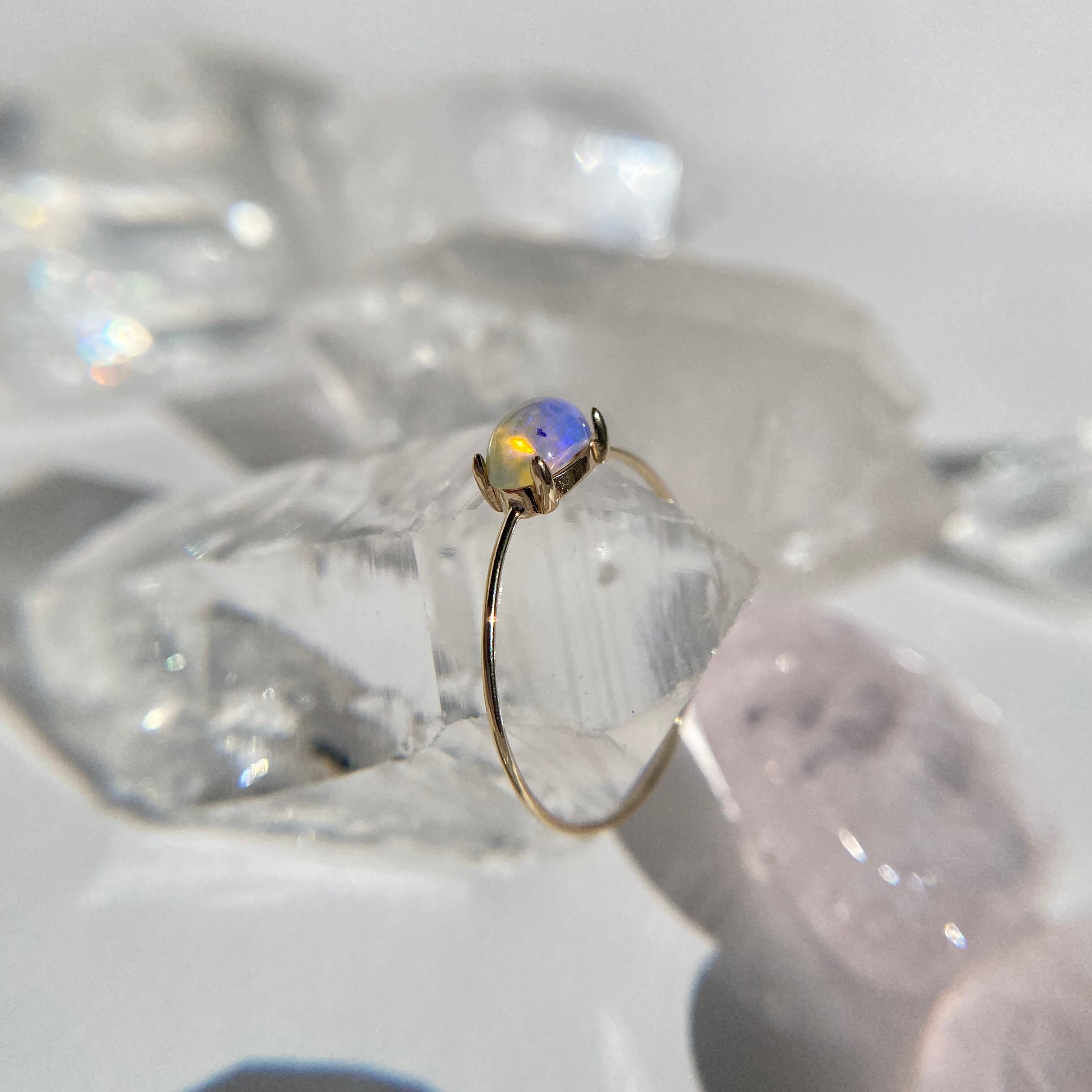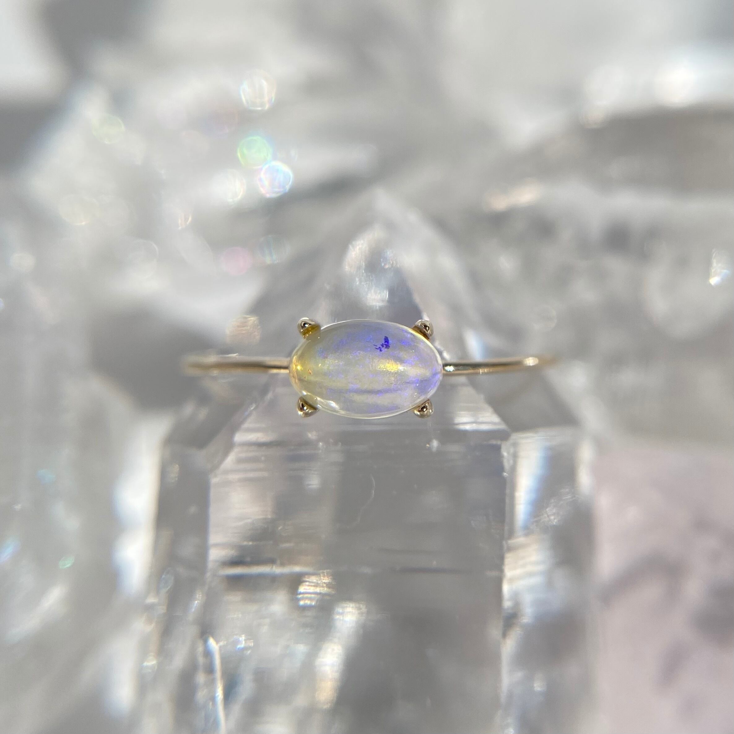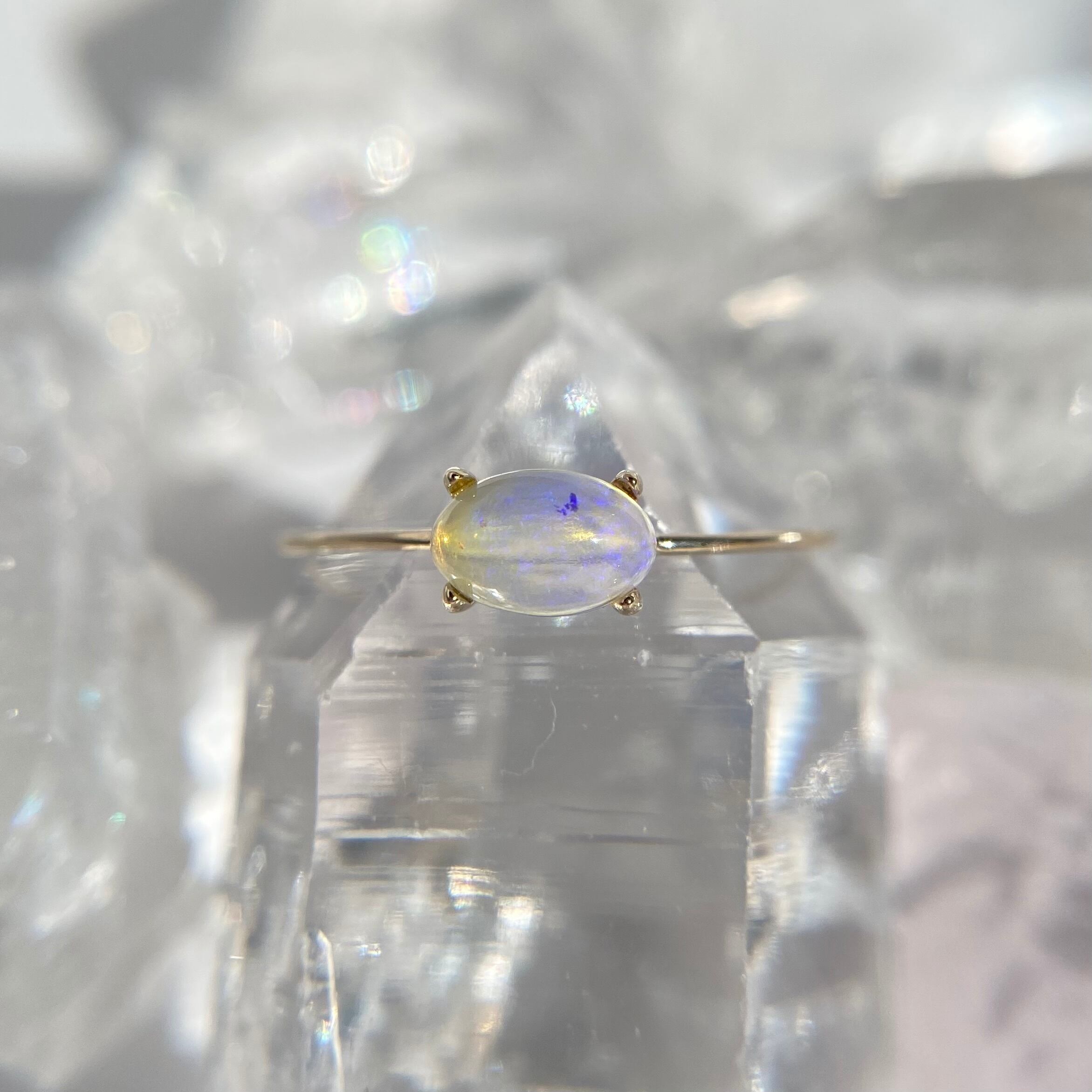 K10 天然オパールリング (選べるサイズ)オーストラリア産原石から磨いた1点ものジュエリー!