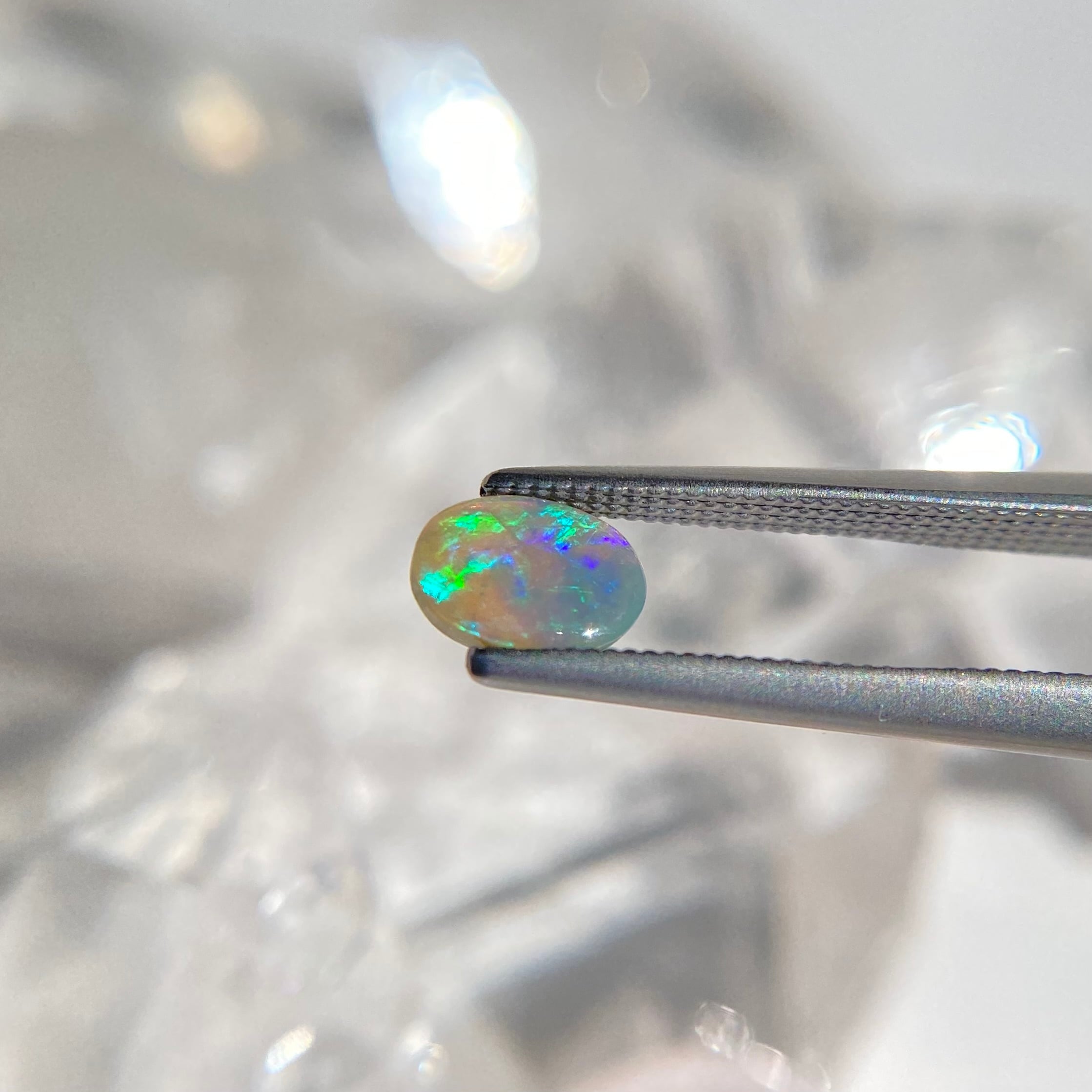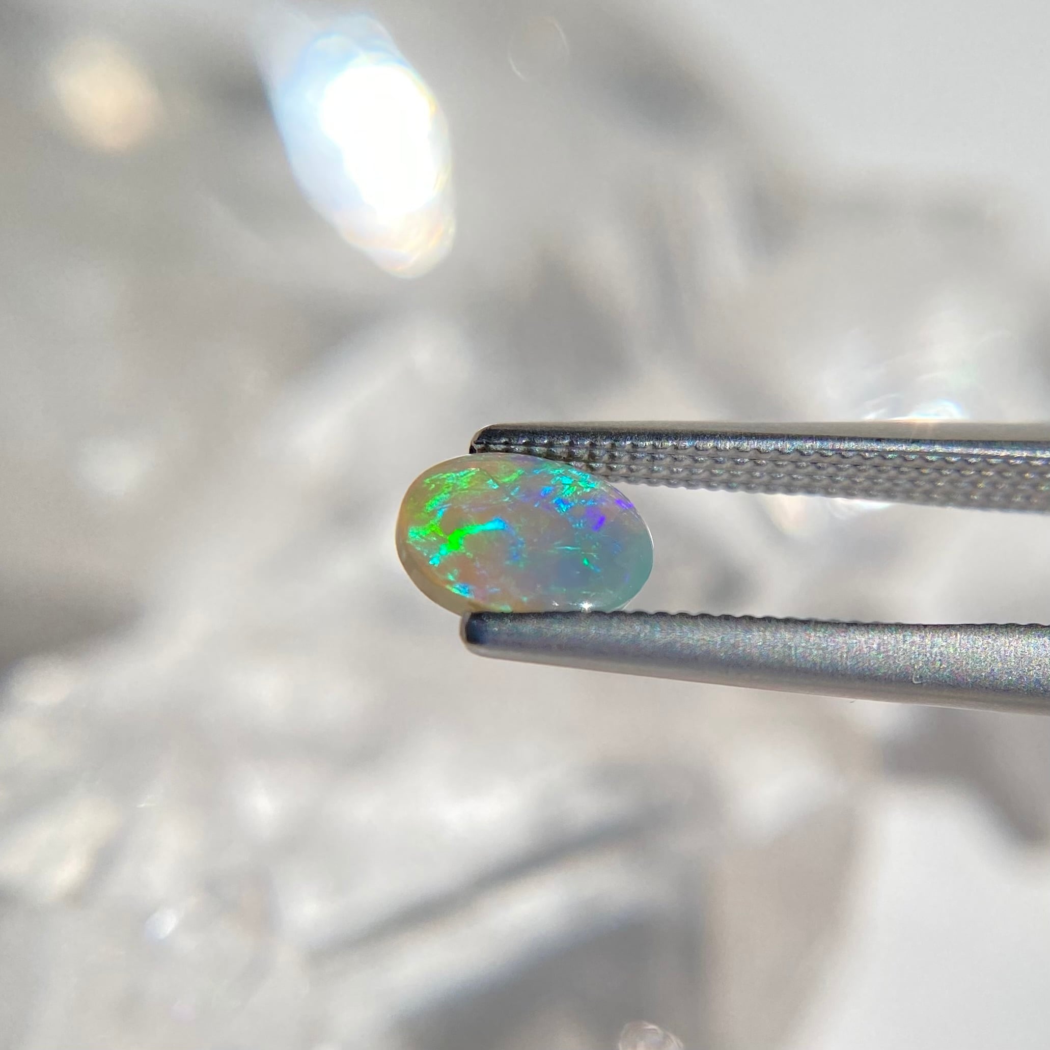 オパールは太陽光で遊色がとても綺麗に見えます。天然オパールの遊色の変化をお楽しみ下さい。