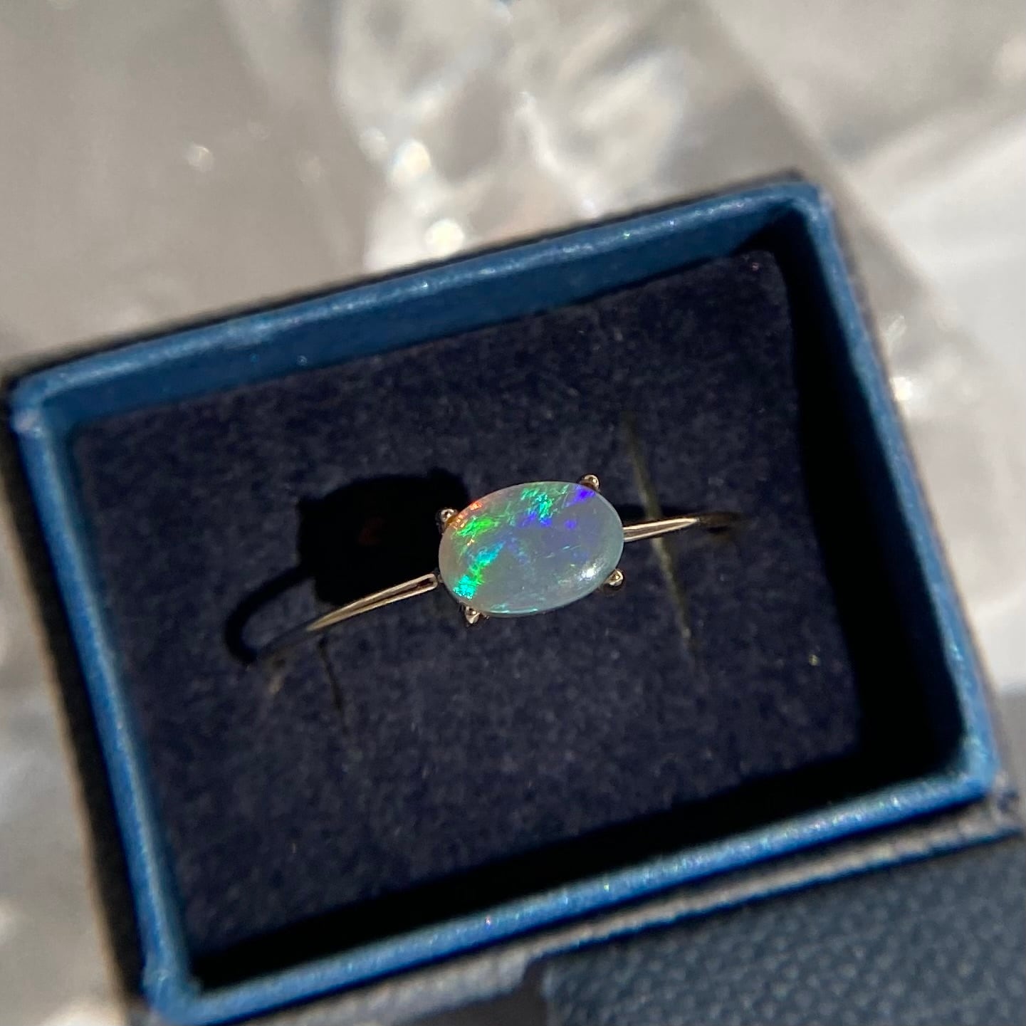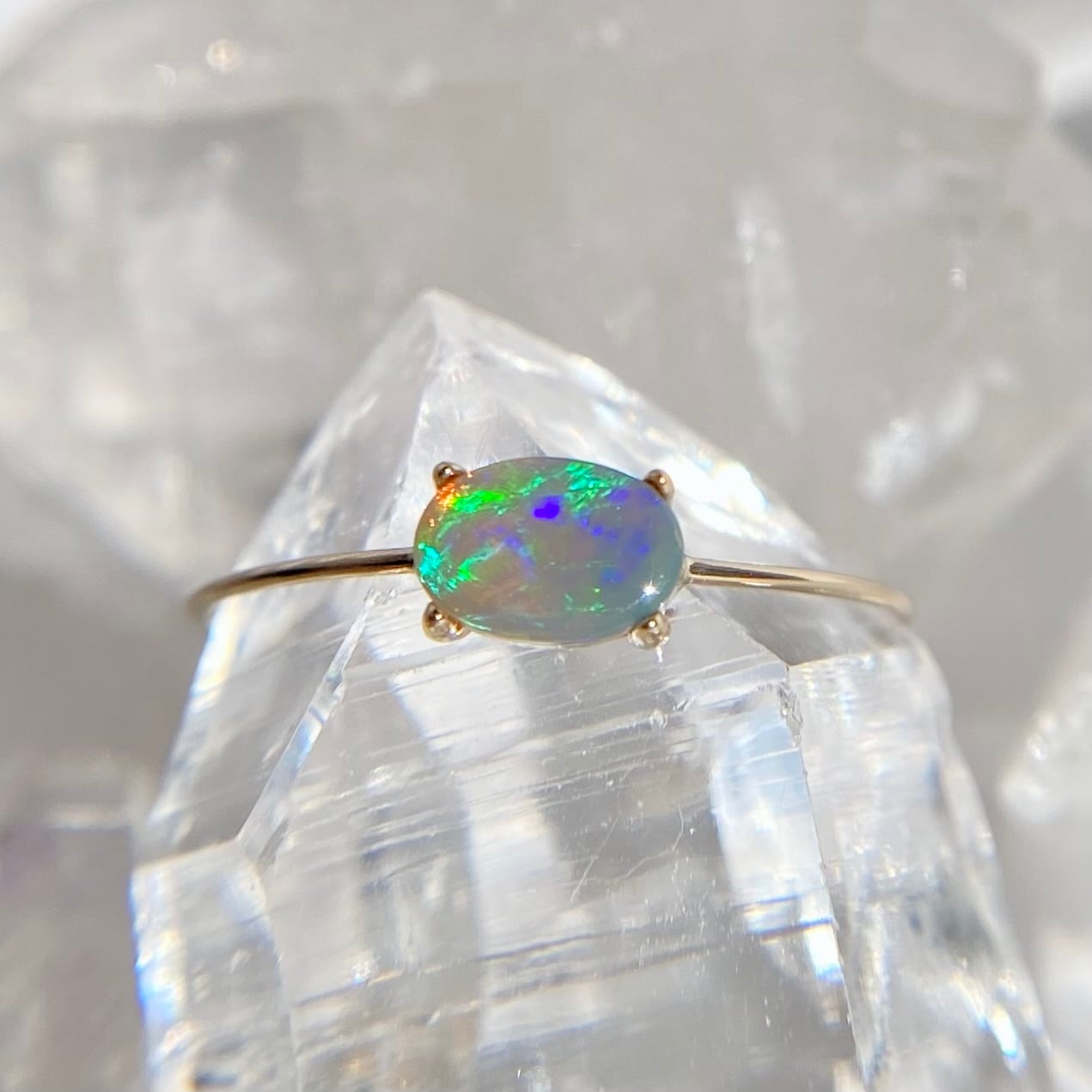 遊色がキレイな天然オパールK10リング。