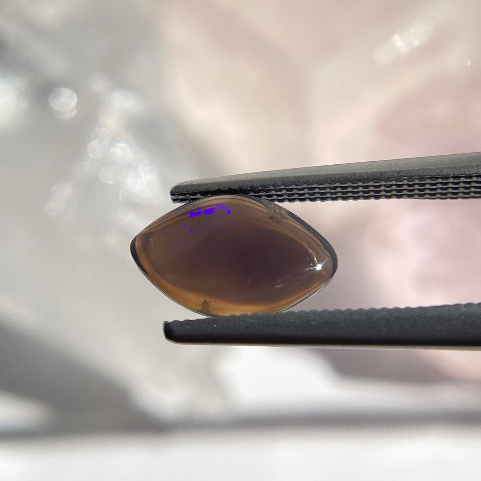透明感のあるオパールでグレーからブラックカラーに浮かび上がる青紫色の遊色が神秘的です。