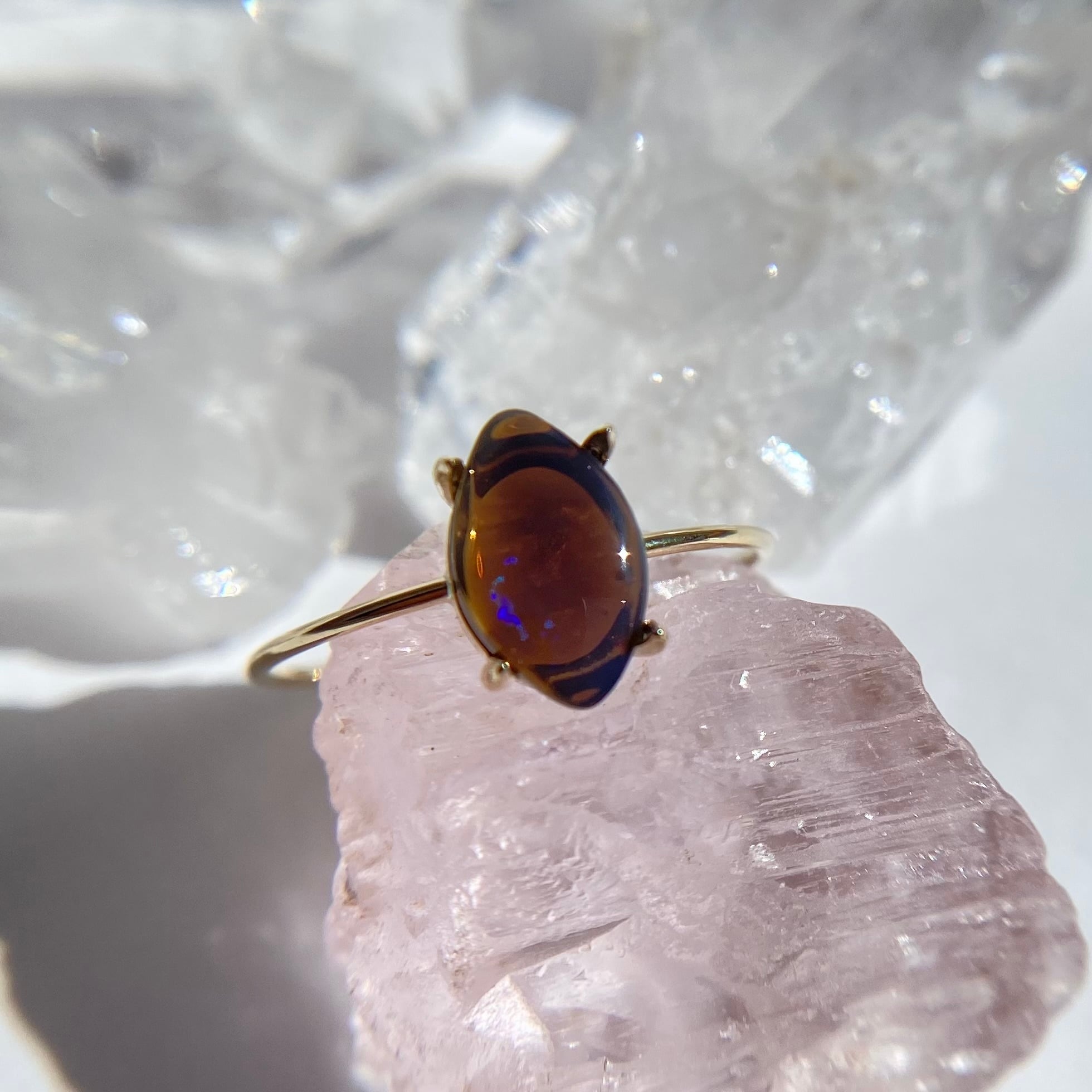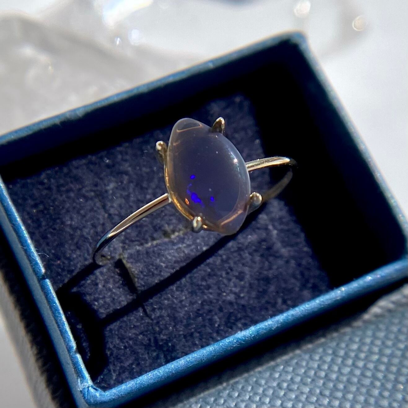 K10 天然ブラックオパールリング (選べるサイズ)オーストラリア産原石から磨いた1点ものジュエリー!