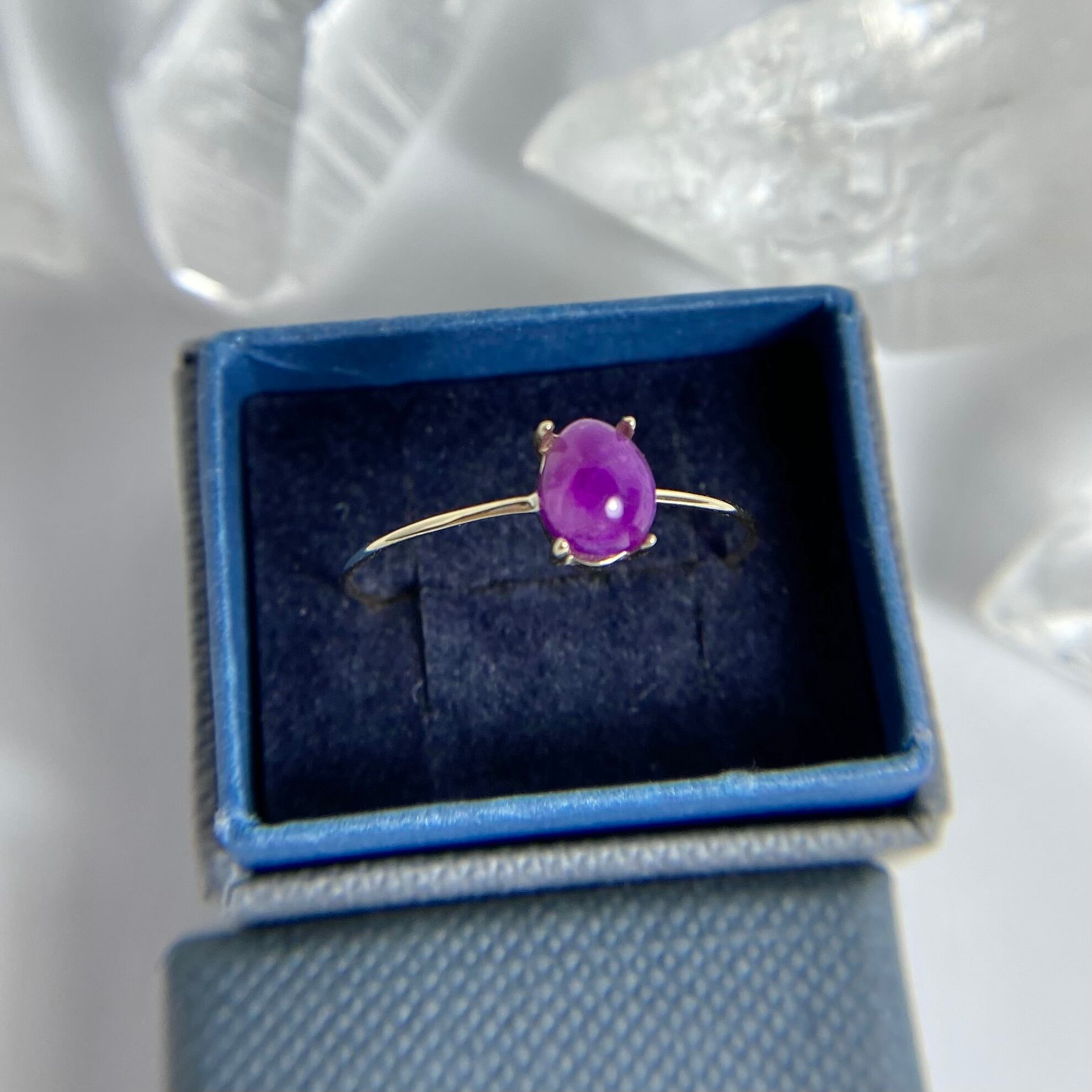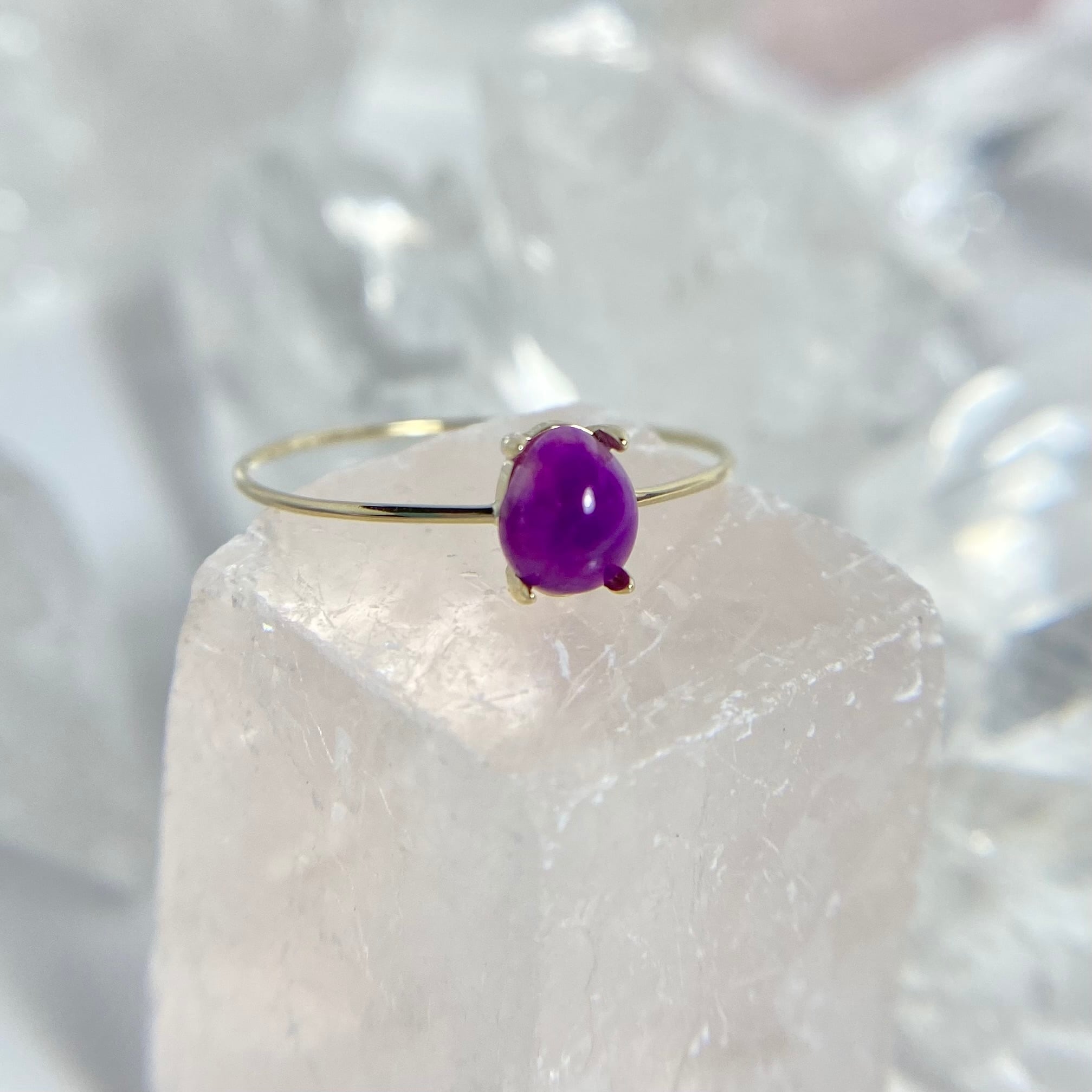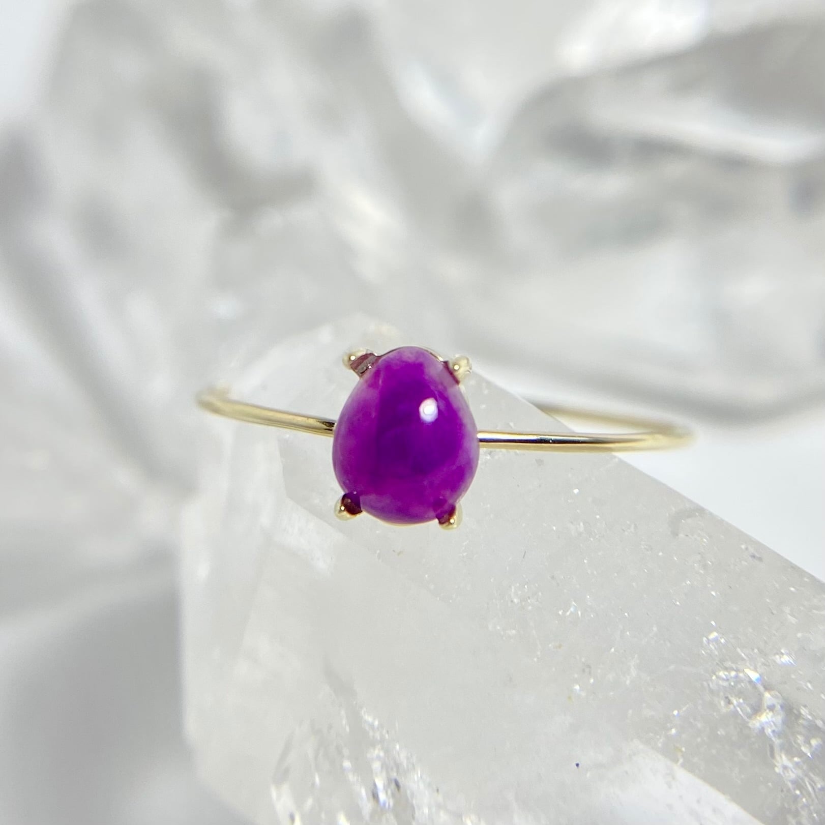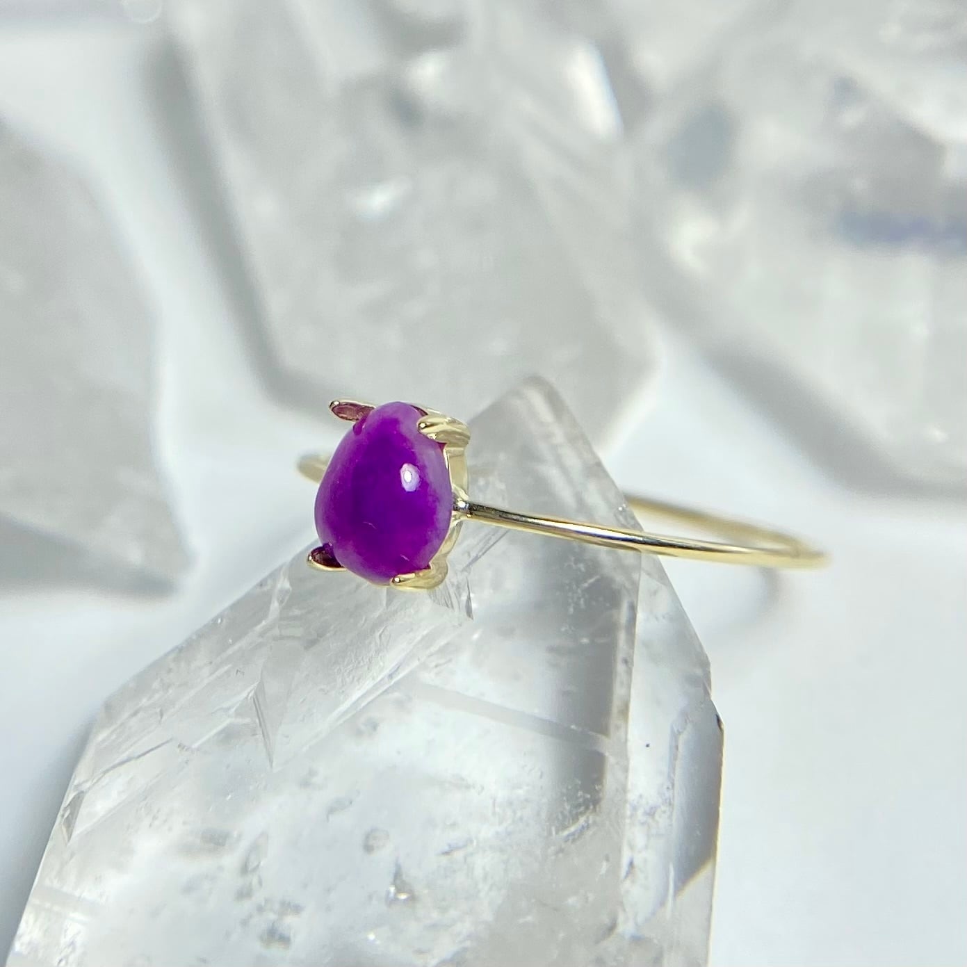 南アフリカ産の天然スギライト原石を磨き、シンプルなK10リングを作りました。