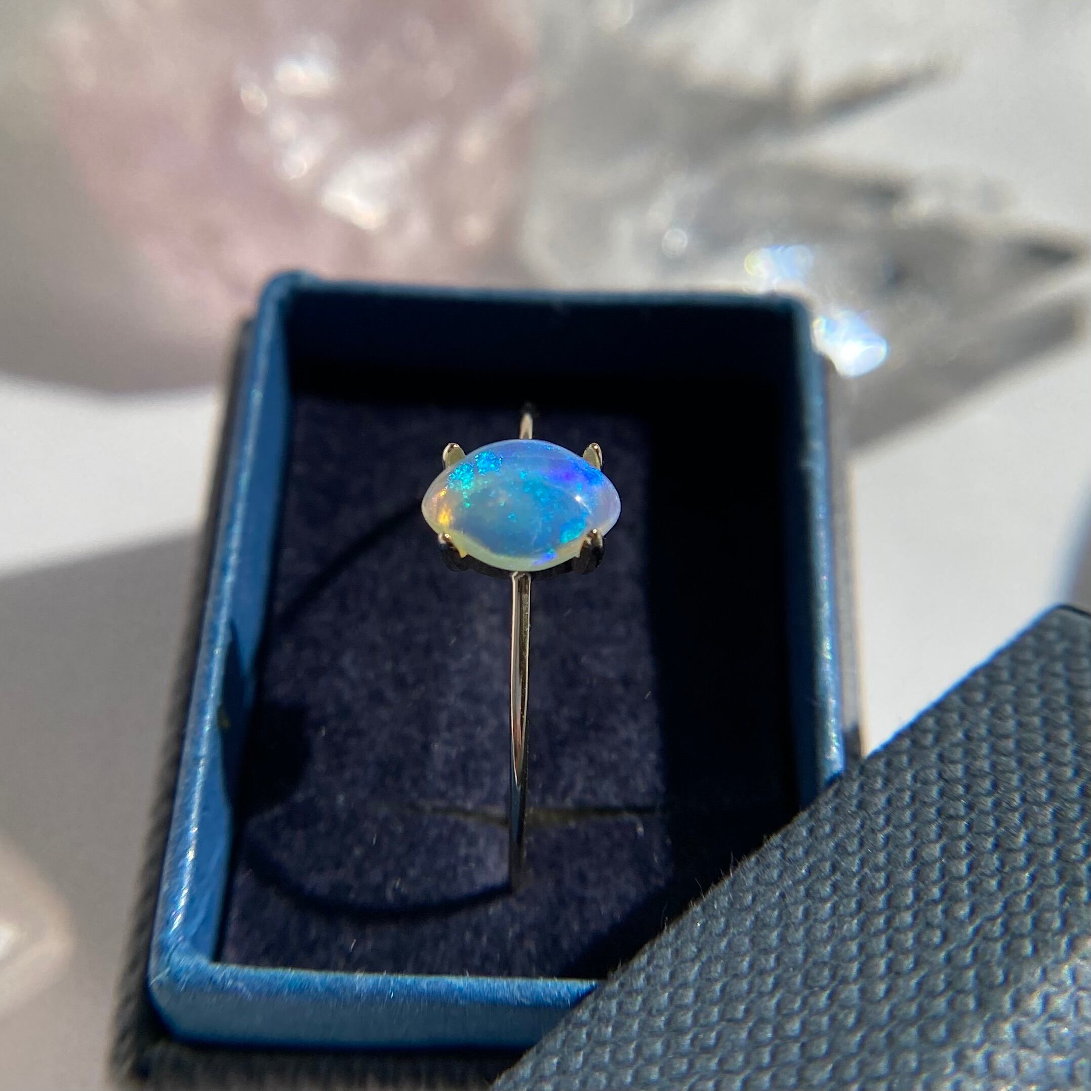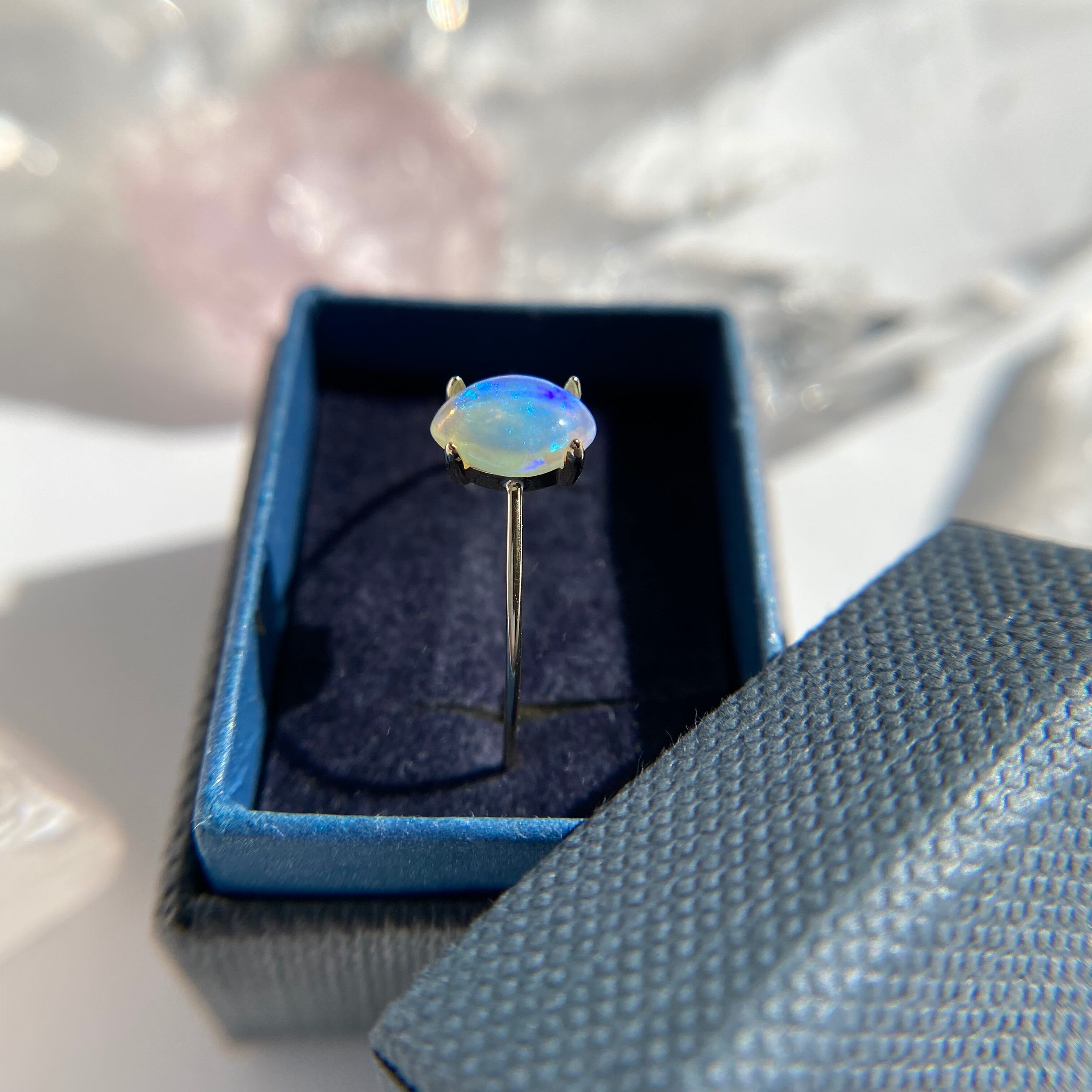 オーストラリア・Lightning Ridge産の天然オパール原石から磨いたシンプルなk10リング。