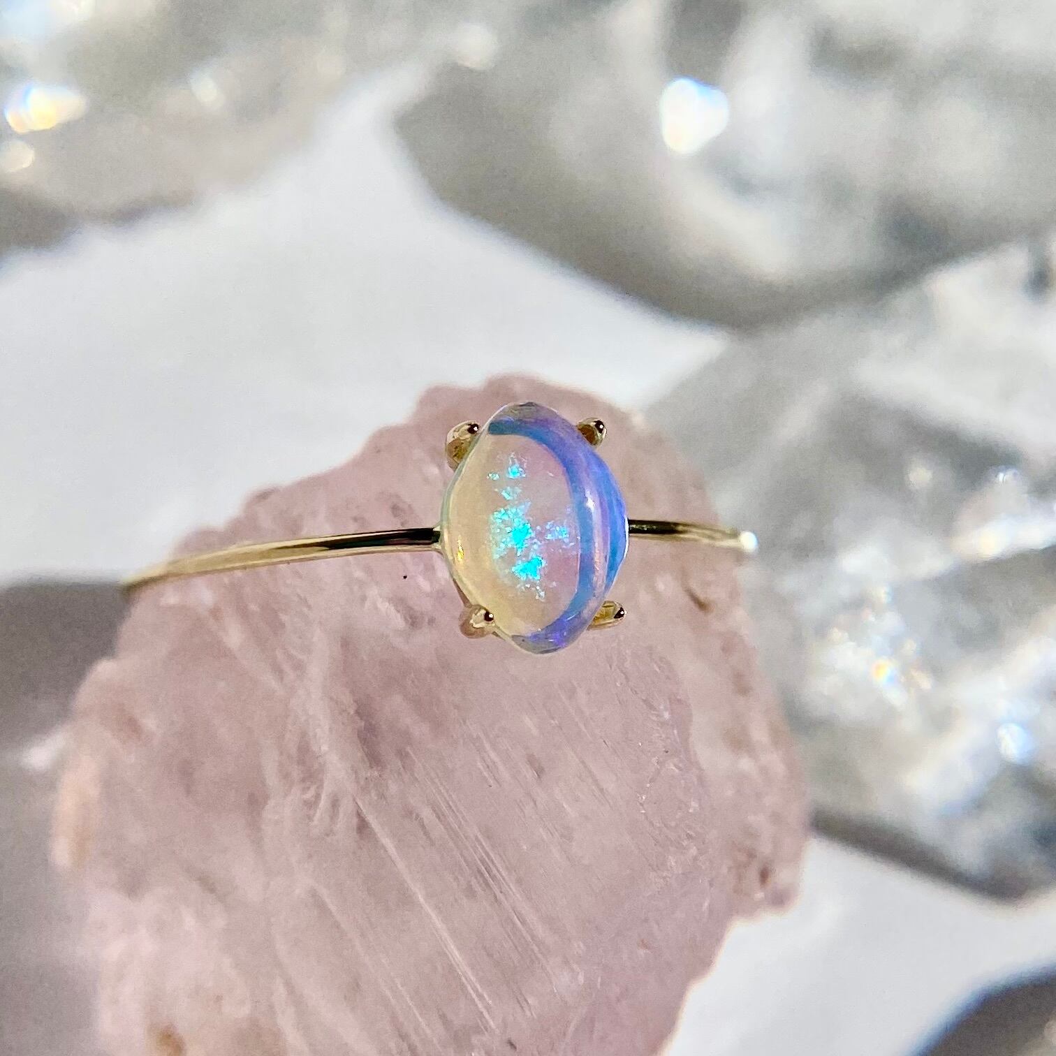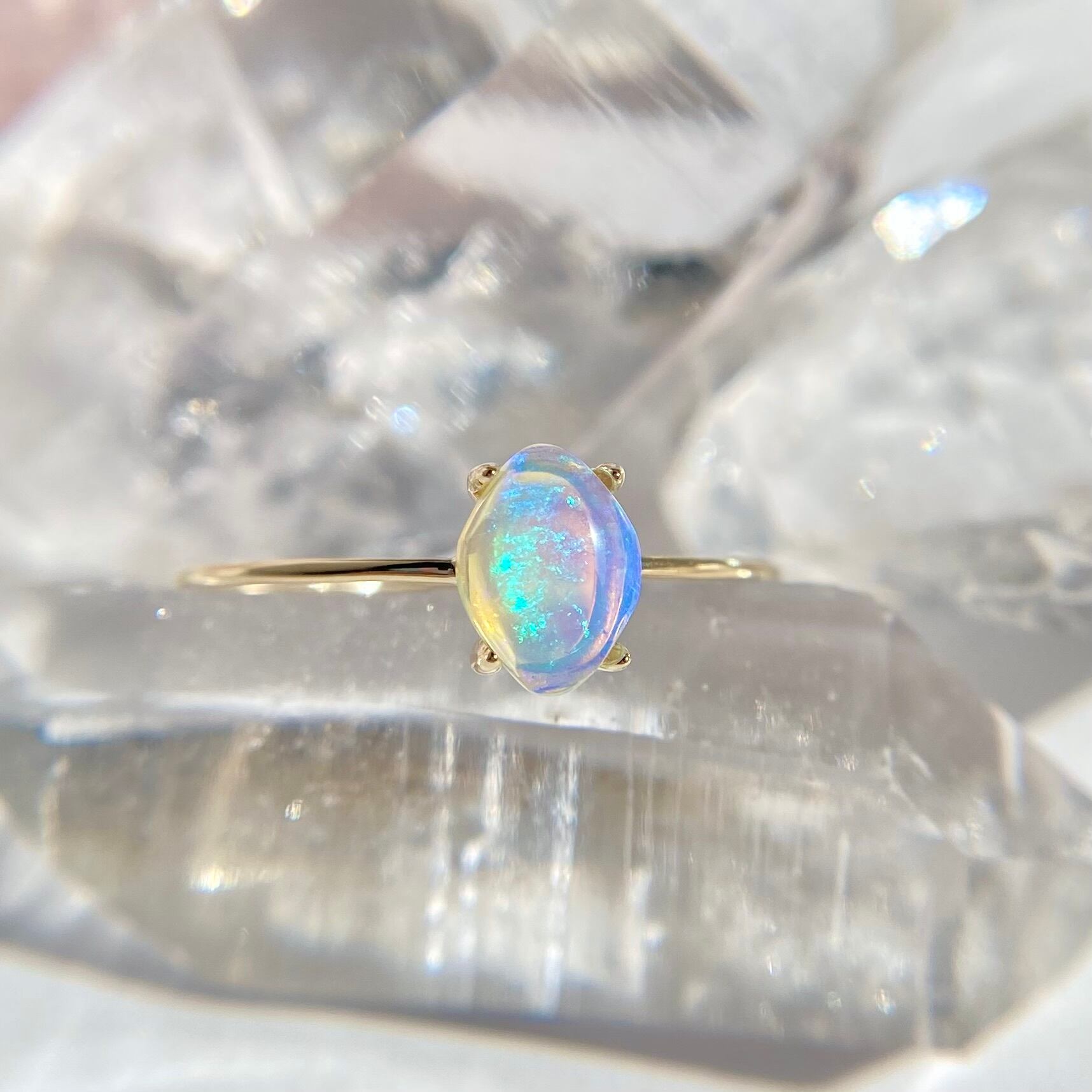 K10 天然オパールリング (選べるサイズ)オーストラリア産原石から磨いた1点もの!