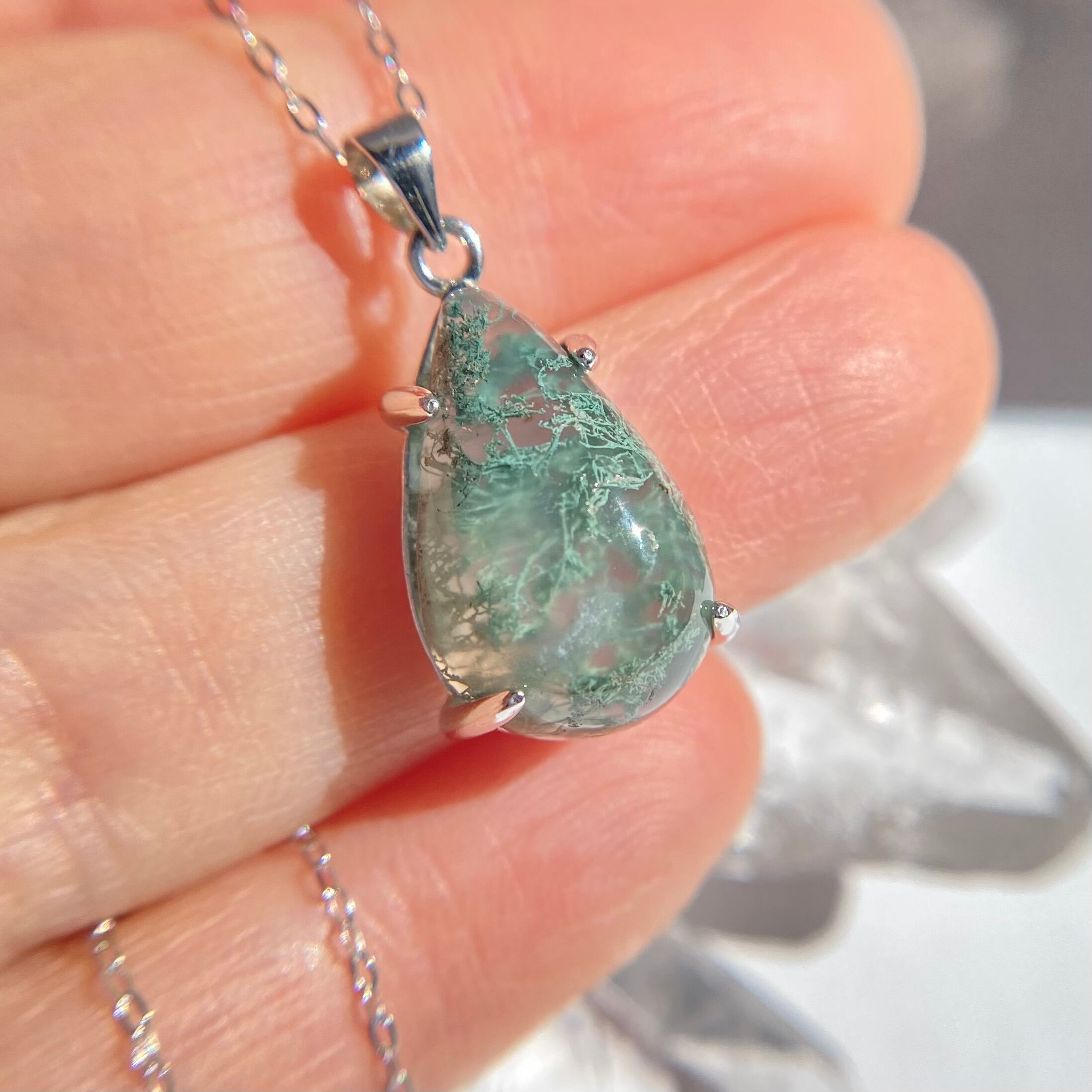 天然モスアゲートシルバーネックレス☆ 原石から磨いた1点もの!