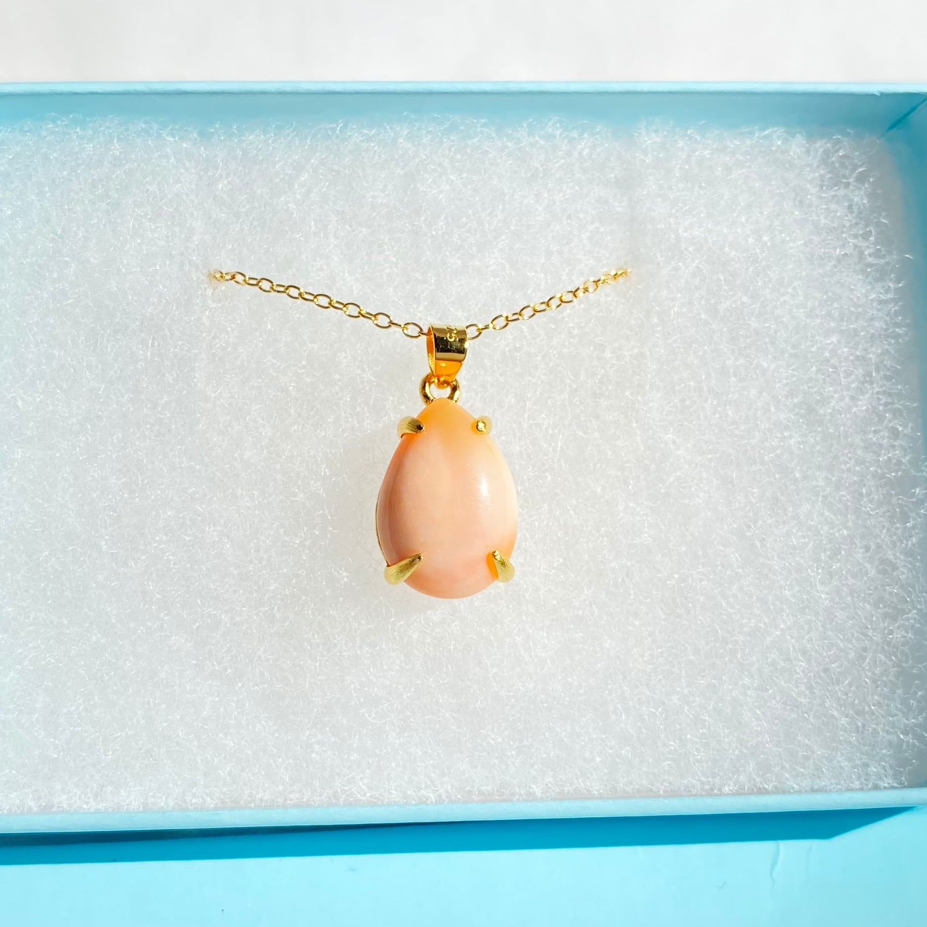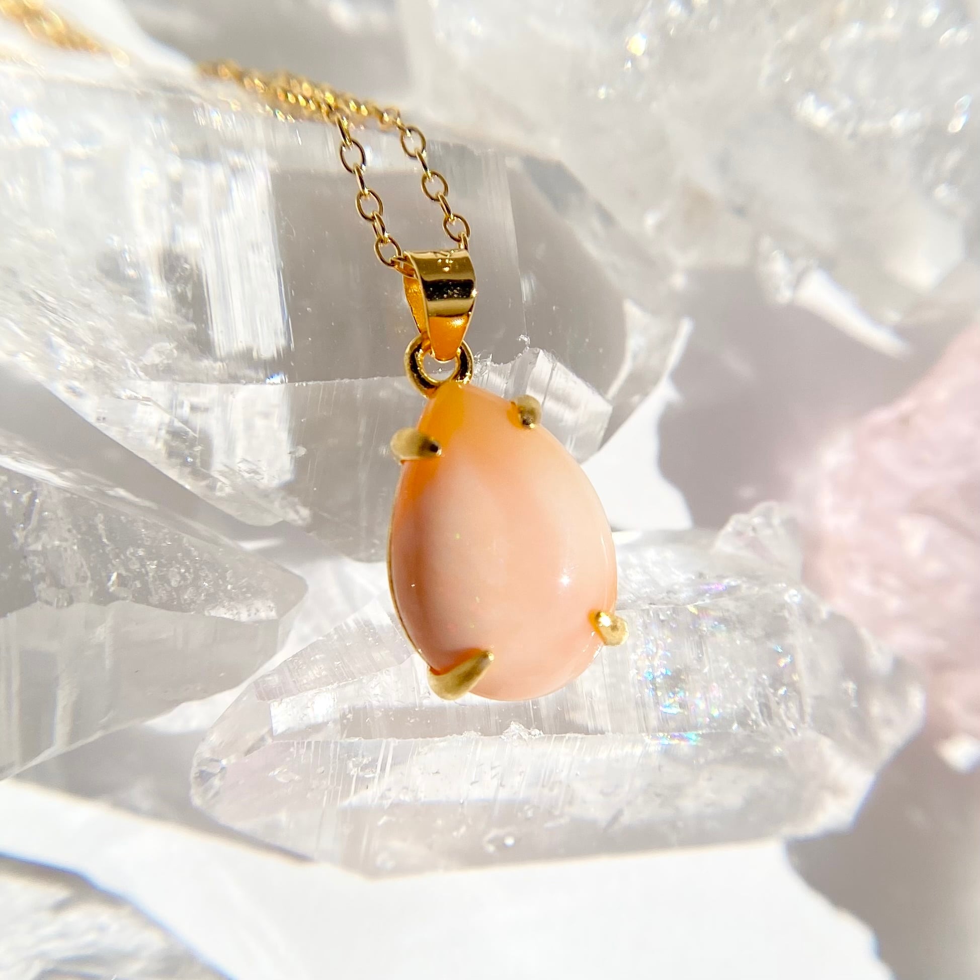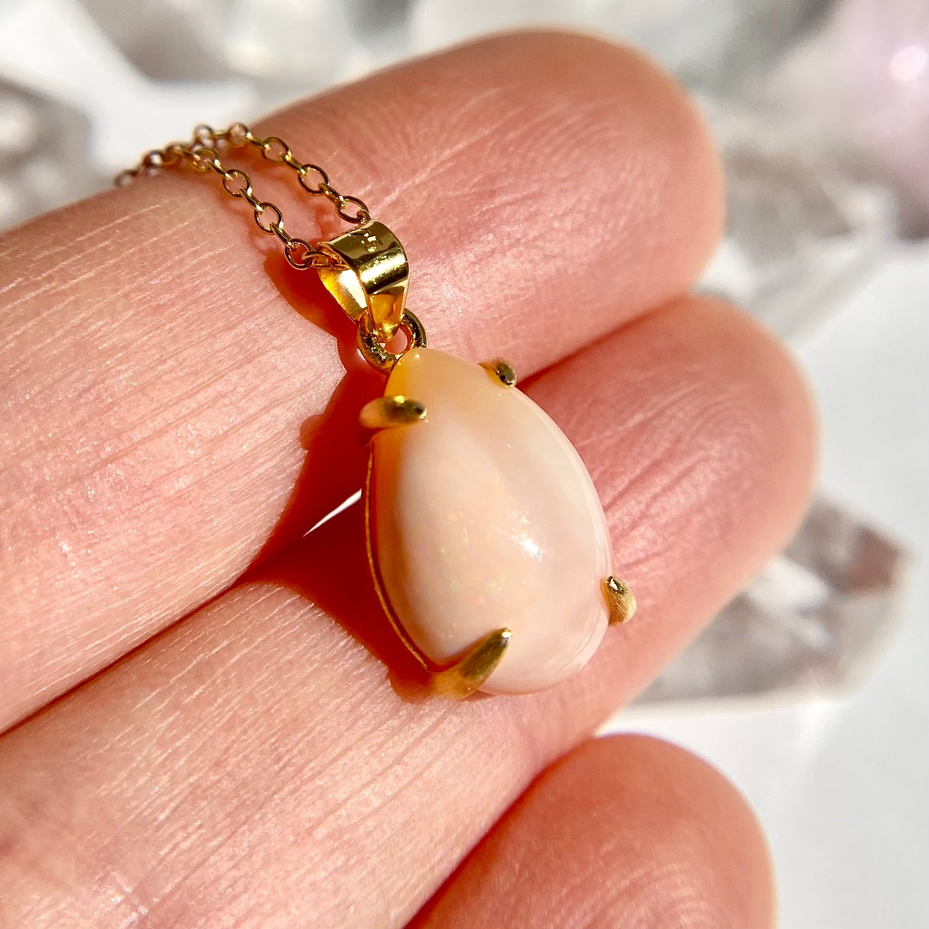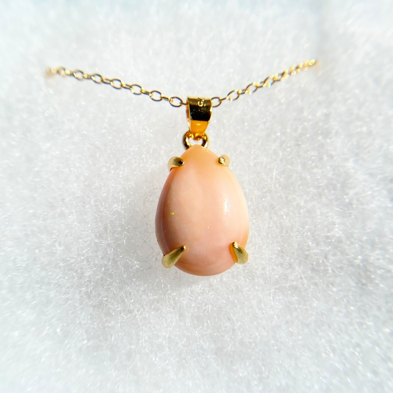 メキシコ産オパール原石から磨いた1点もののネックレスです。