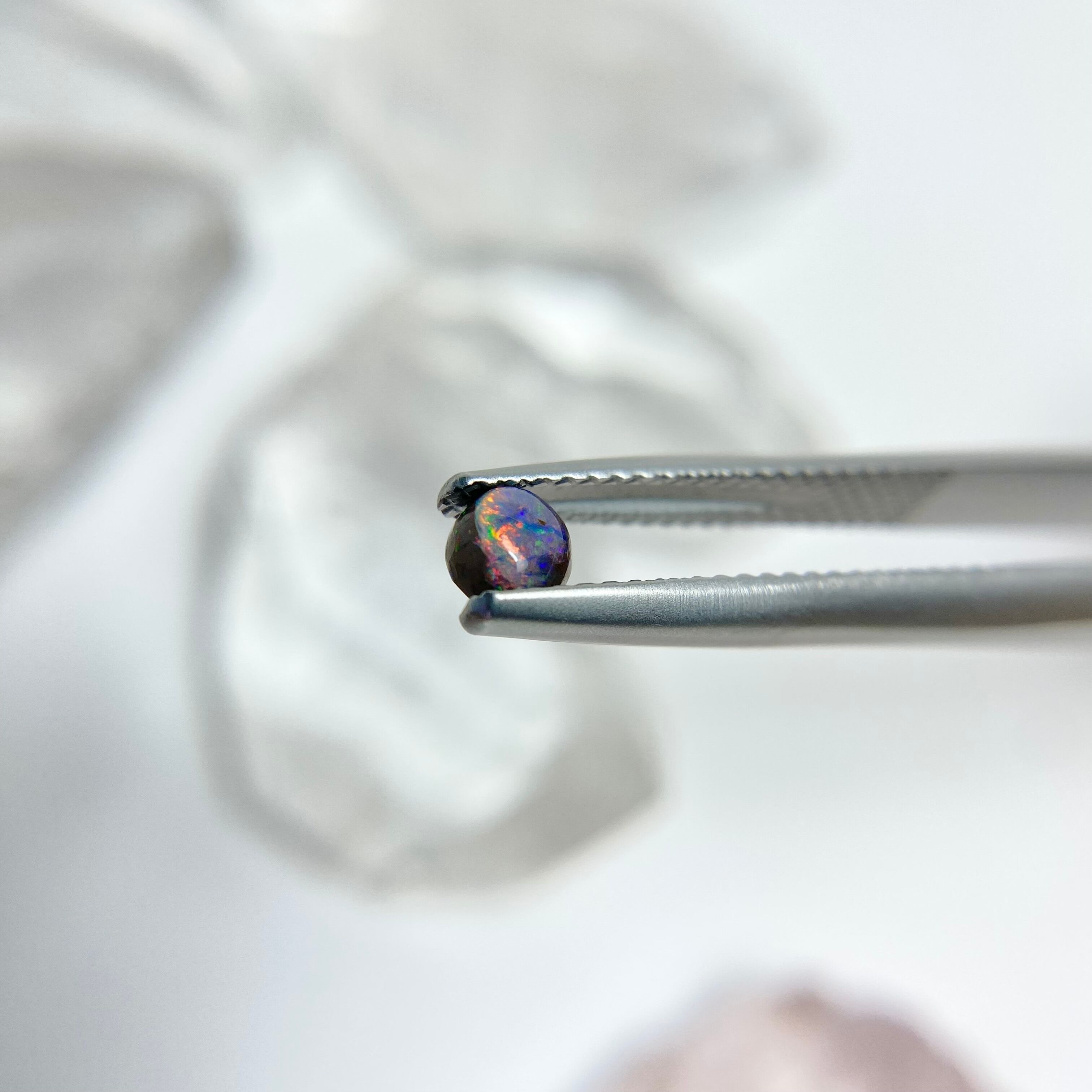 母岩の茶色に透明感のあるオパールが浮かび上がり、赤、緑、青、黄色、オレンジ色の遊色が美しく煌めき素敵なボルダーオパールです。