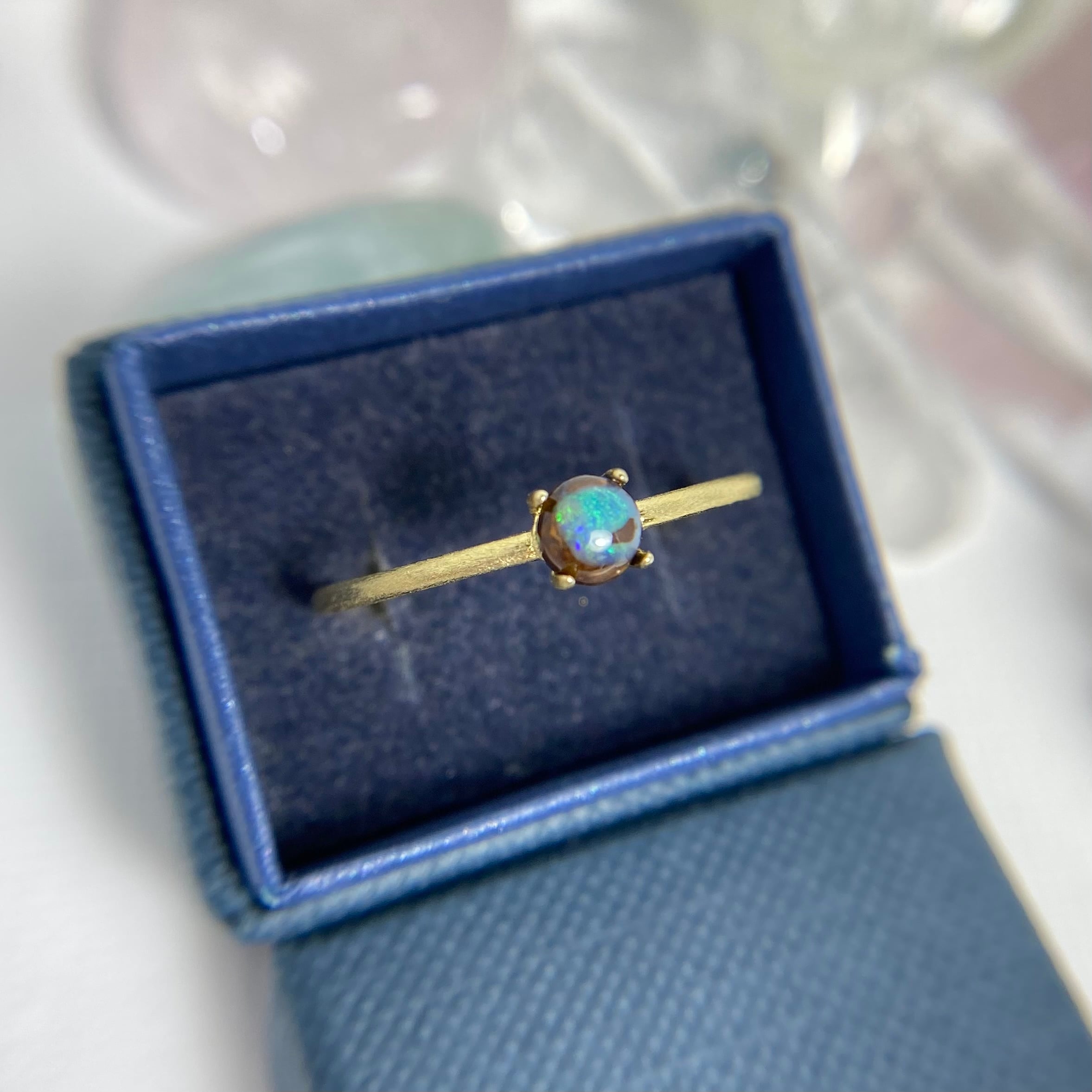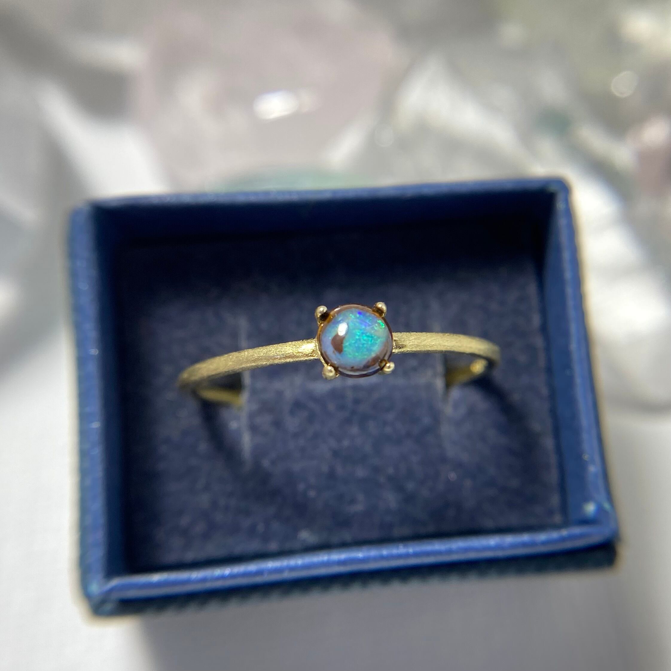 天然ボルダーオパールリング (選べるサイズ)オーストラリア産原石から磨いた1点ものジュエリー!