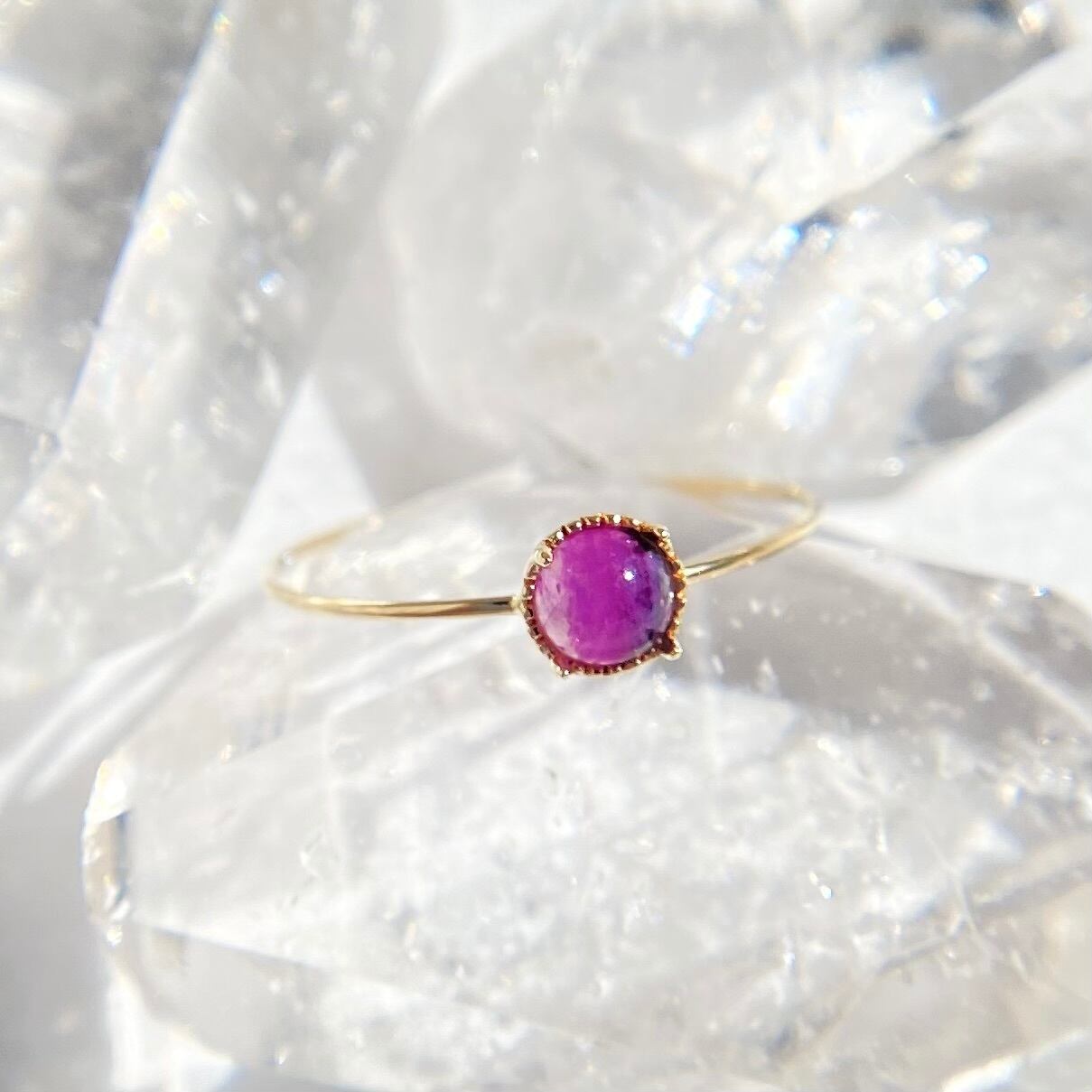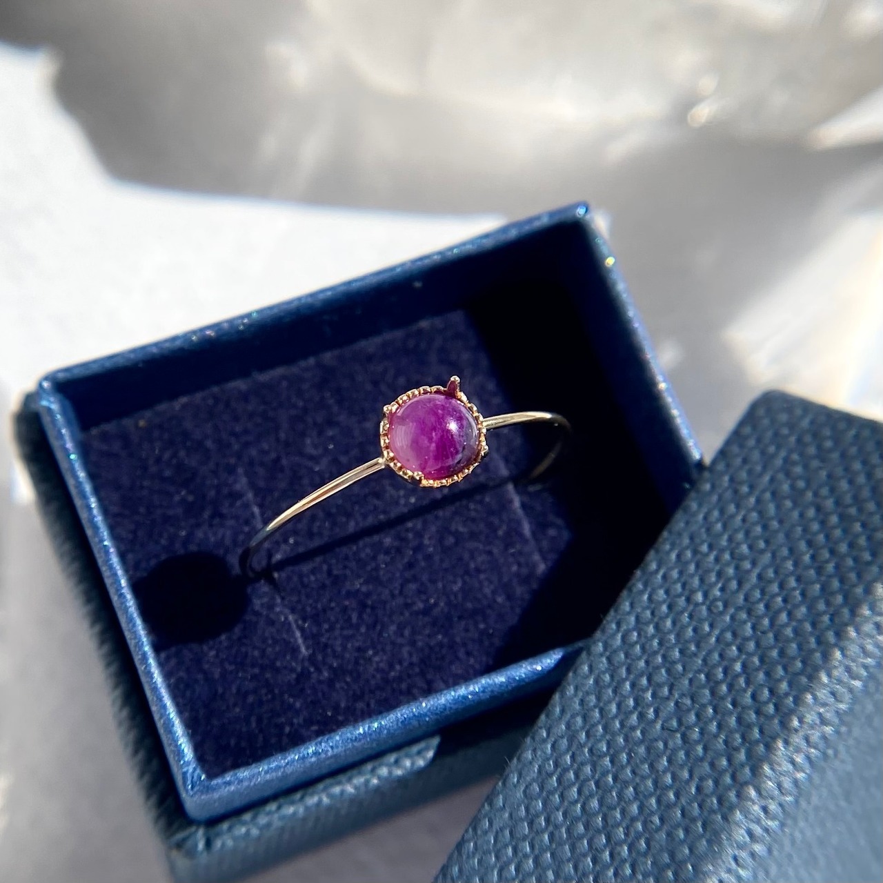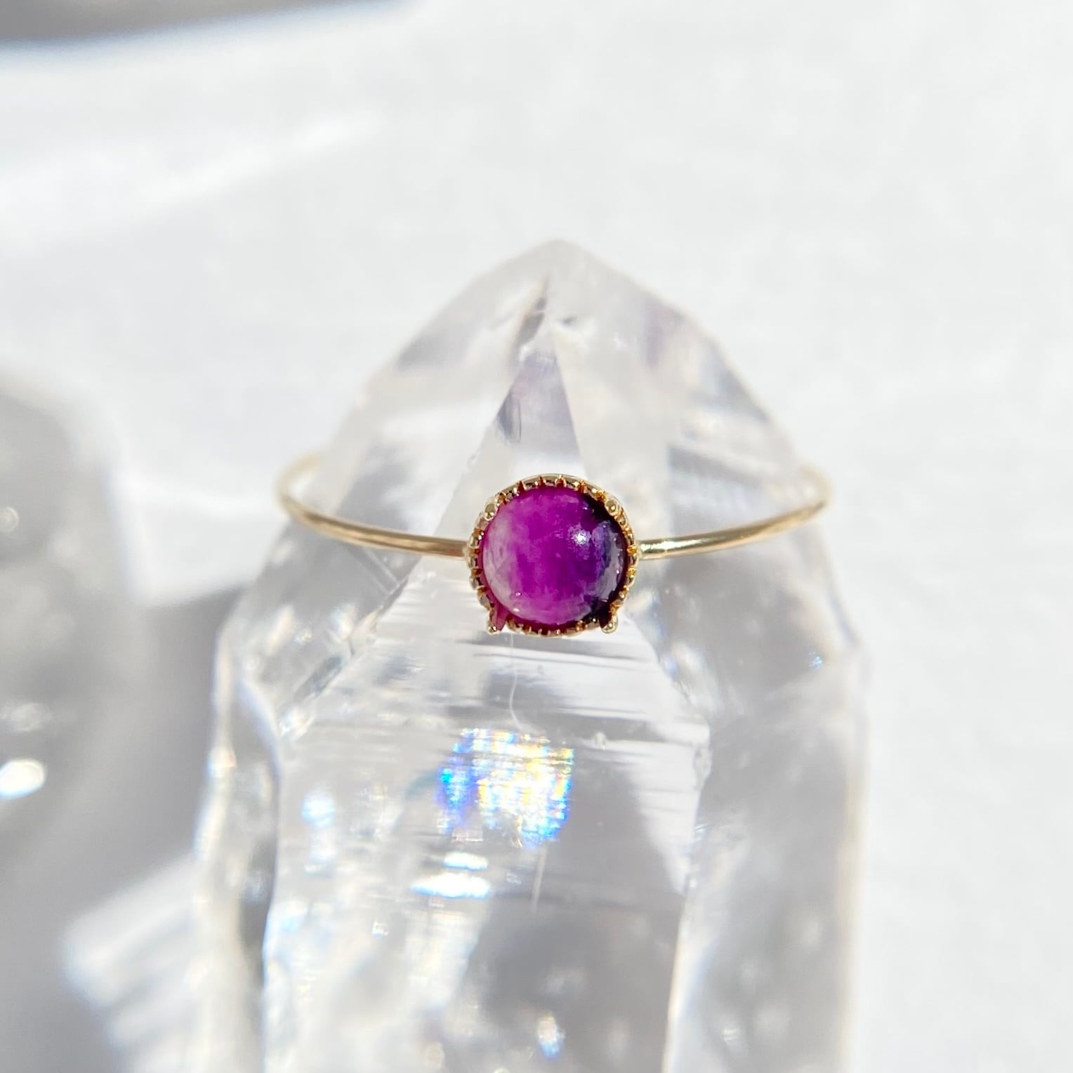 南アフリカ産の天然スギライト原石を磨き、シンプルなK10リングを作りました。