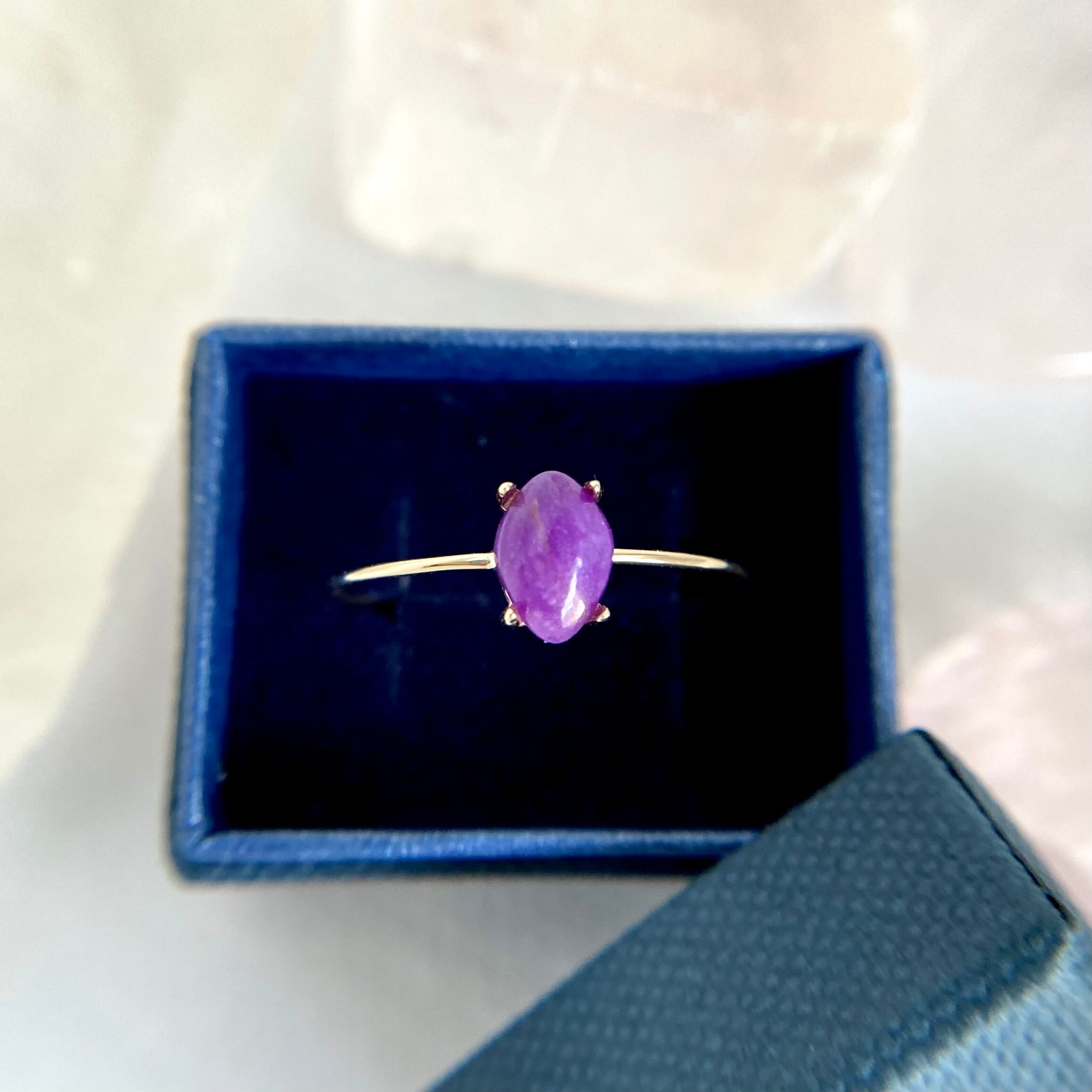 南アフリカ産の天然スギライト原石から磨き上げられた、美しいパープルカラーとホワイト、グレーの模様が神秘的なスギライトK10リングです。