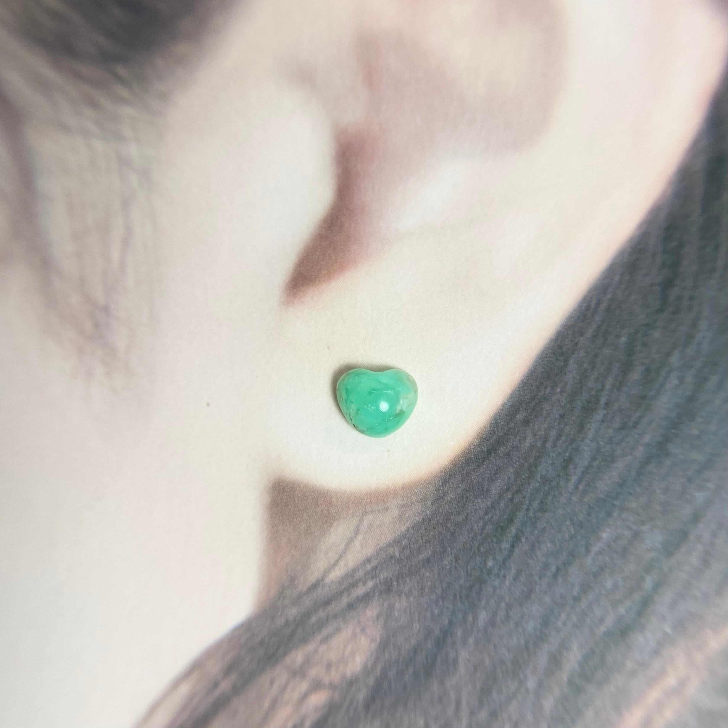 ぽってりとした可愛いハート型の透明な部分もある綺麗なミルキーグリーンカラーが特徴のクリソプレーズピアス。