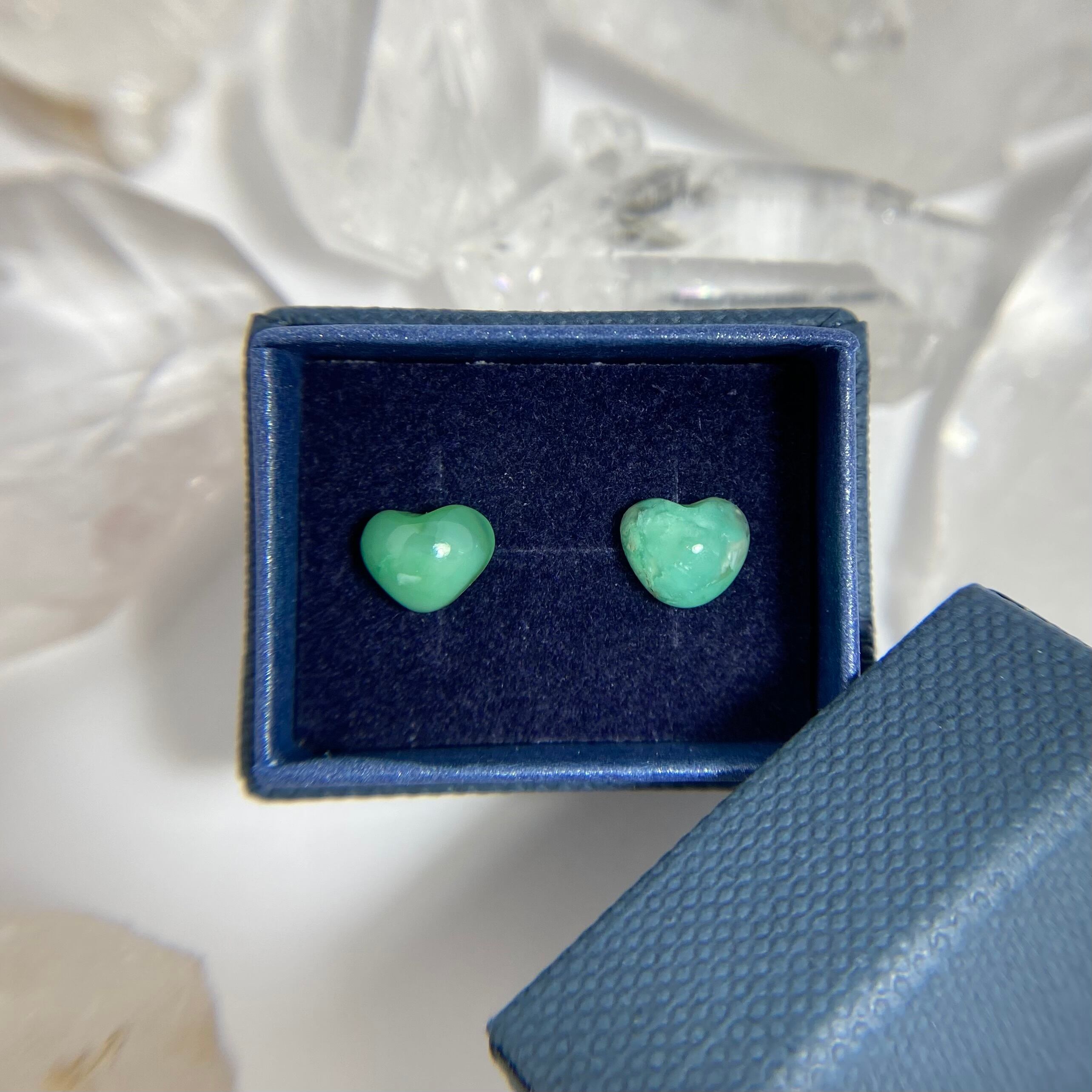 天然クリソプレーズハート両耳ピアス☆オーストラリア産原石から磨いた1点もの!