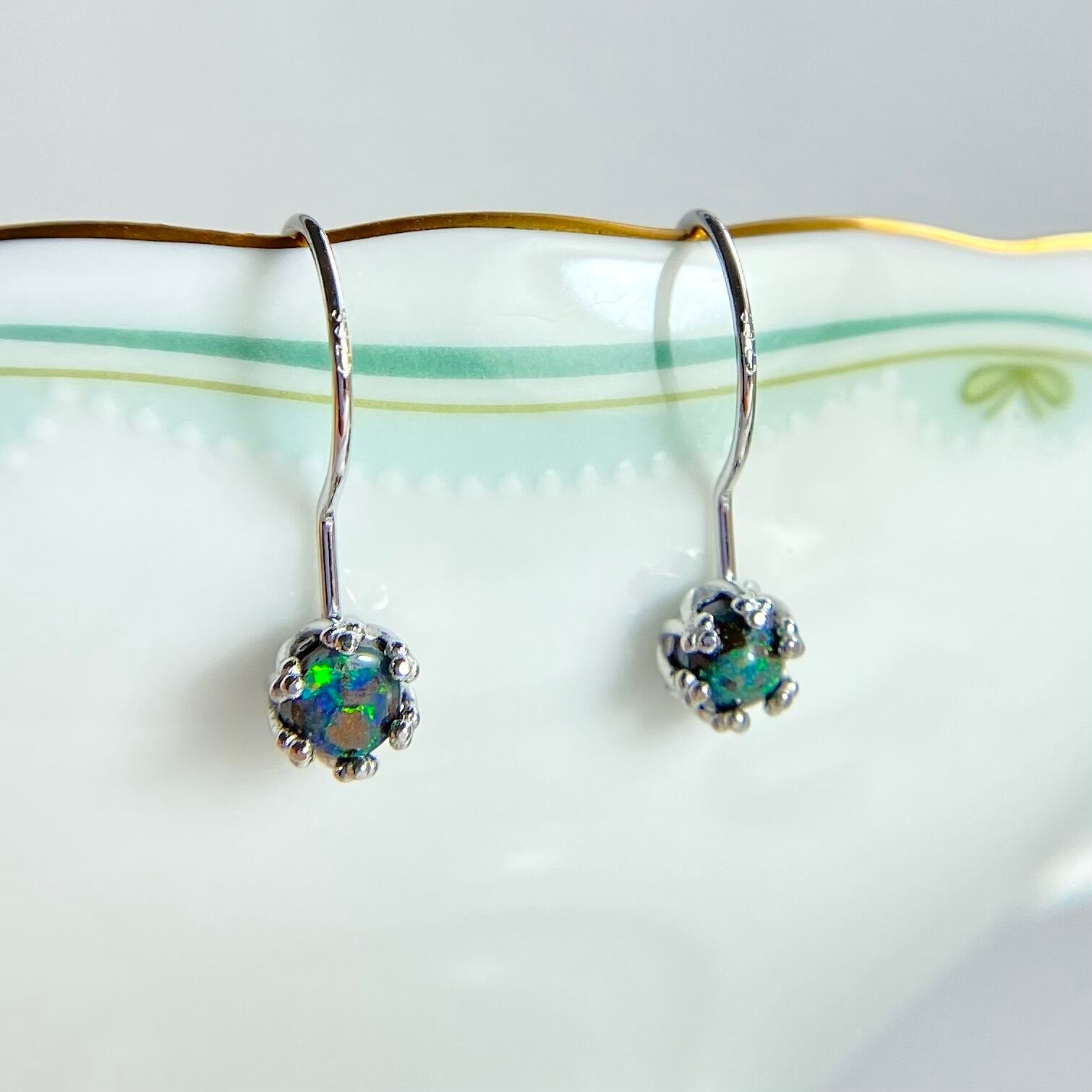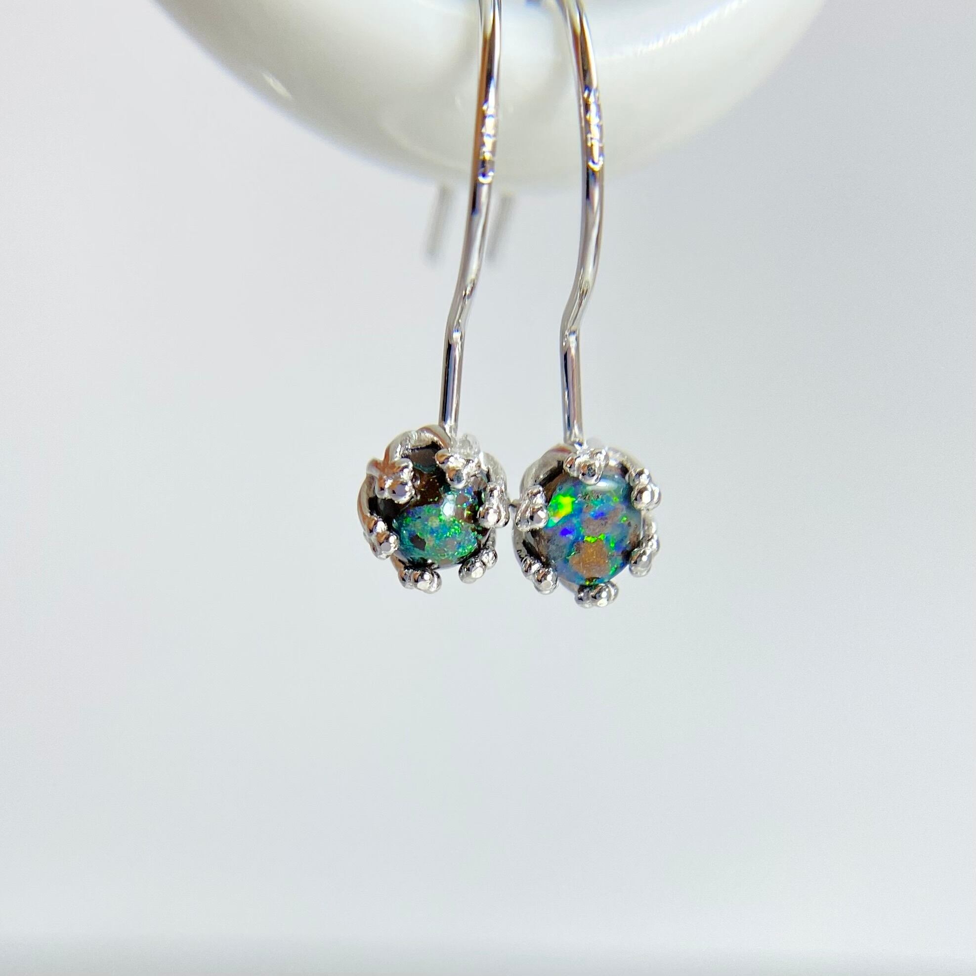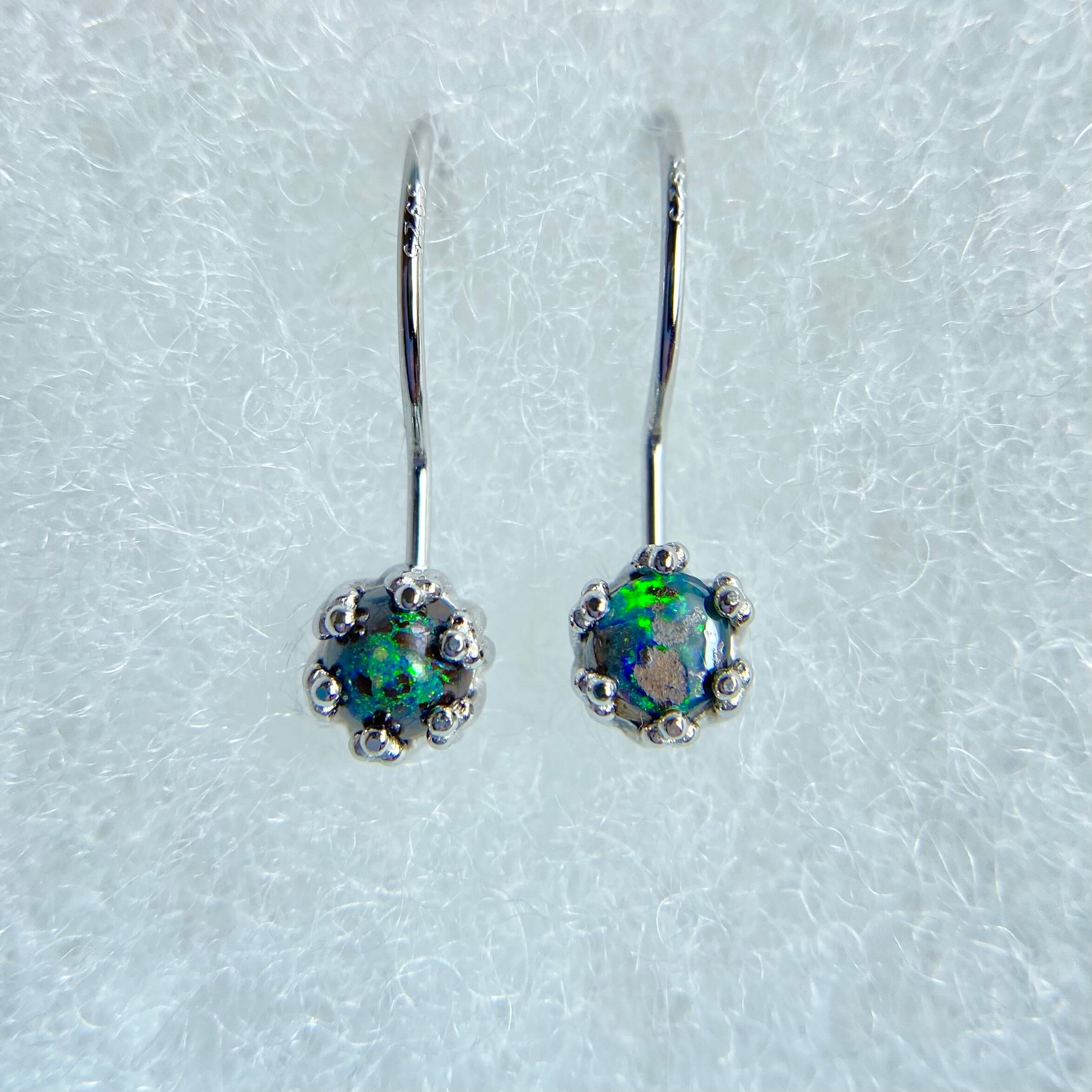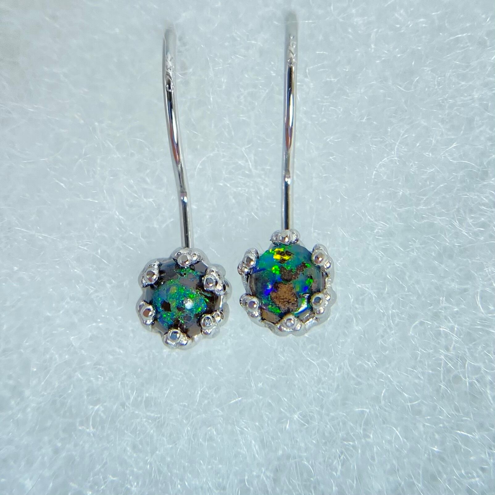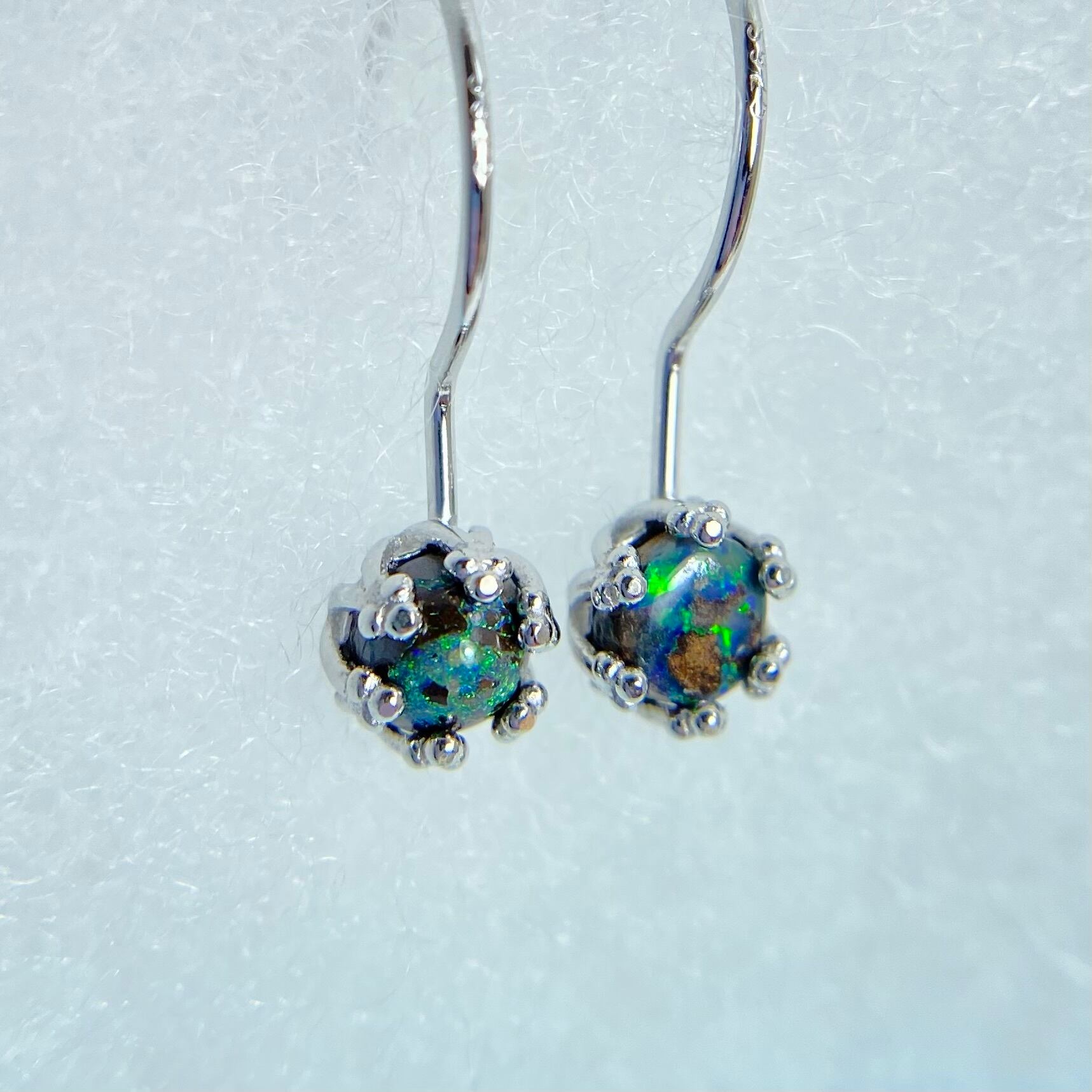 オーストラリア・Yowah産の天然ボルダーオパール原石から磨き上げた可愛いシルバーピアスです。