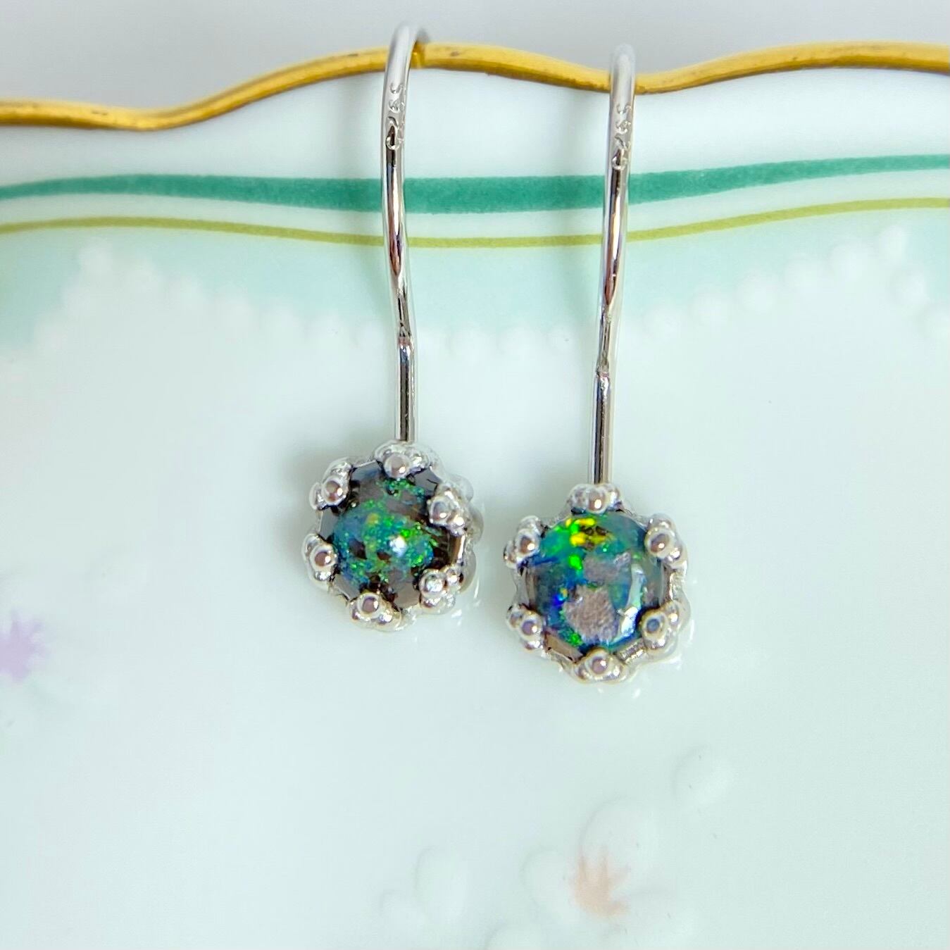 1点もののため、それぞれのピアスが異なる遊色や模様を持っています。
