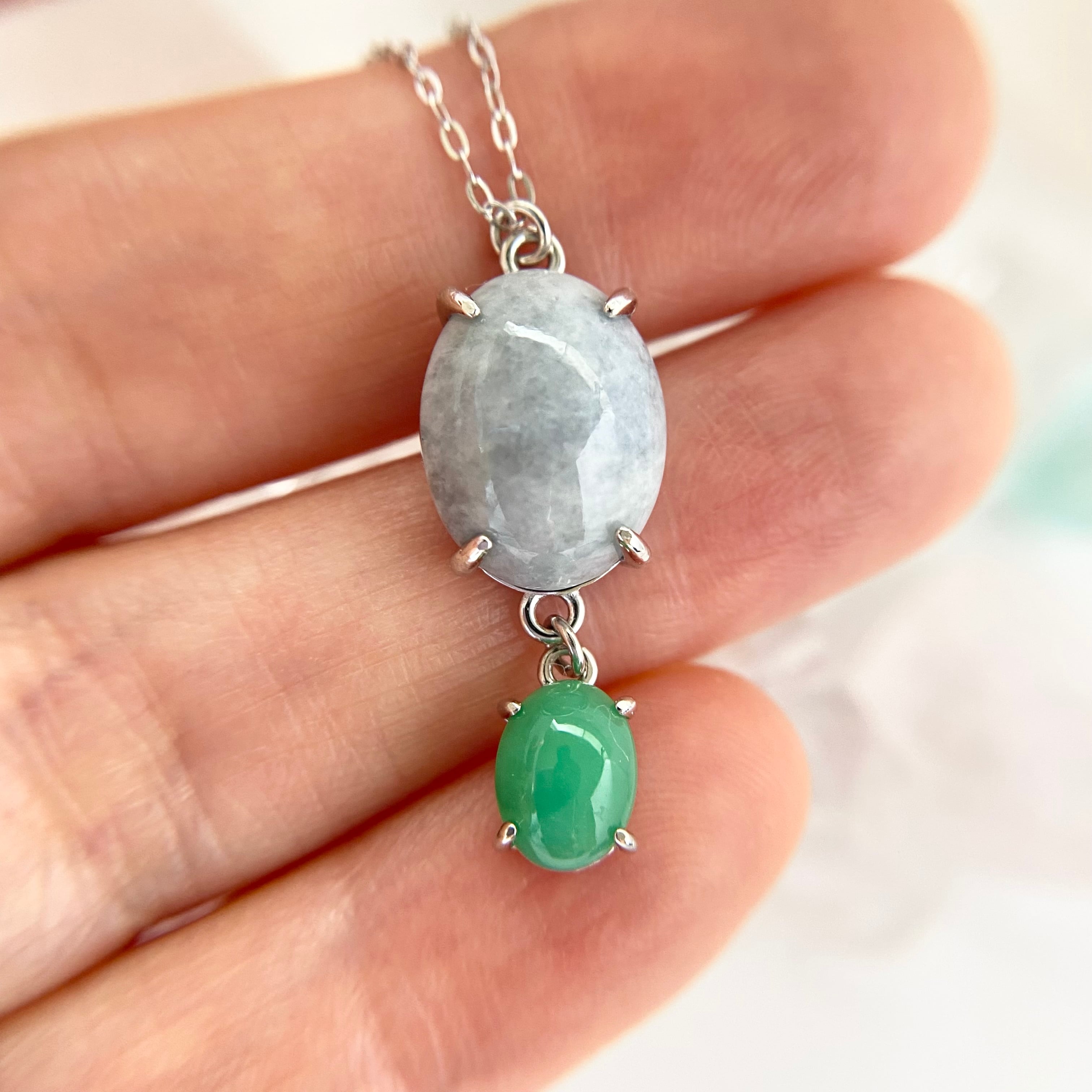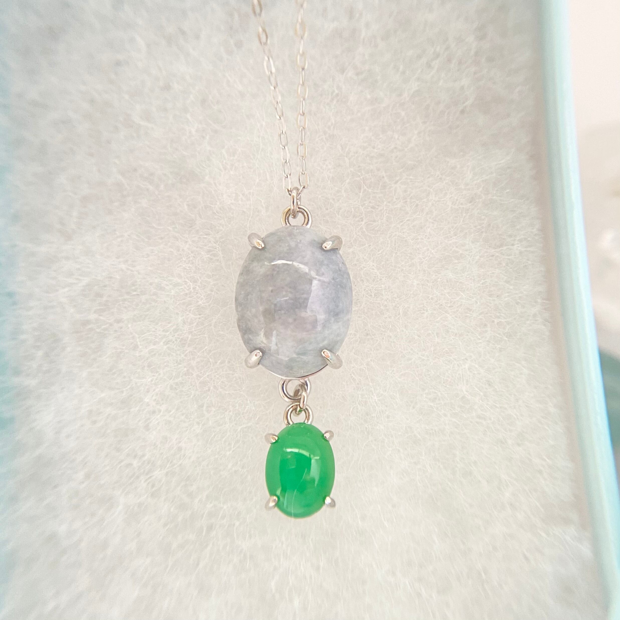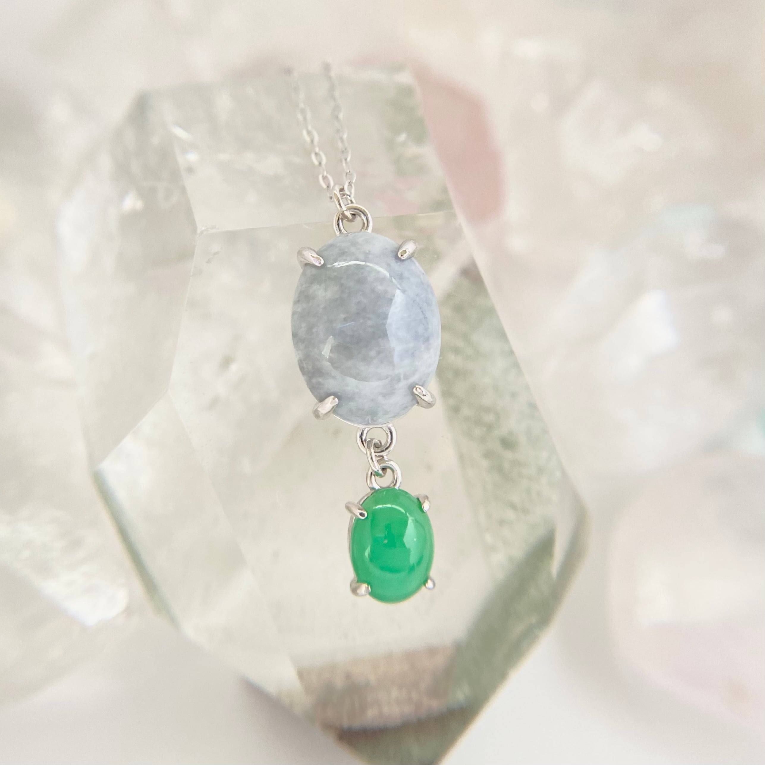 大自然の力を感じるラベンダー翡翠とクリソプレーズのシルバーネックレス。