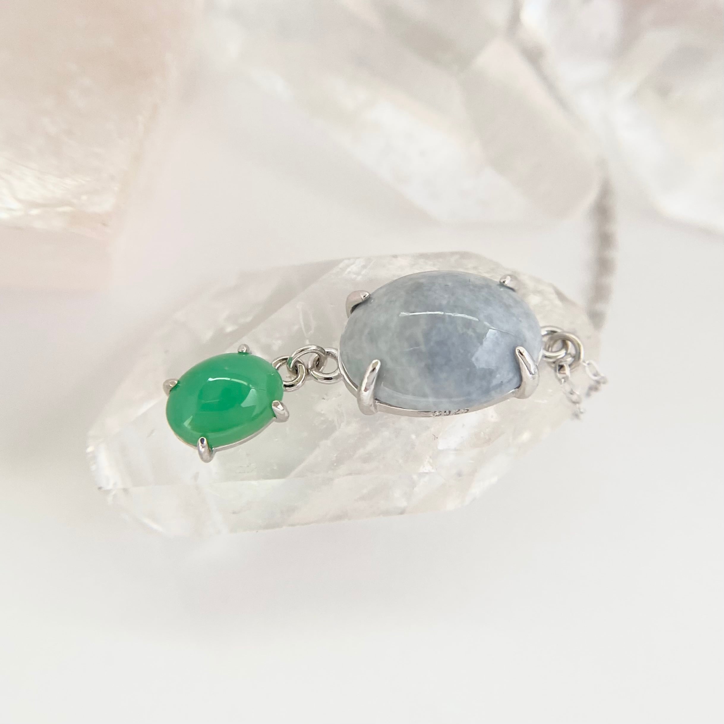 新潟県青海産の翡翠原石とオーストラリア産のクリソプレーズ原石を丁寧に磨き上げました。
