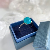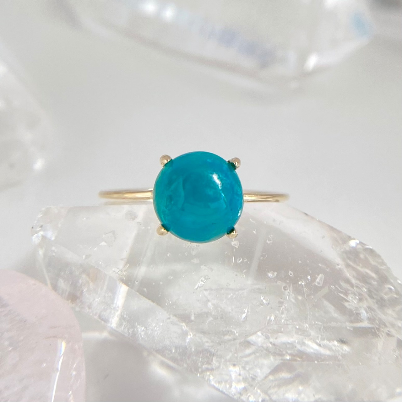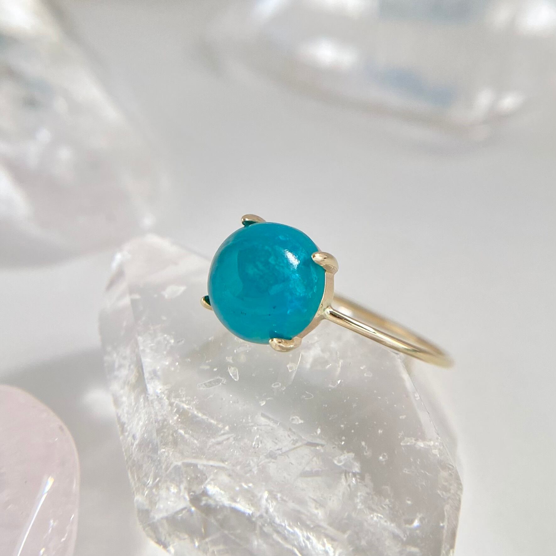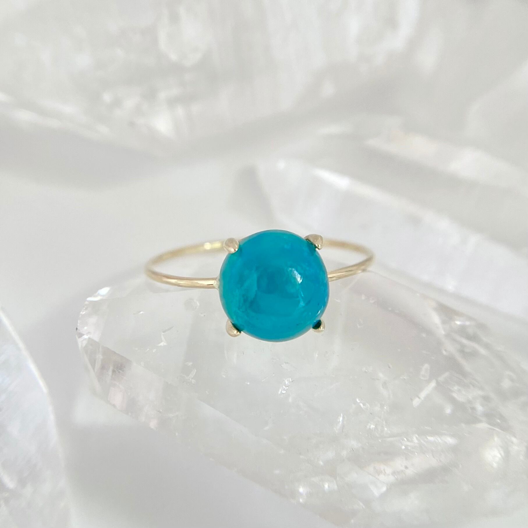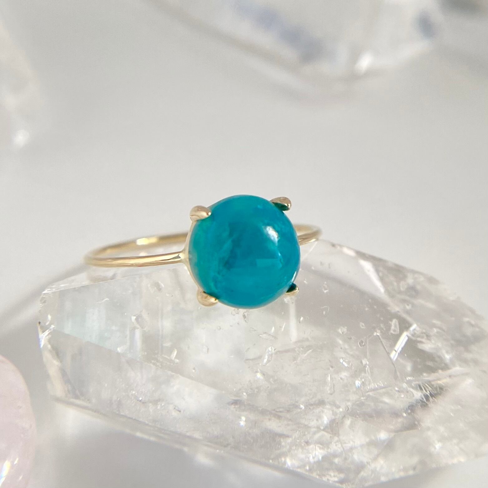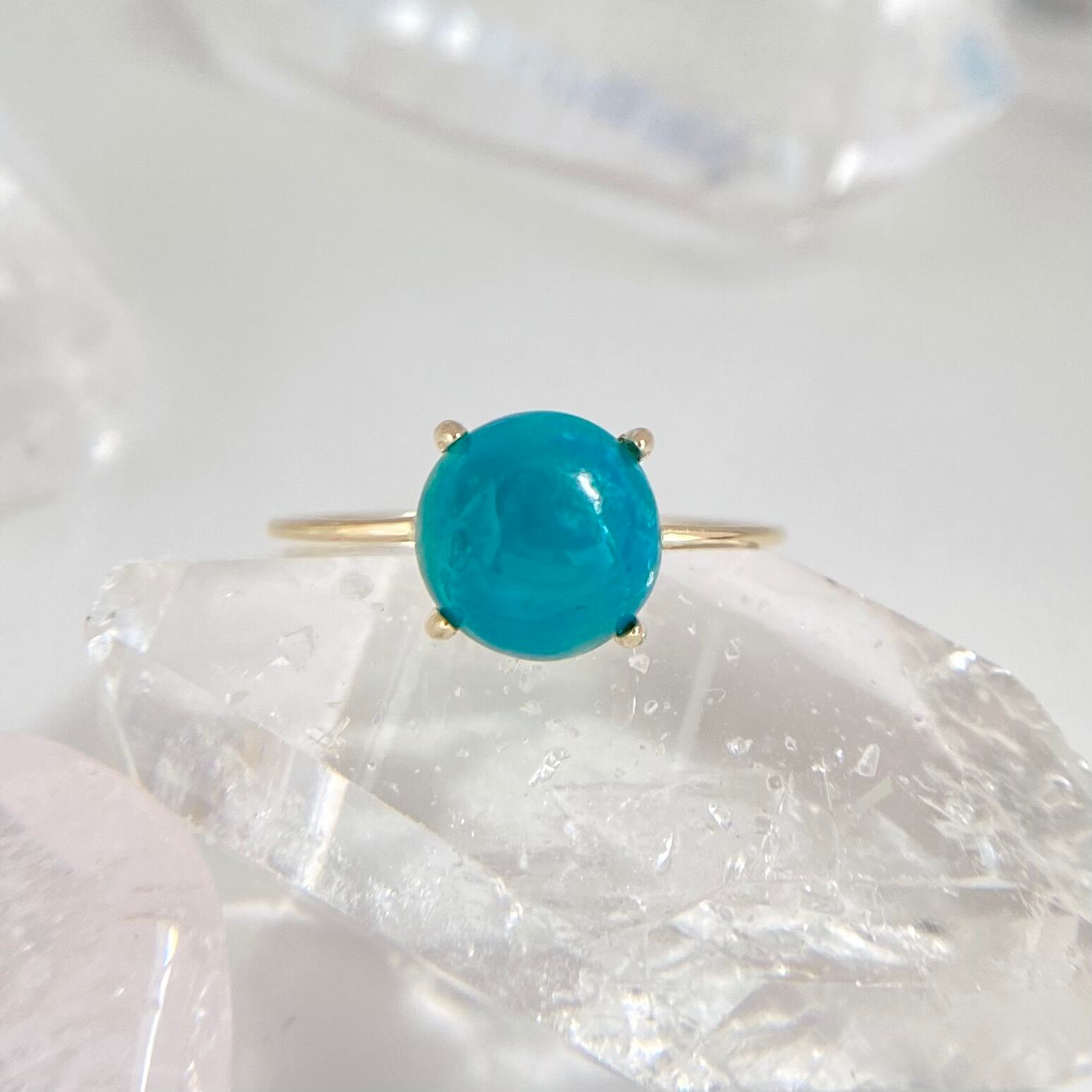 天然ジェムシリカ(クリソコーラクォーツ)K10リングは、アメリカ・アリゾナ州産の原石から丁寧に磨かれた1点ものジュエリーです。