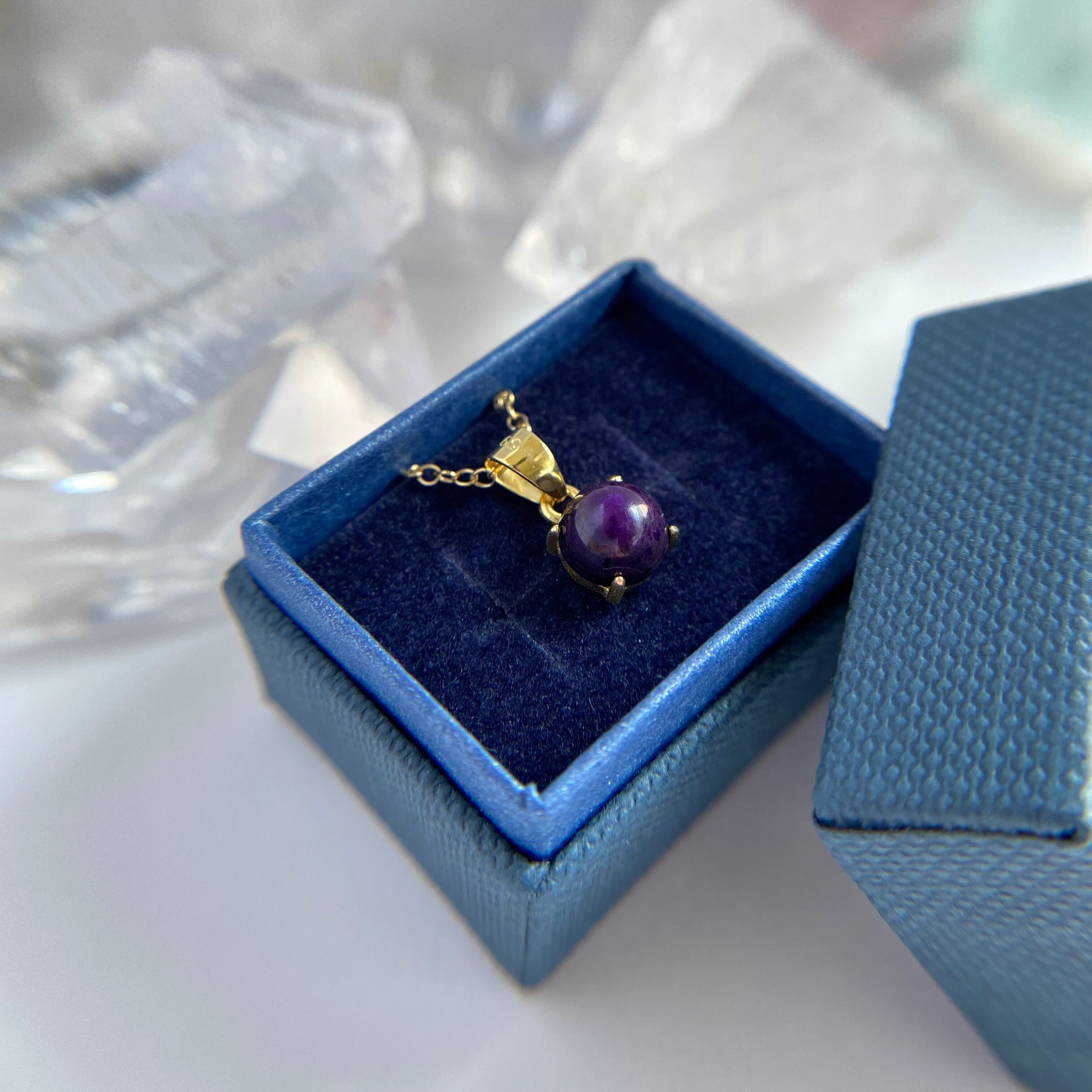 アメリカ・アリゾナ州産スギライト原石を研磨して、シンプルなネックレスを作りました。