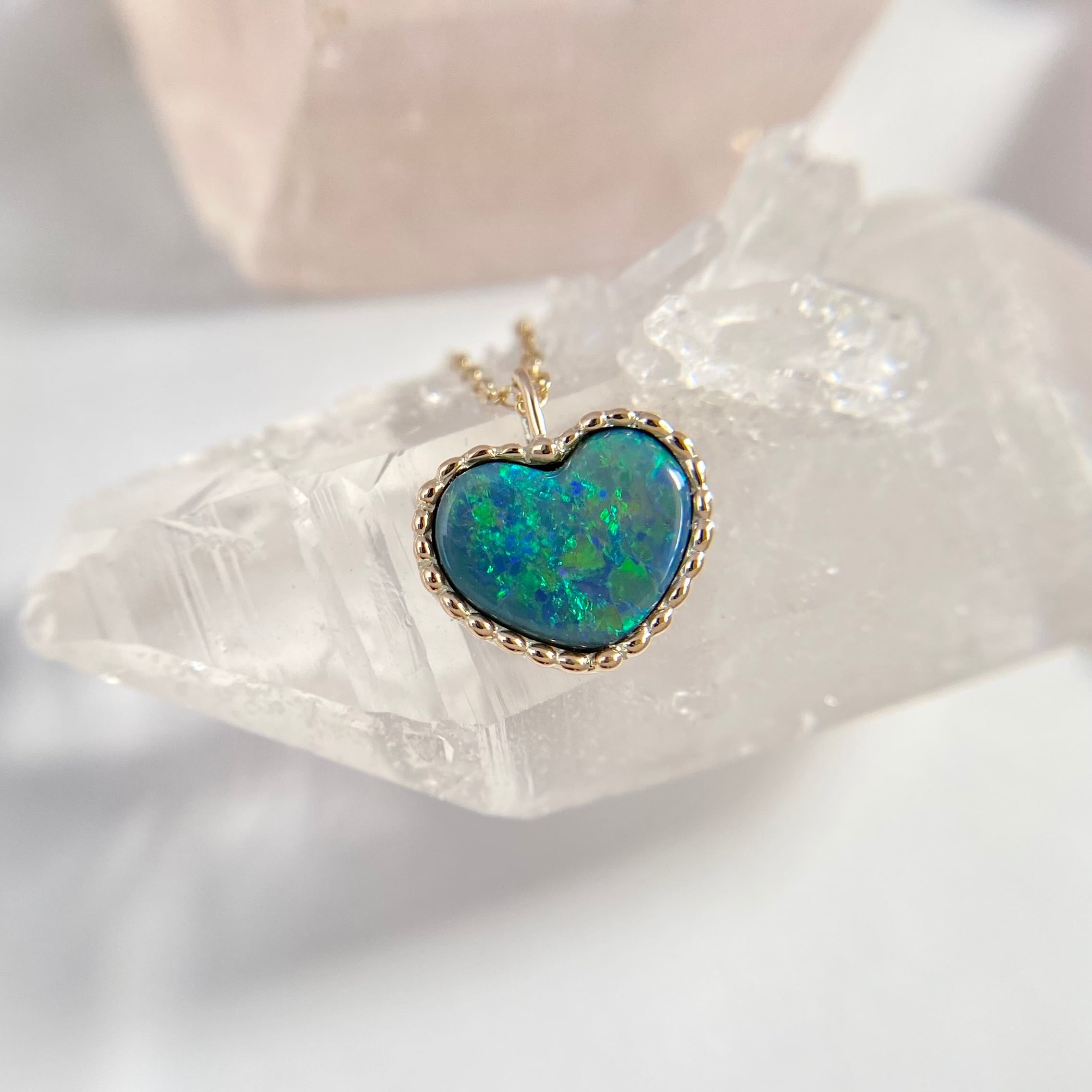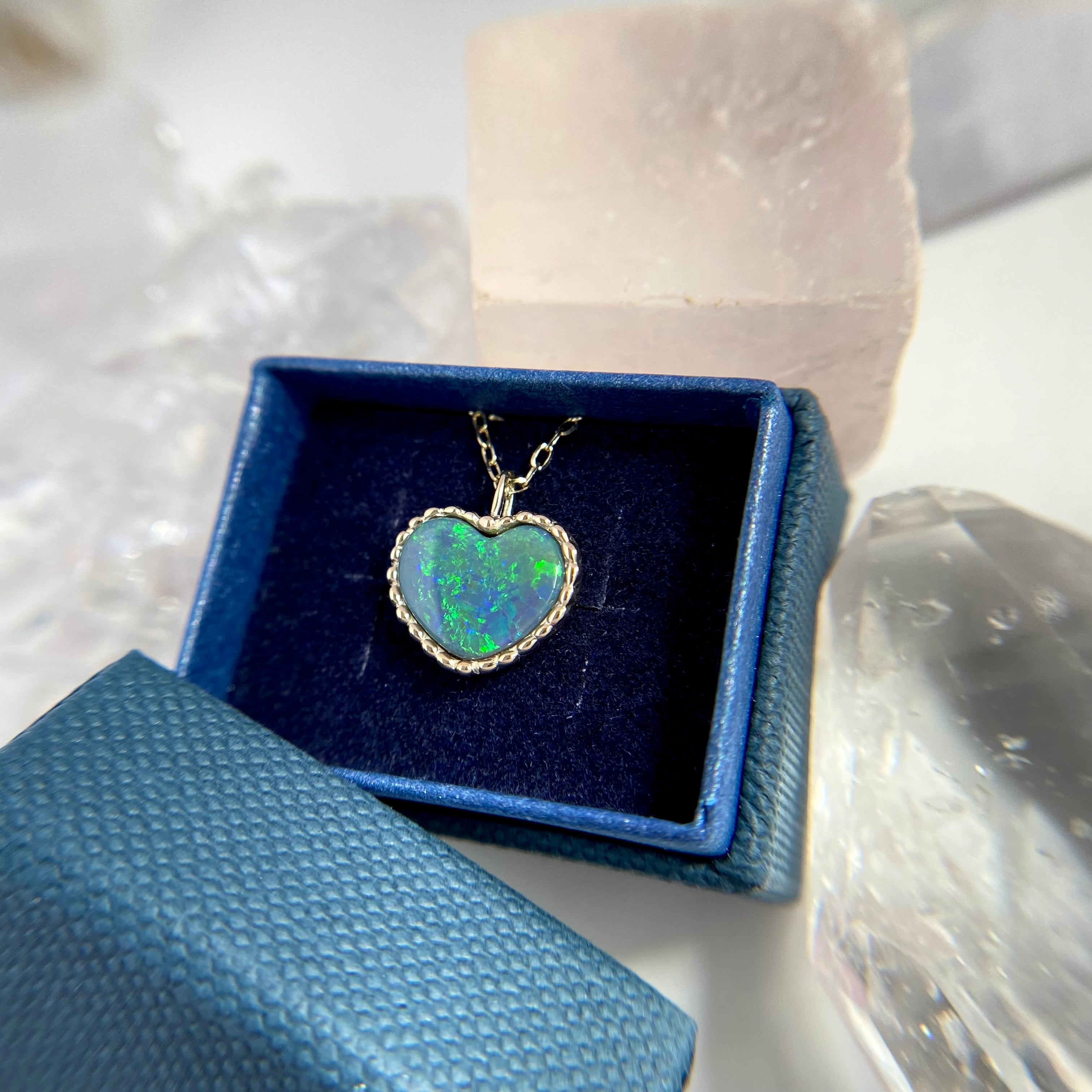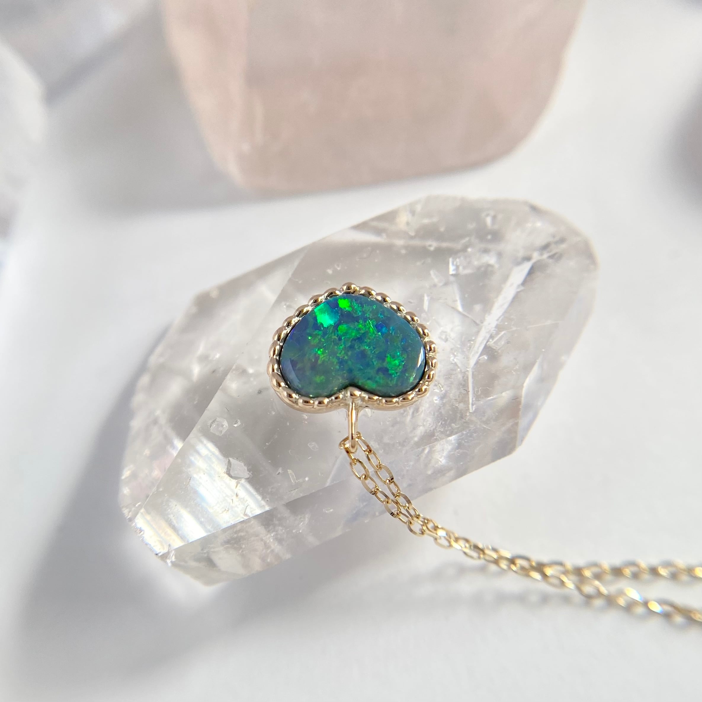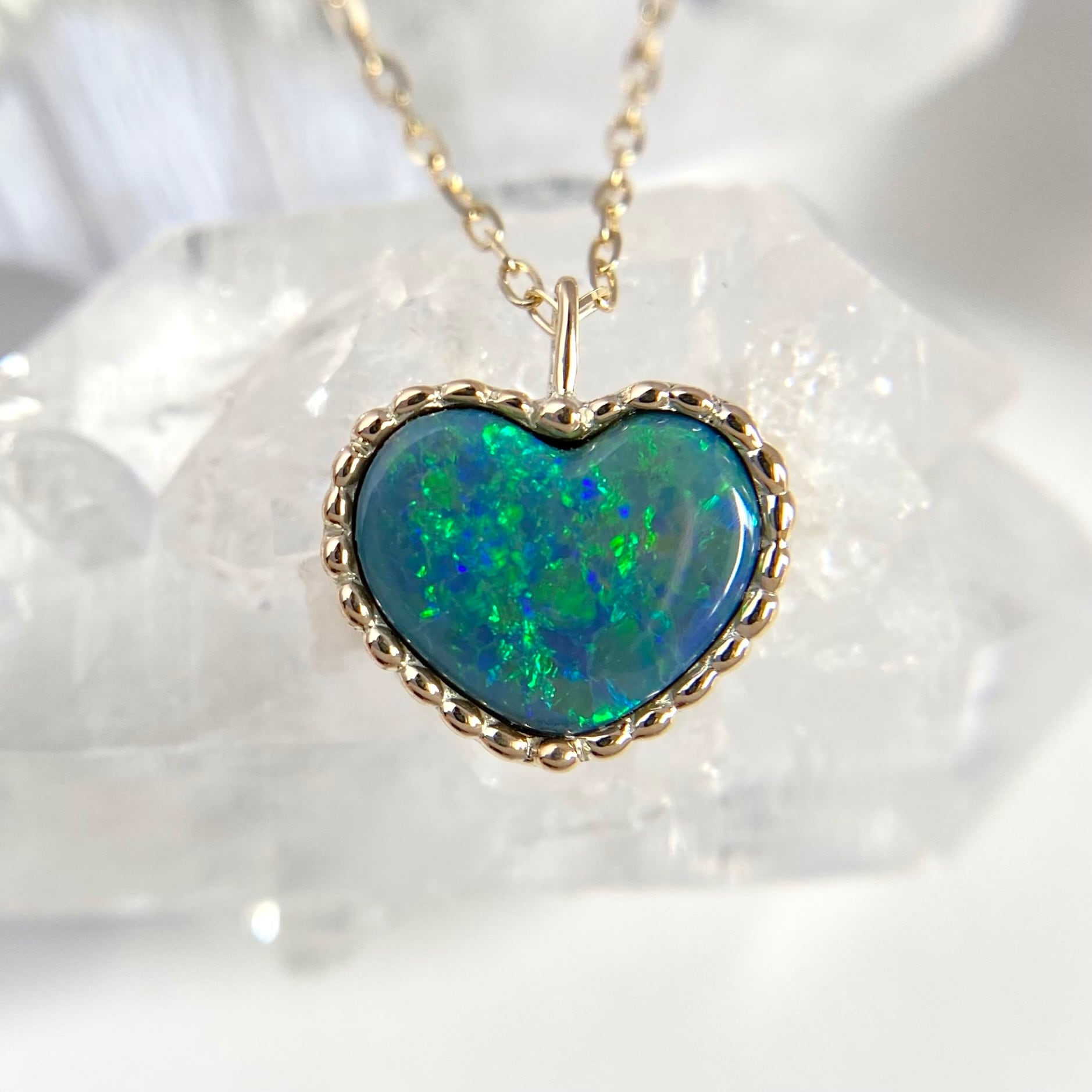 K10☆天然ブラックオパールハートネックレス☆オーストラリア、NSW州ライトニングリッジ産原石から磨いた1点ものジュエリー!