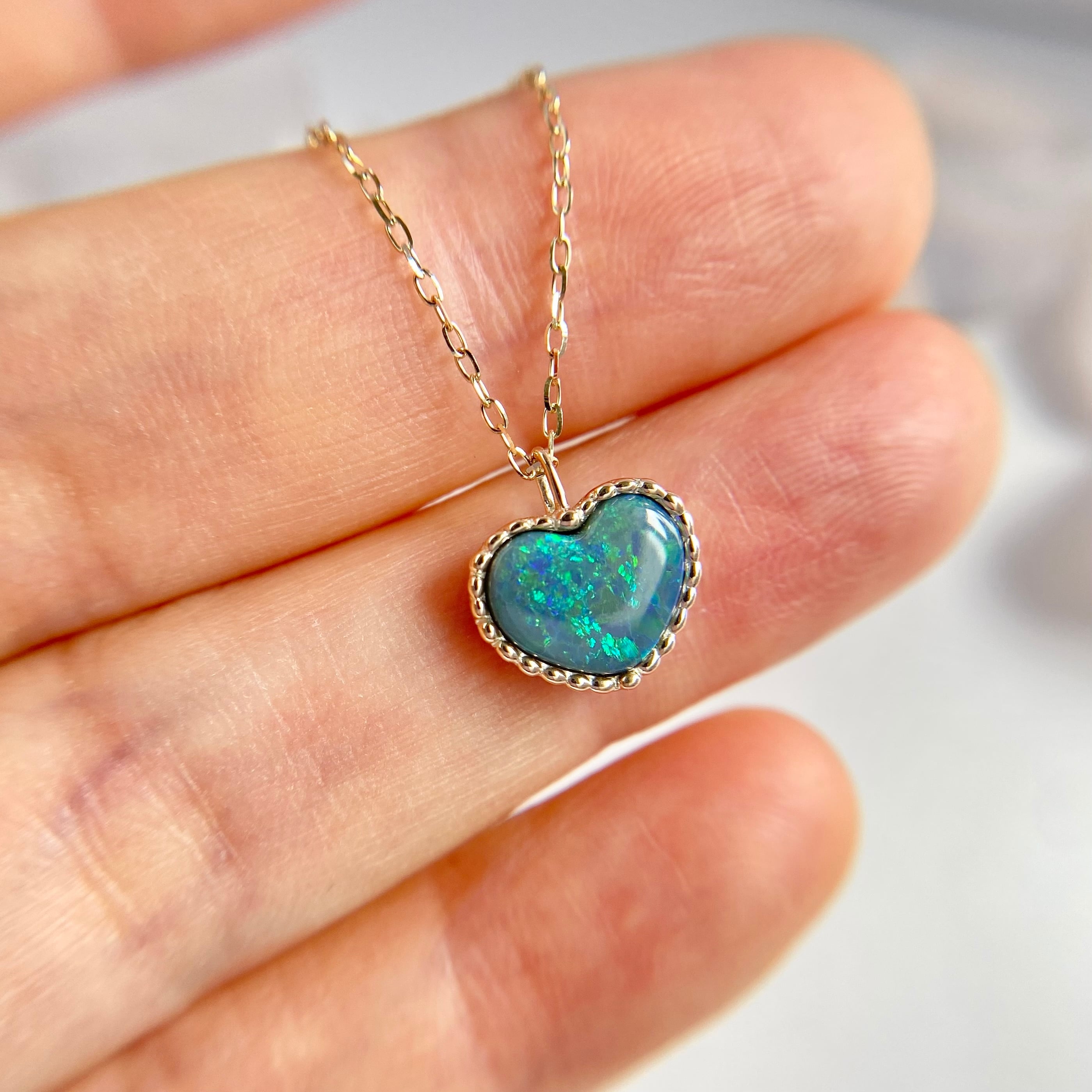 K10☆天然ブラックオパールハートネックレス☆オーストラリア産原石から磨いた1点ものジュエリー!