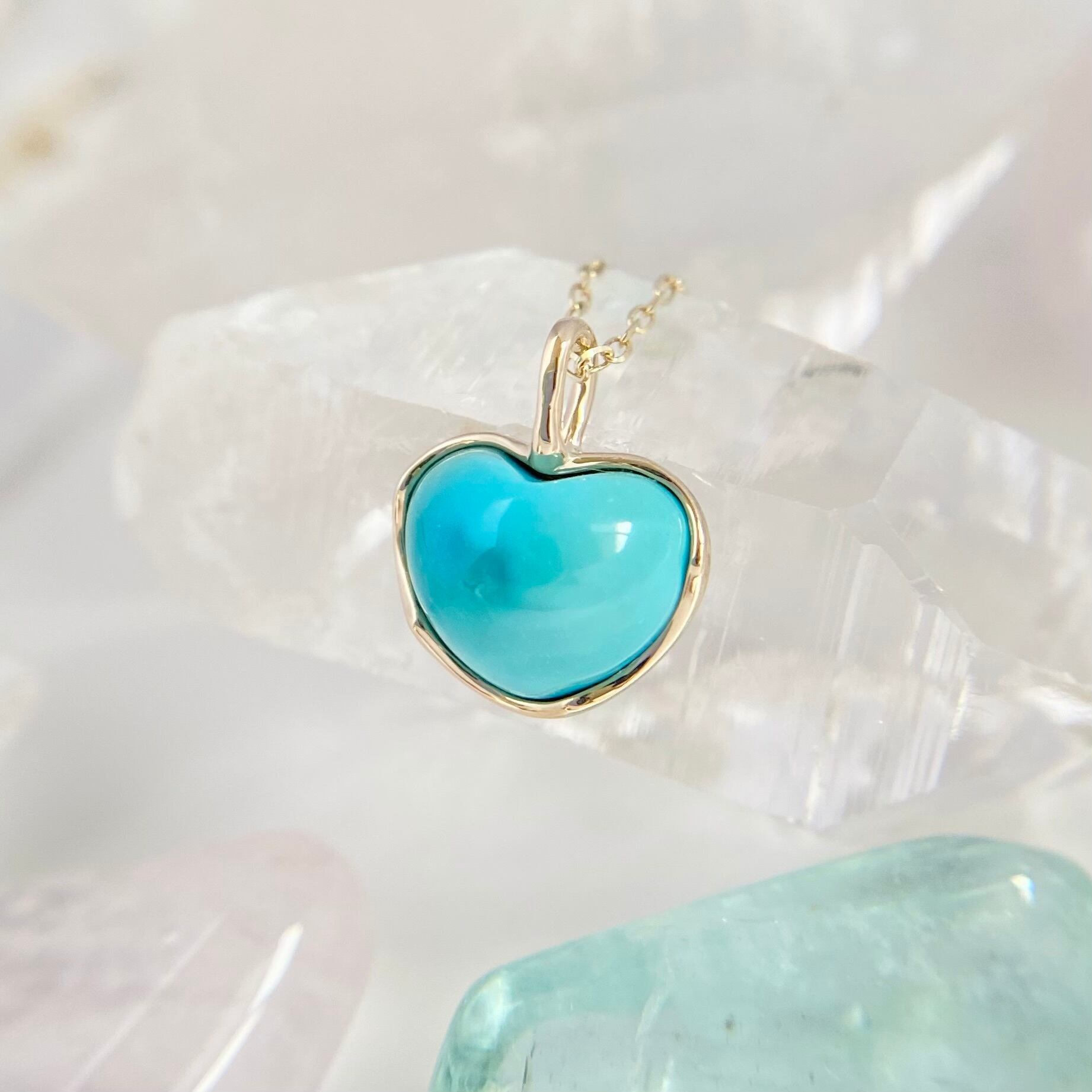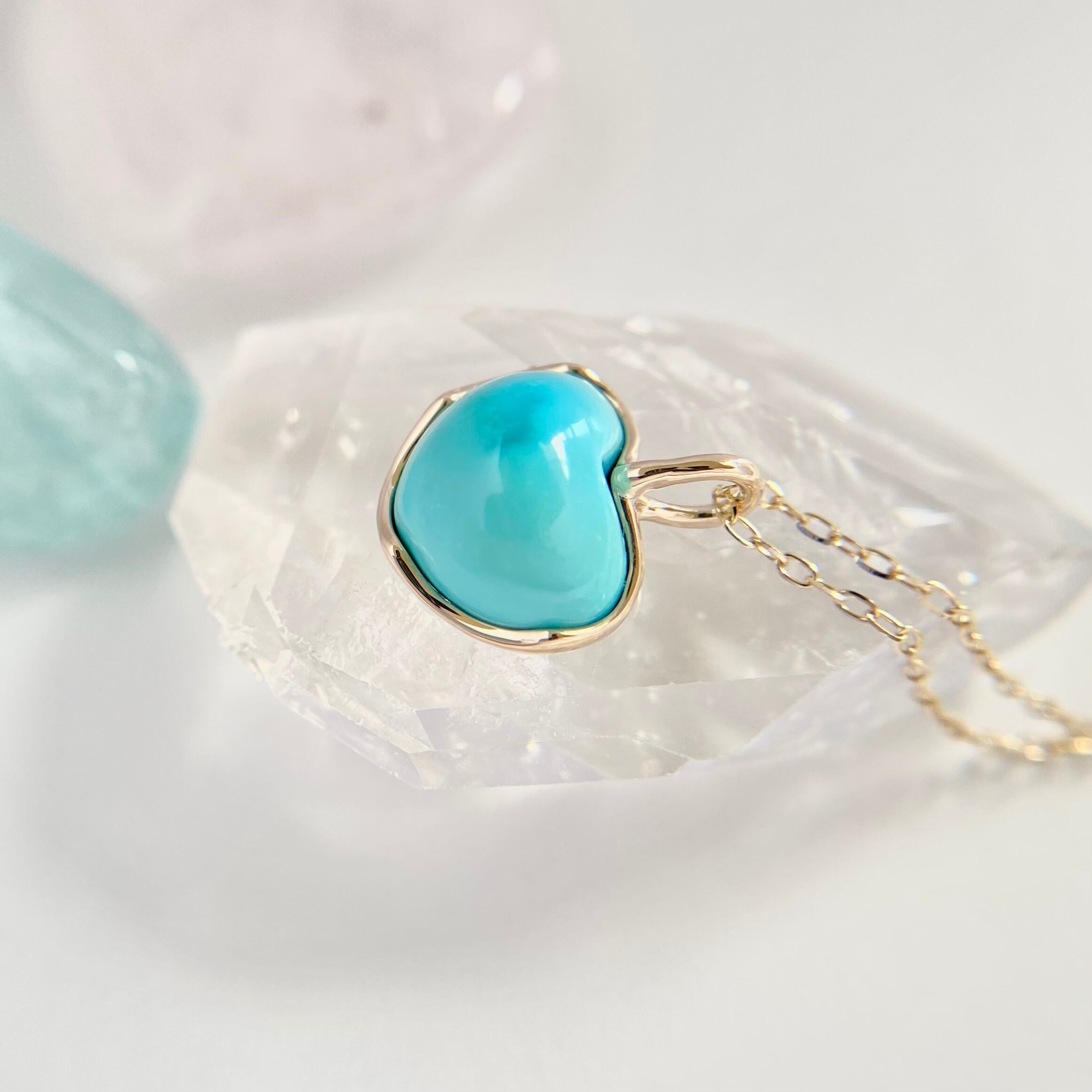 K10天然トルコ石(ターコイズ)ハートネックレス☆スリーピングビューティー産原石から磨いた1点ものジュエリー!https://arikajewelry.theshop.jp/items/88074490