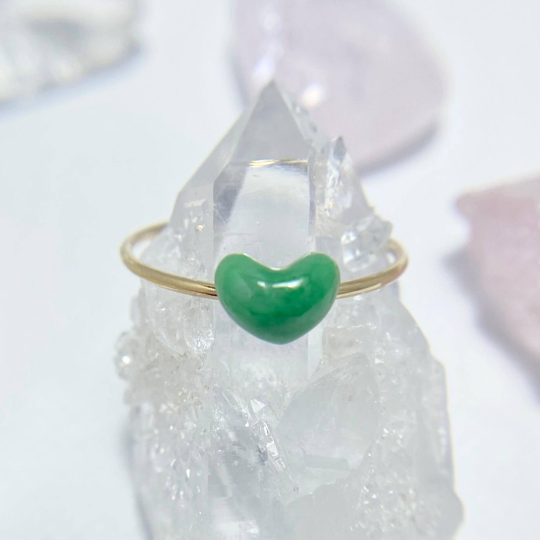 天然翡翠ハートリング!ミャンマー産原石から磨きました!(選べるサイズ)