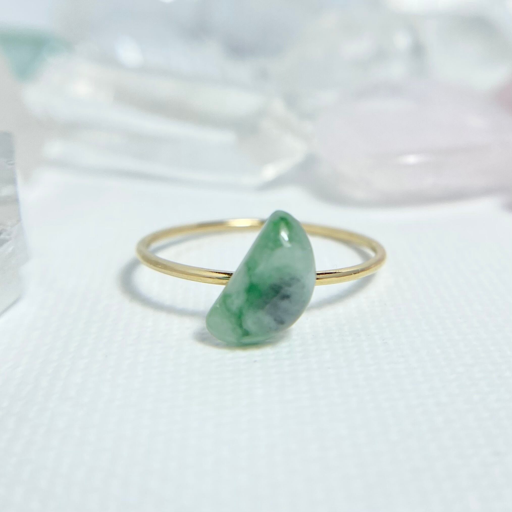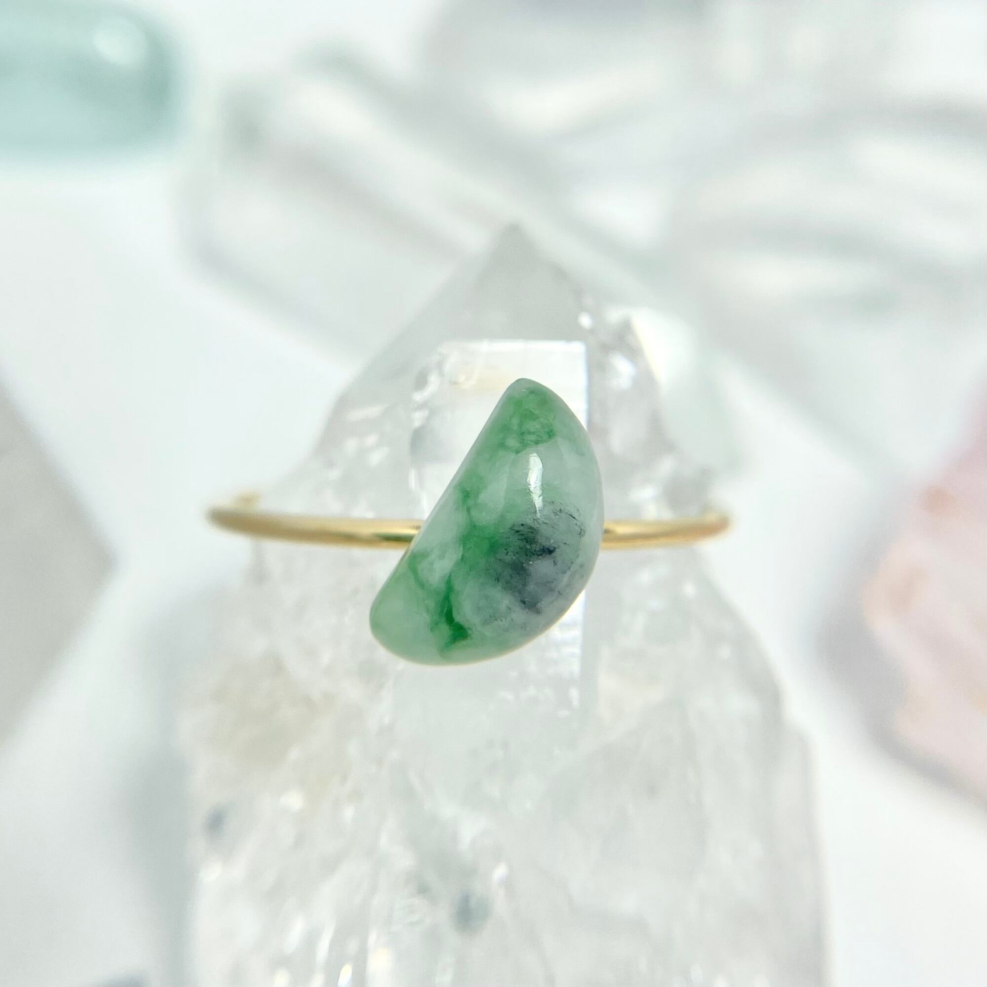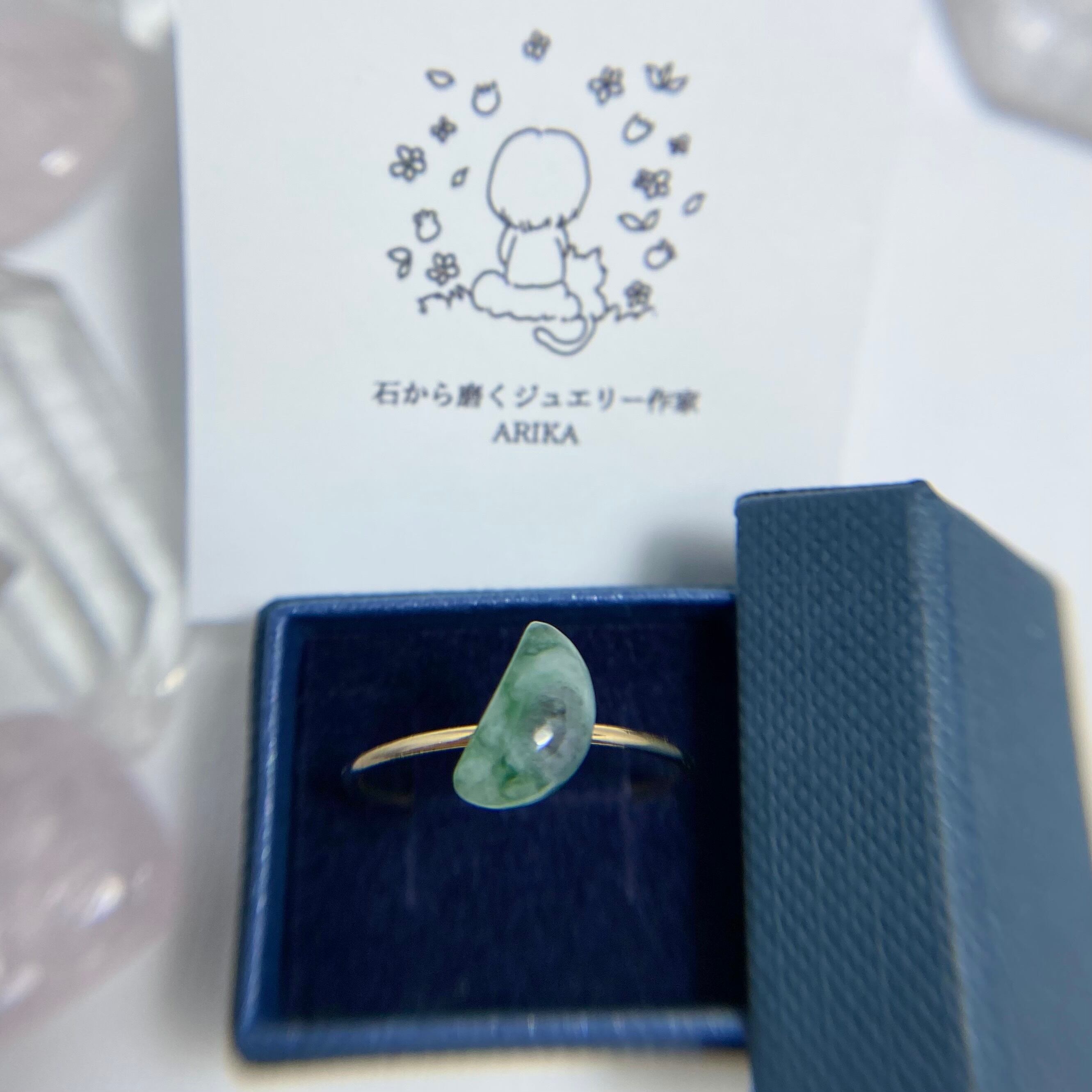 天然翡翠のハーフムーンリング!新潟県青海産原石を丁寧に磨き上げた、希少な一点物です。