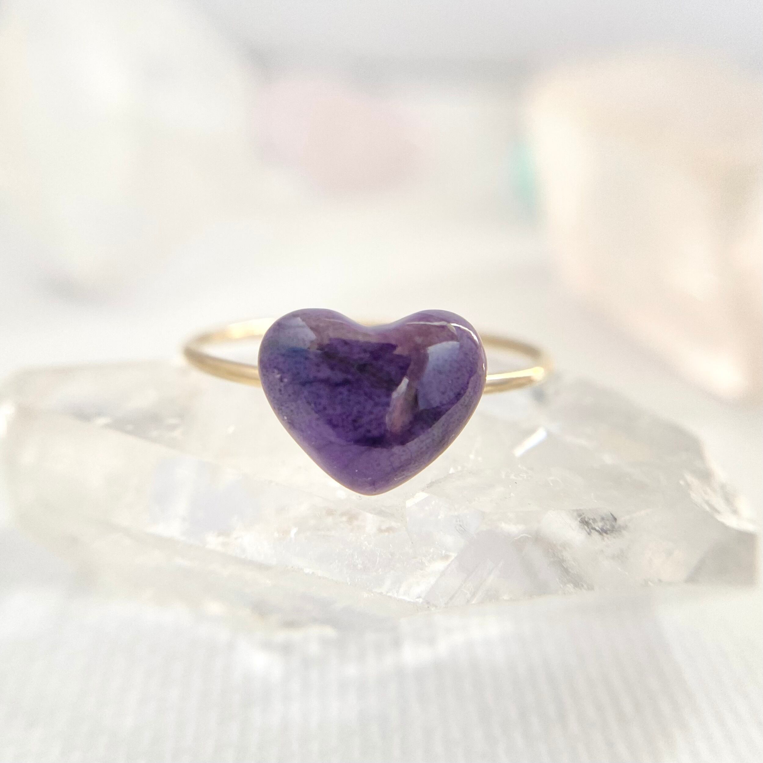 天然スギライトハートリング!アリゾナ州産の天然スギライト原石から一つ一つ手磨きで仕上げました。