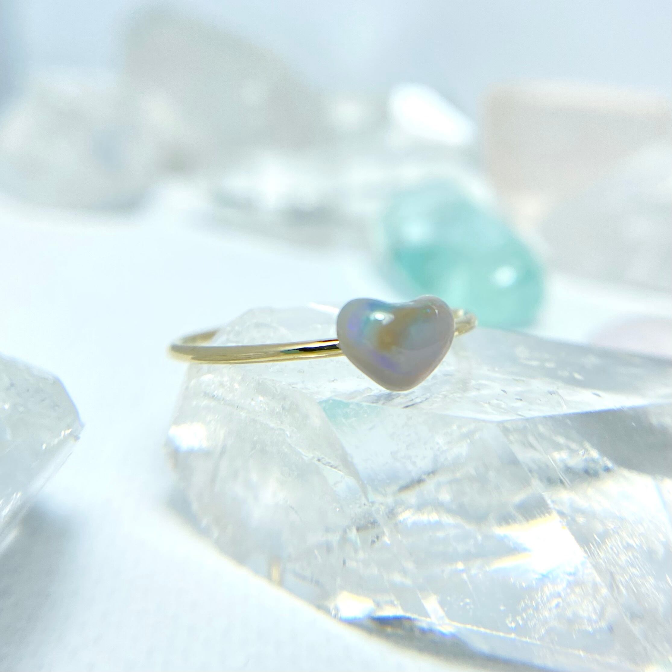 個性的で可愛らしい天然オパールハートリング☆