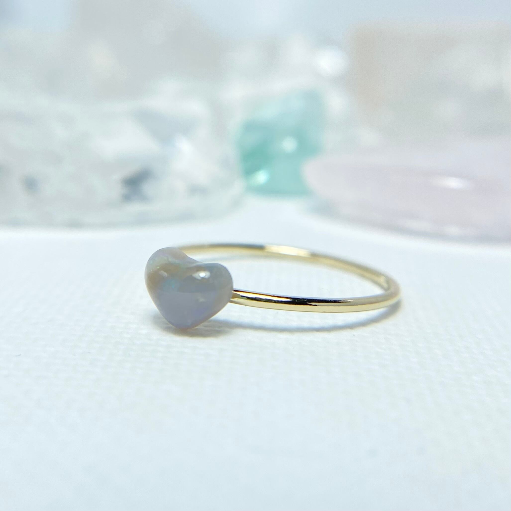 天然オパールハートリング♡原石から磨きました!(選べるサイズ)