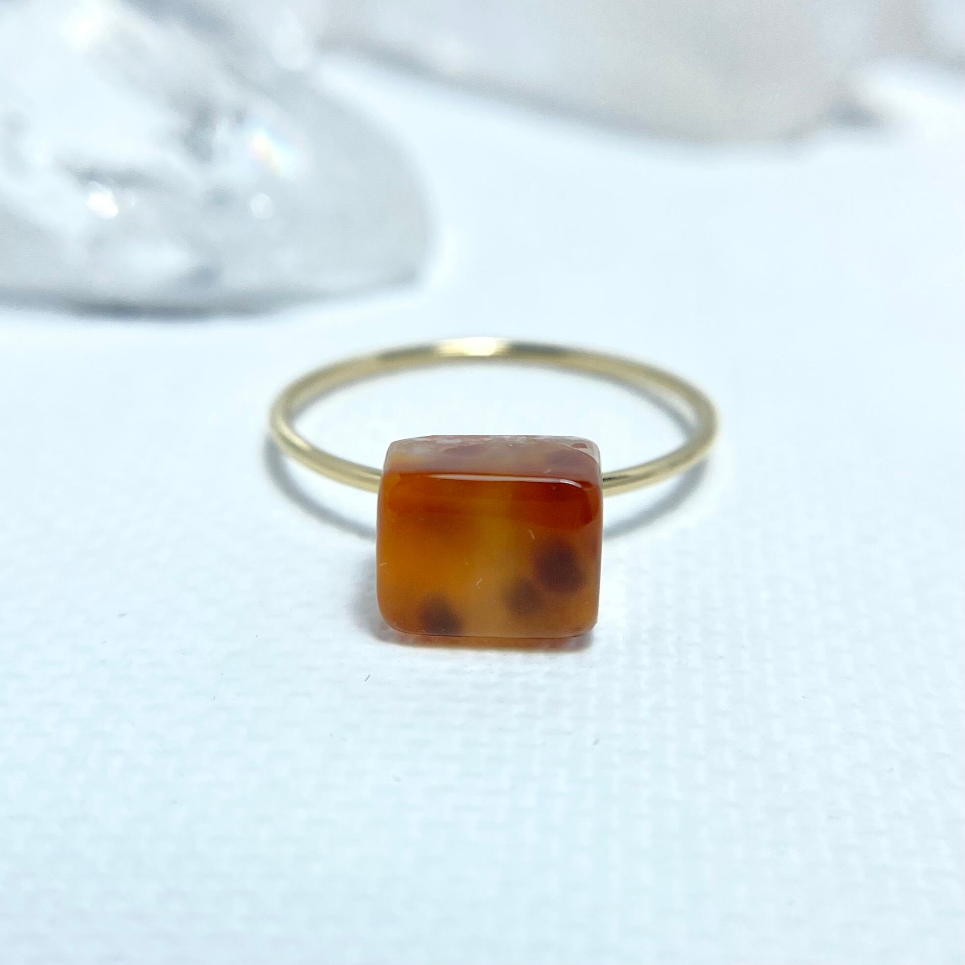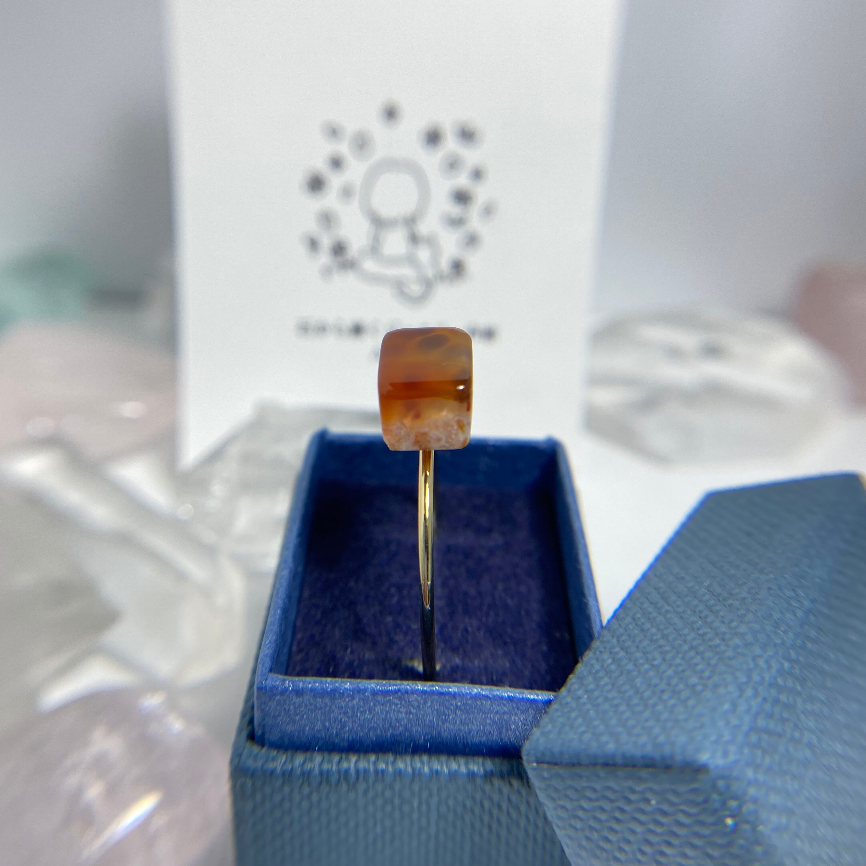 天然メノウ(瑪瑙)リングは、原石から磨き上げた1点もの。インクリュージョンがまるで和菓子のように美味しそうに見えます。