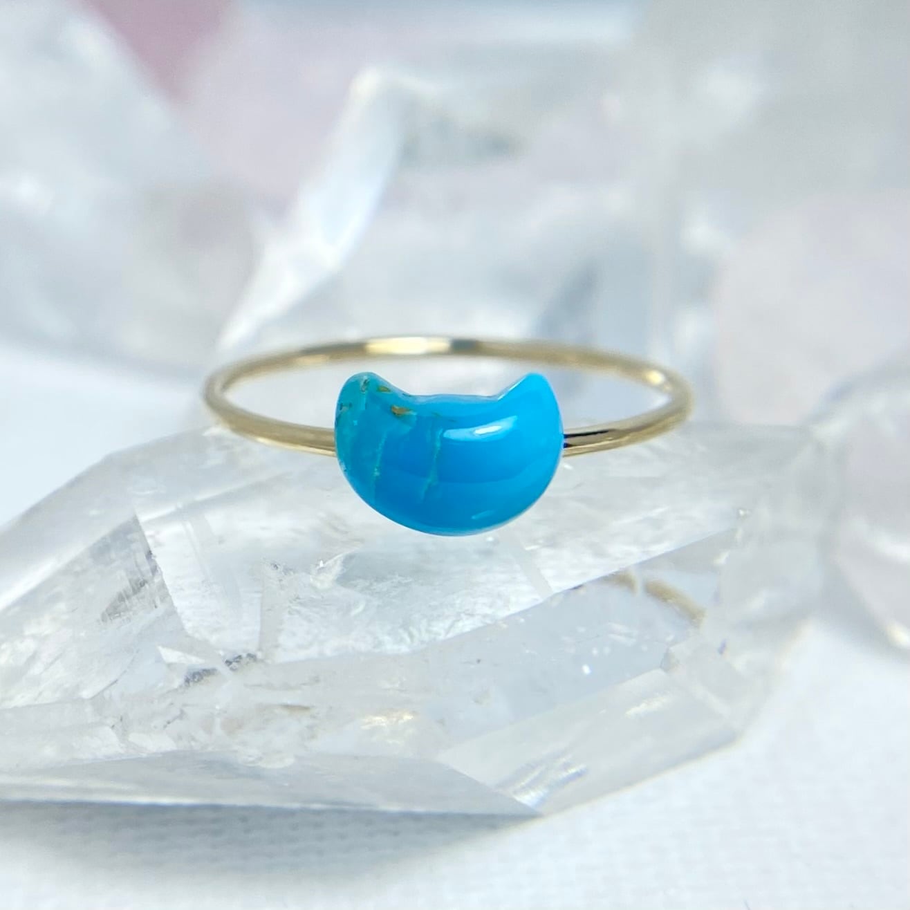 猫ちゃんリング☆天然トルコ石(ターコイズ)原石から磨きました!