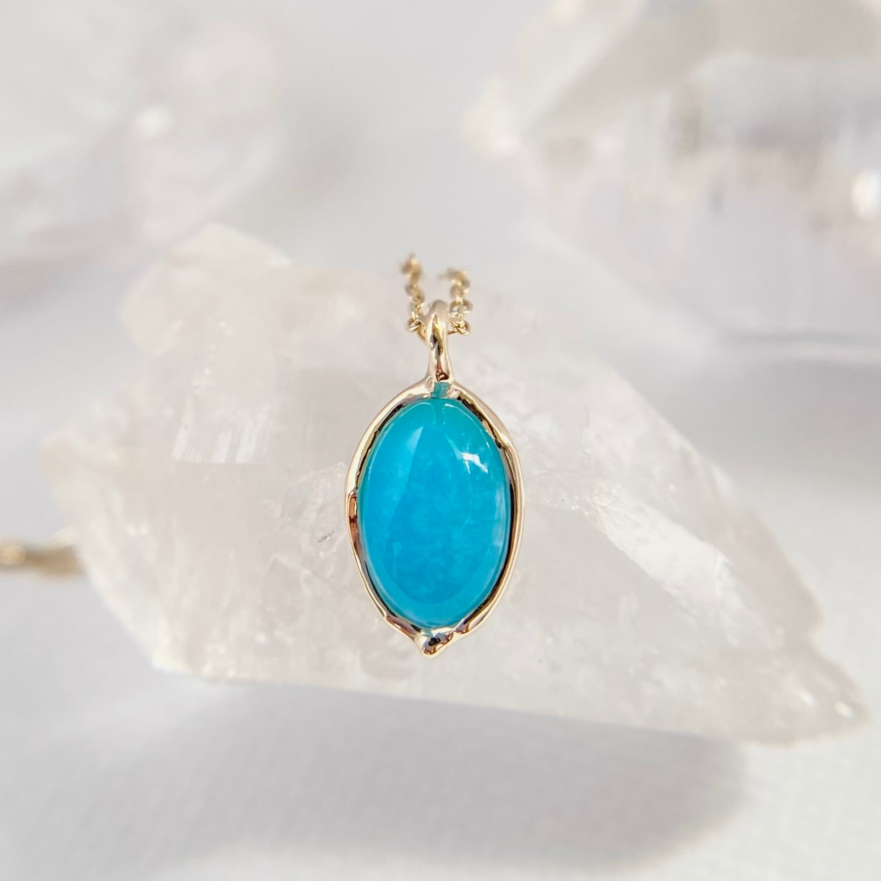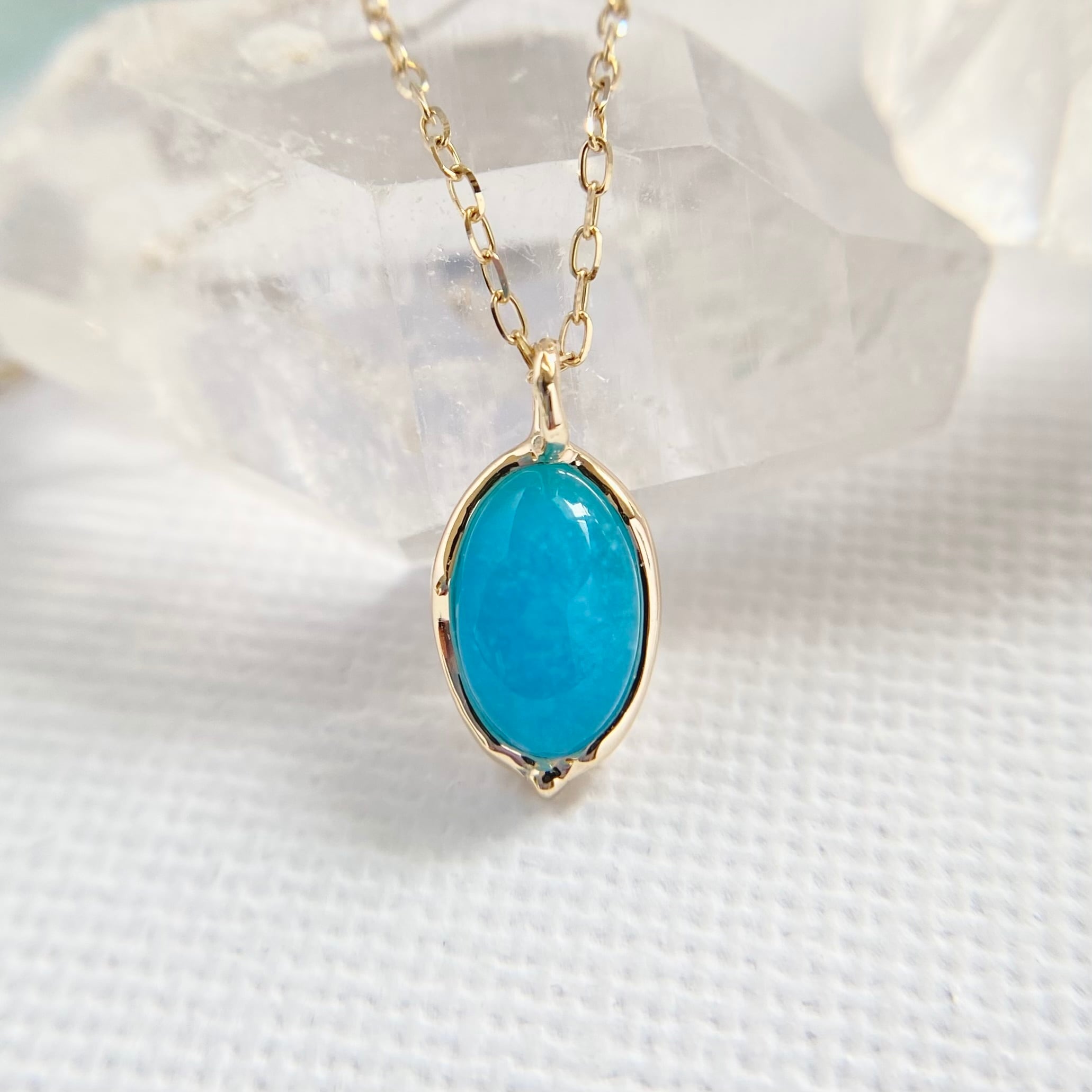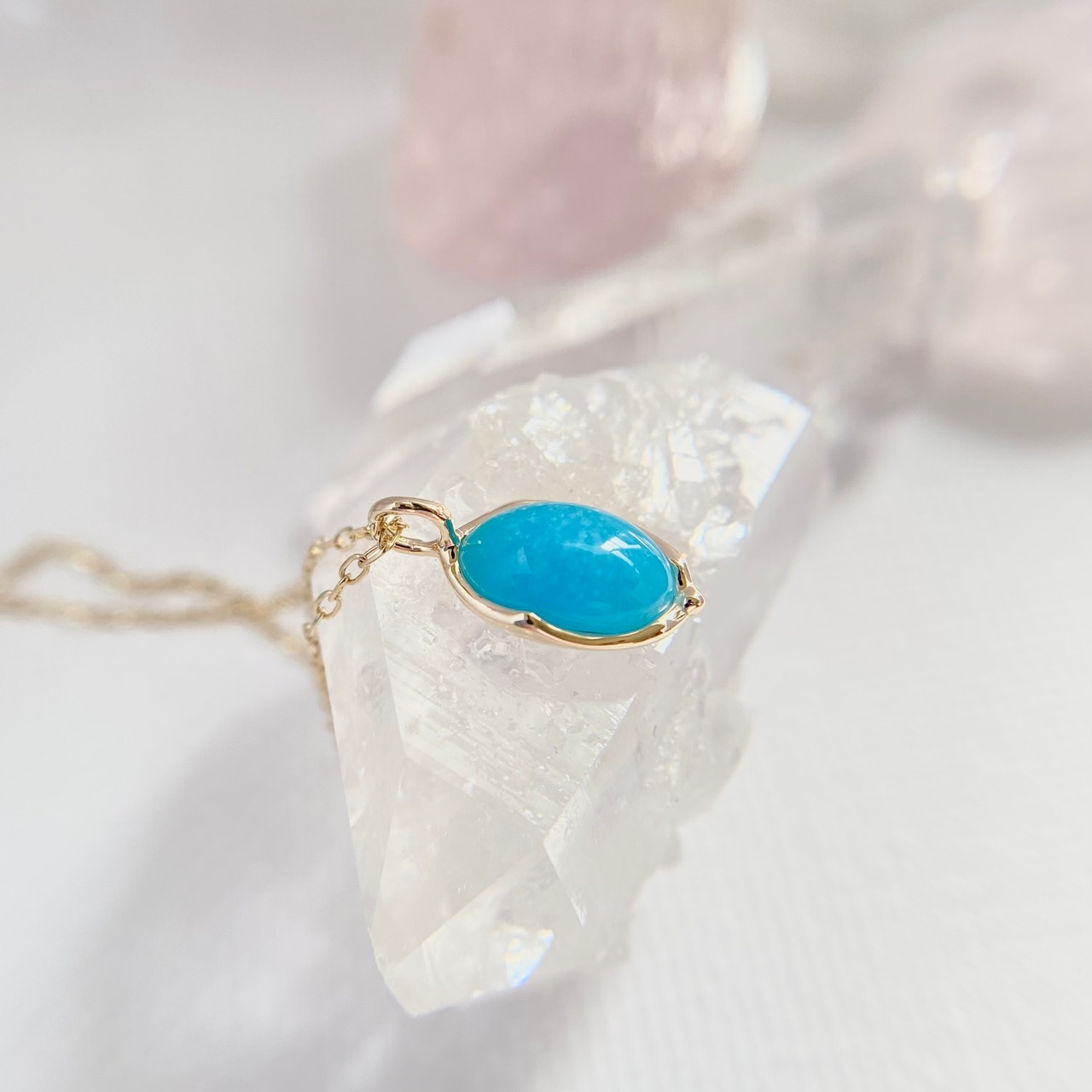 水色がきれいなヘミモルファイト原石を磨いてネックレスを作りました。