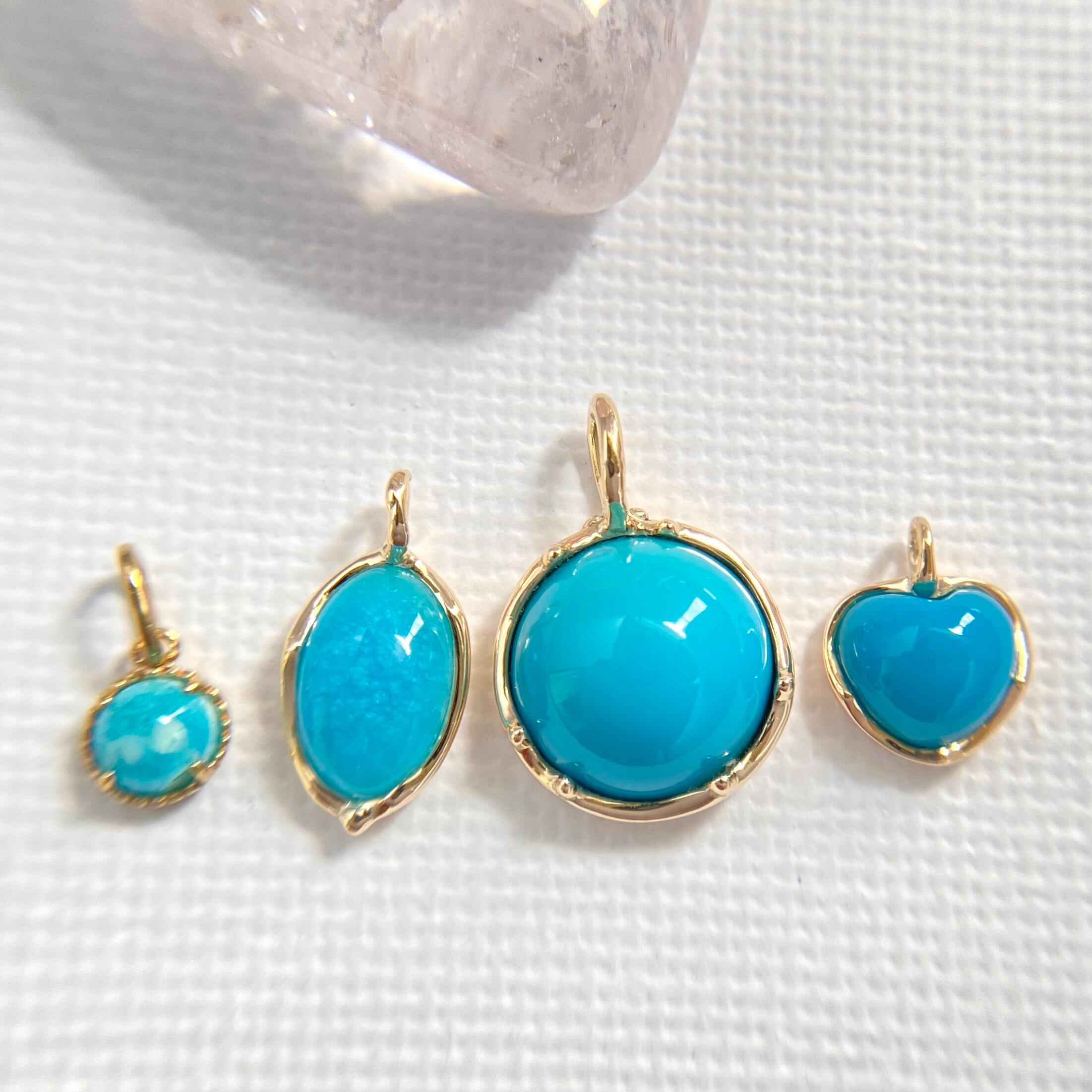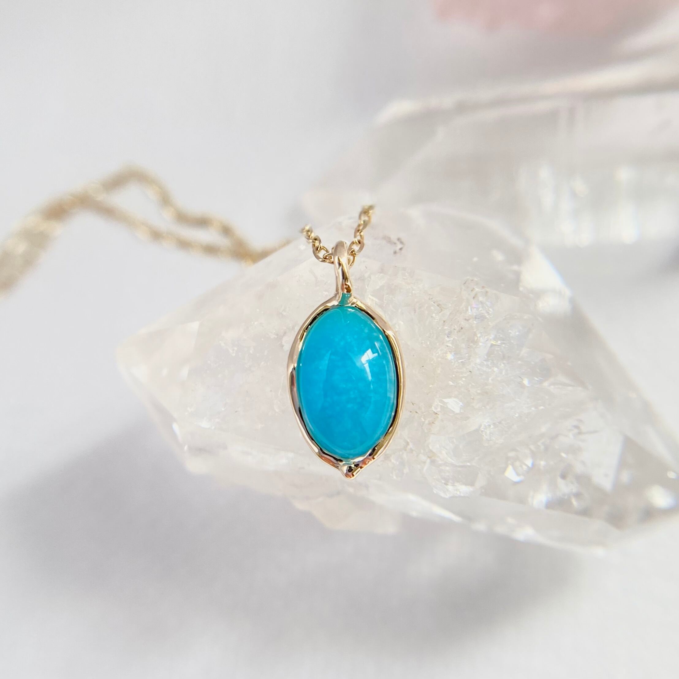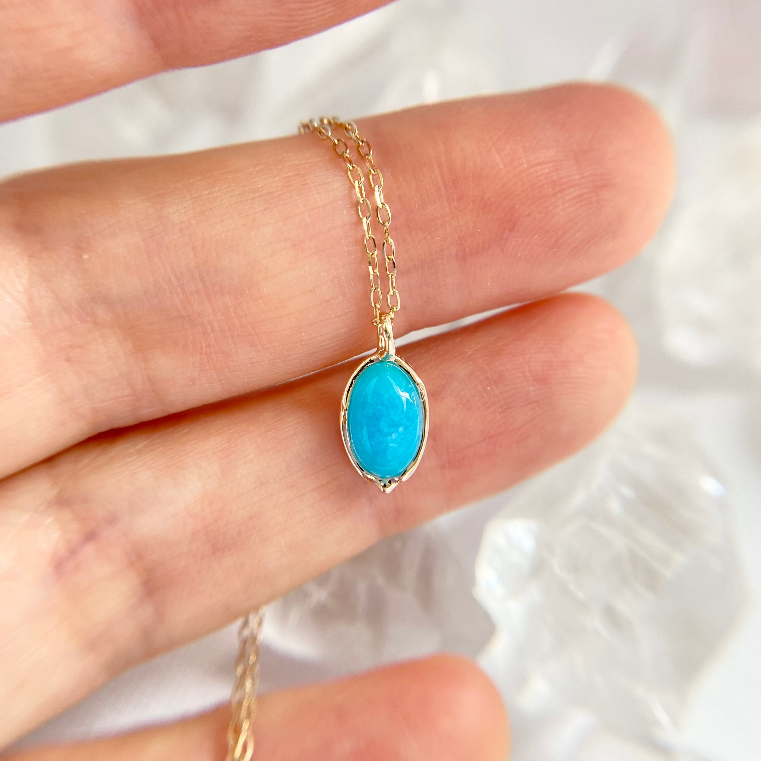 水色がきれいなヘミモルファイト原石を磨いてネックレスを作りました。