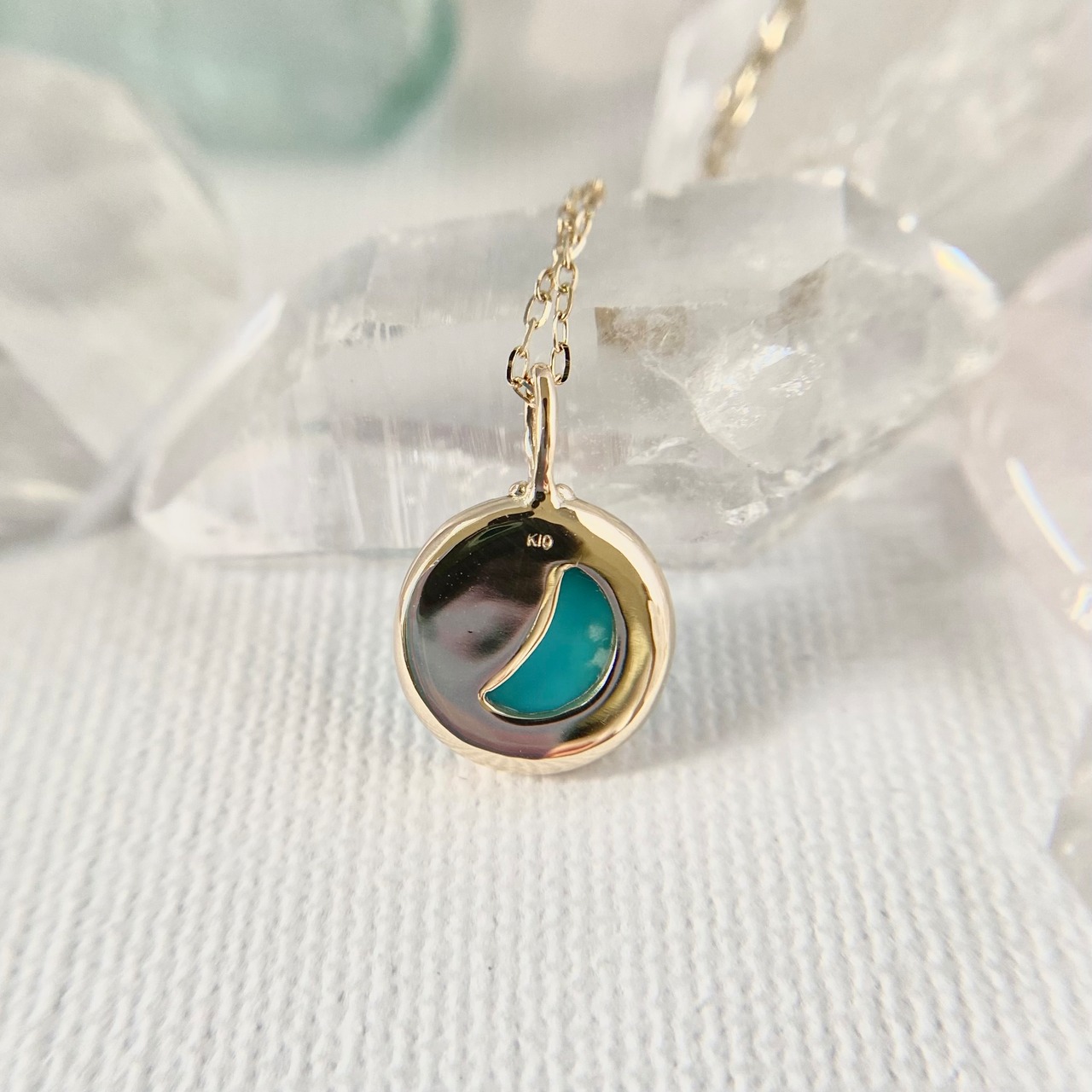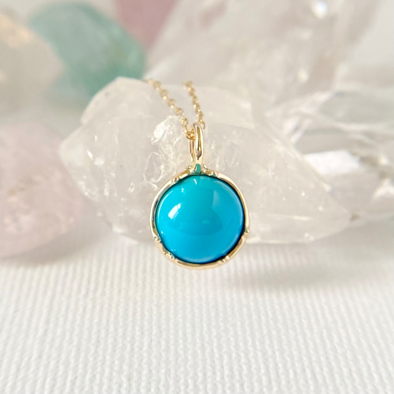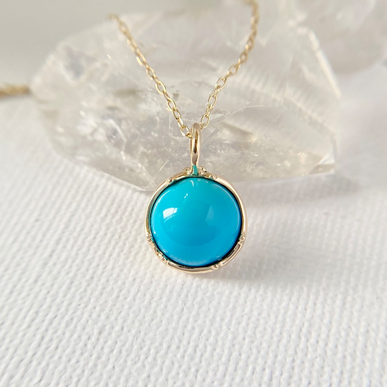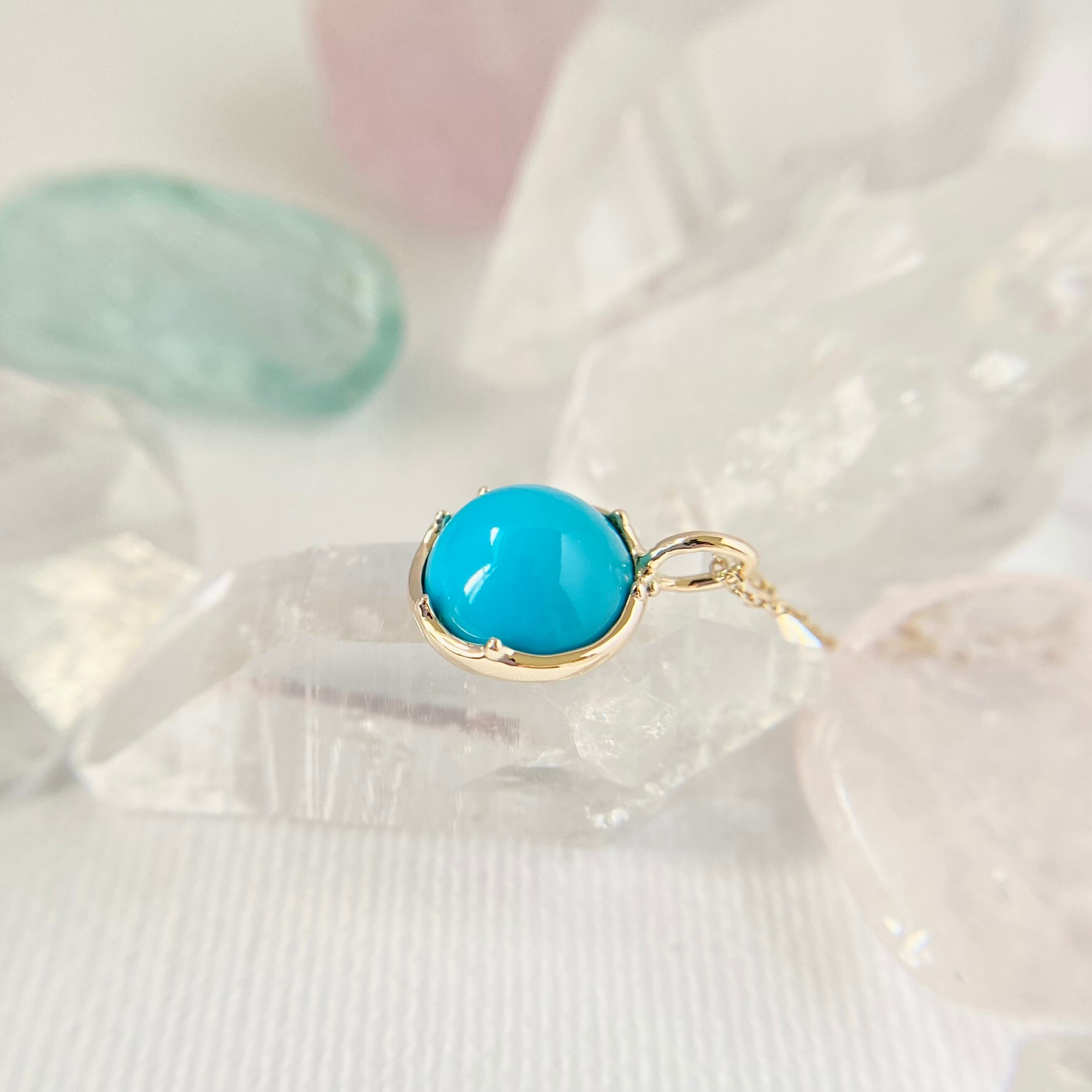 K10天然トルコ石(ターコイズ)お月さまのネックレス☆スリーピングビューティー産原石から磨きました!
