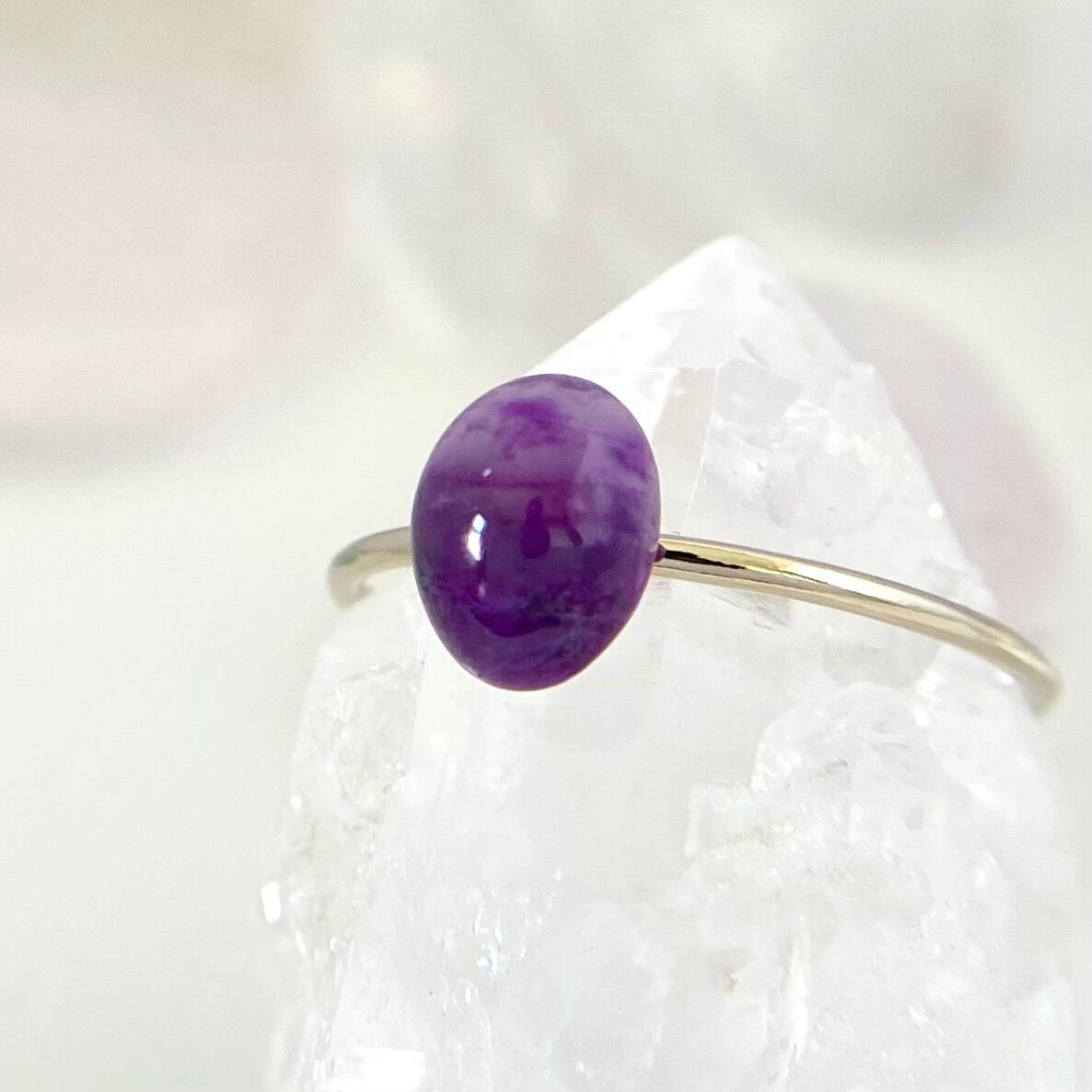 K10 天然スギライトリング (選べるサイズ) 原石から磨いた1点ものジュエリー!
