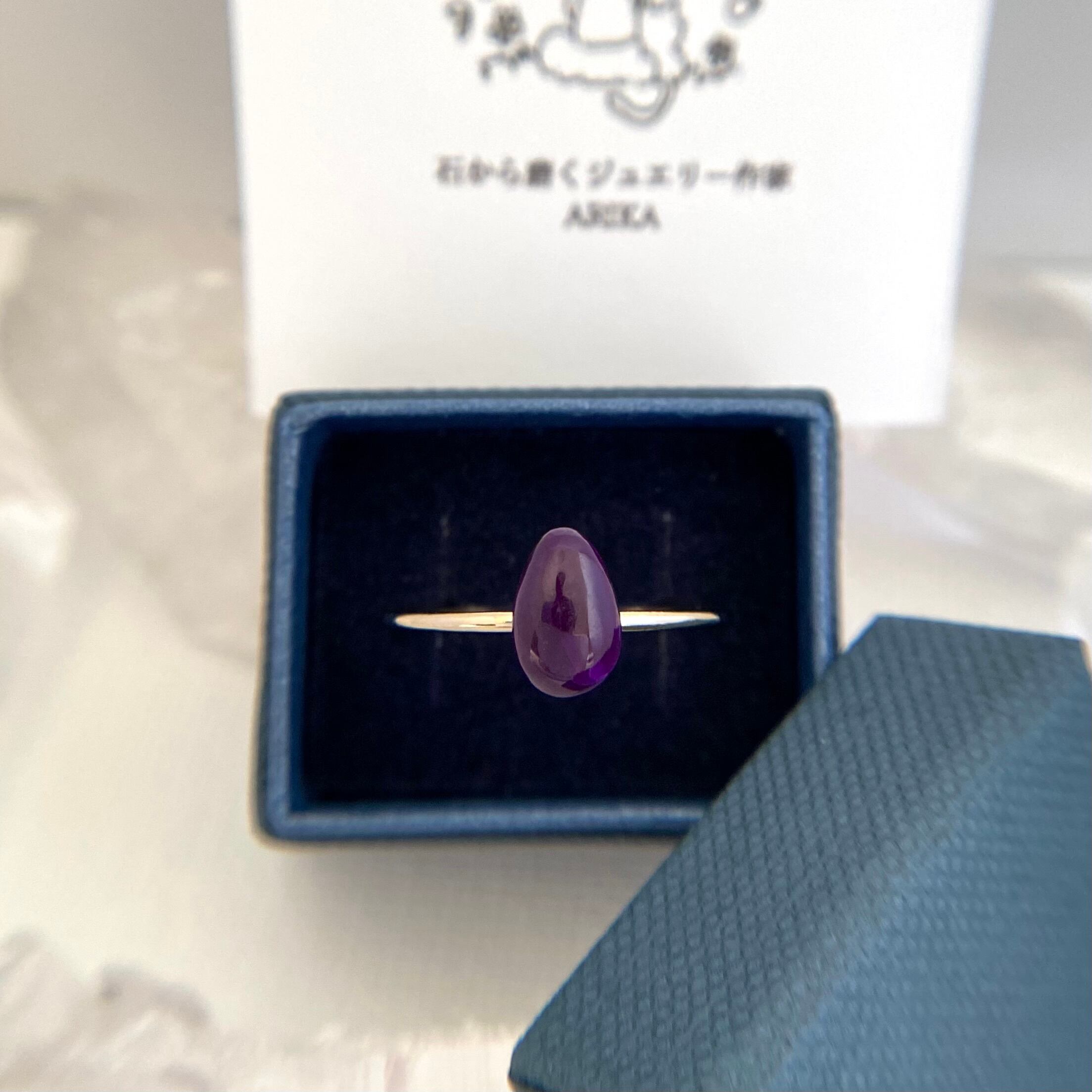 K10 天然スギライトリング (選べるサイズ) 原石から磨いた1点ものジュエリー!