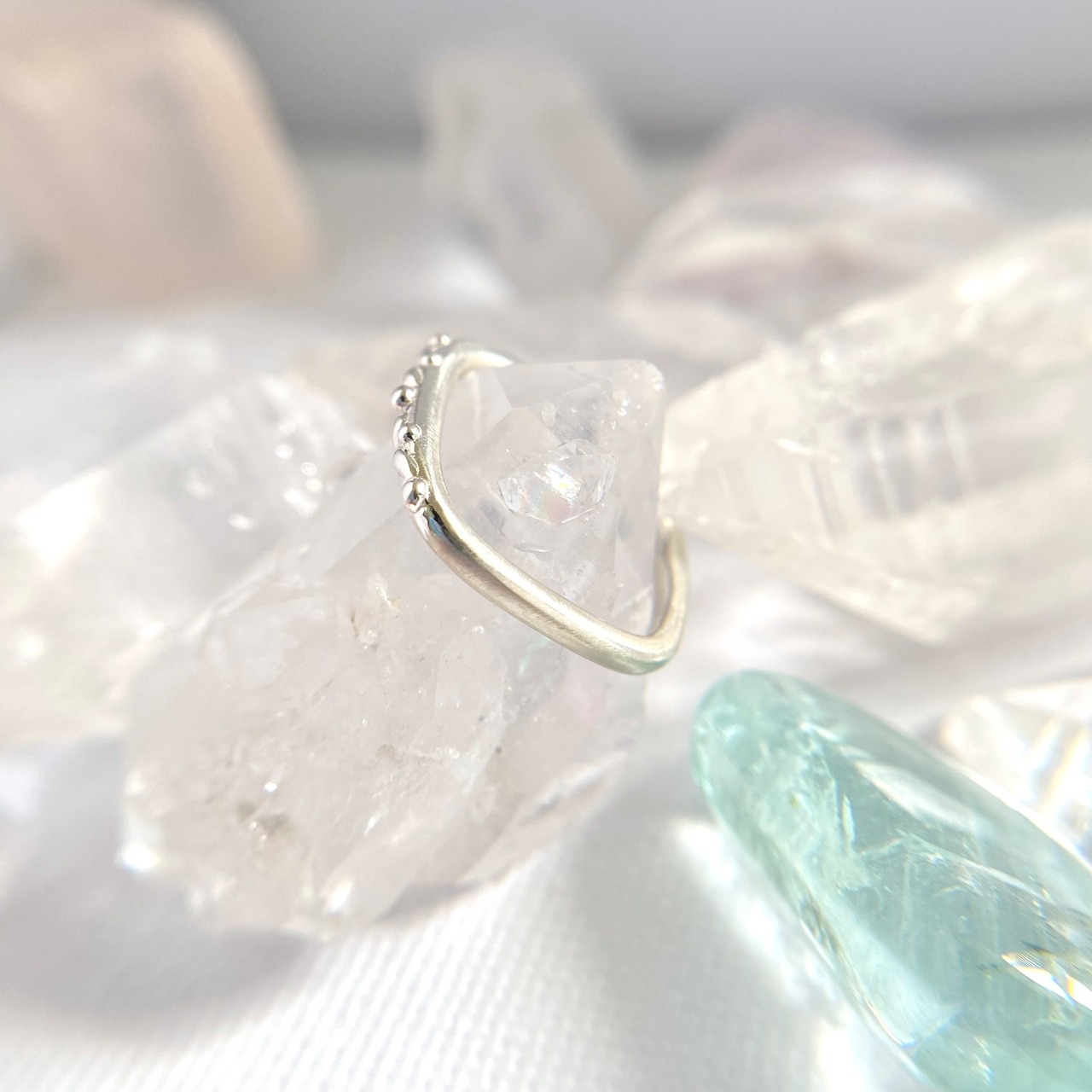 銀の雫が可愛らしいスクウェアシルバーリング サイズオーダー1点もの!
