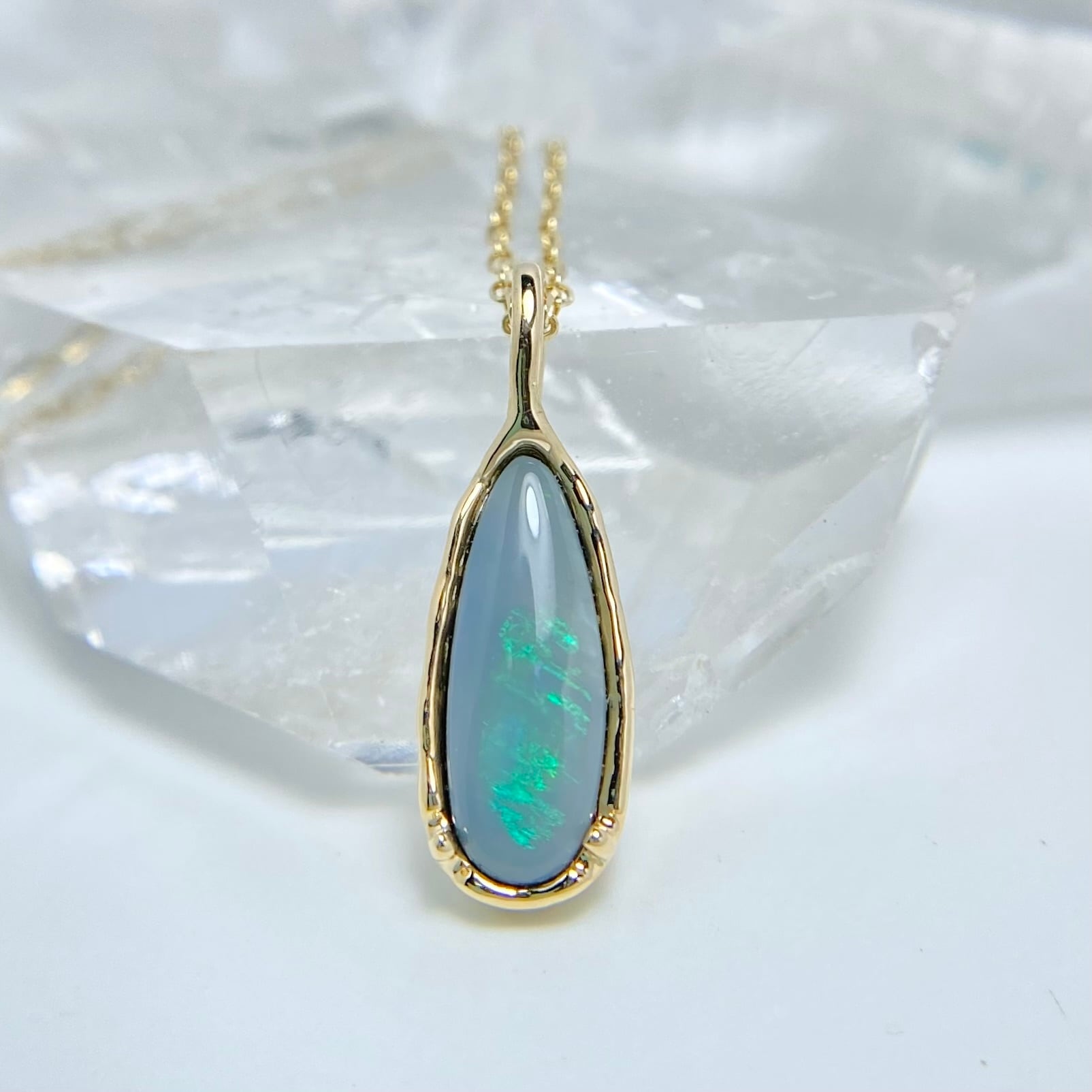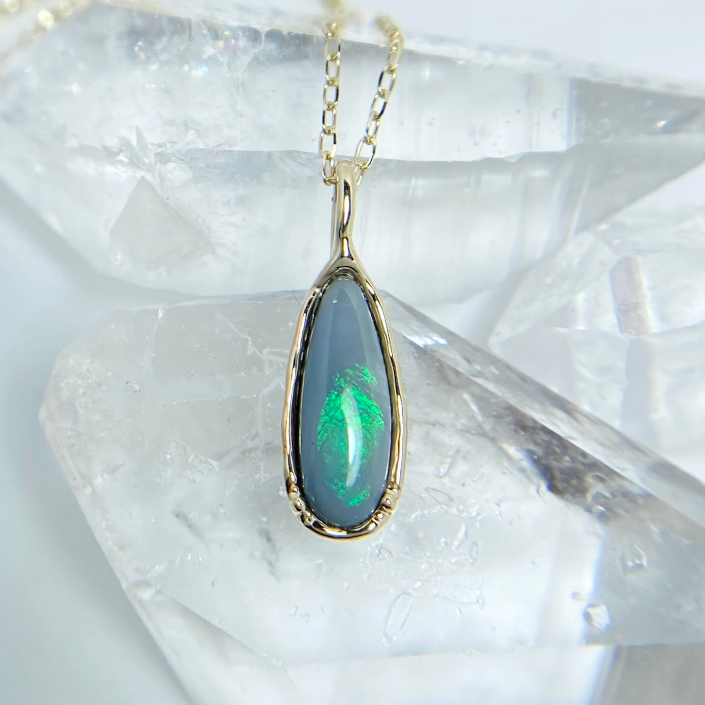 K10☆天然ブラックオパールネックレスは、オーストラリア・ライトニングリッジ産の美しい原石から丁寧に磨き上げられた1点もののジュエリーです。