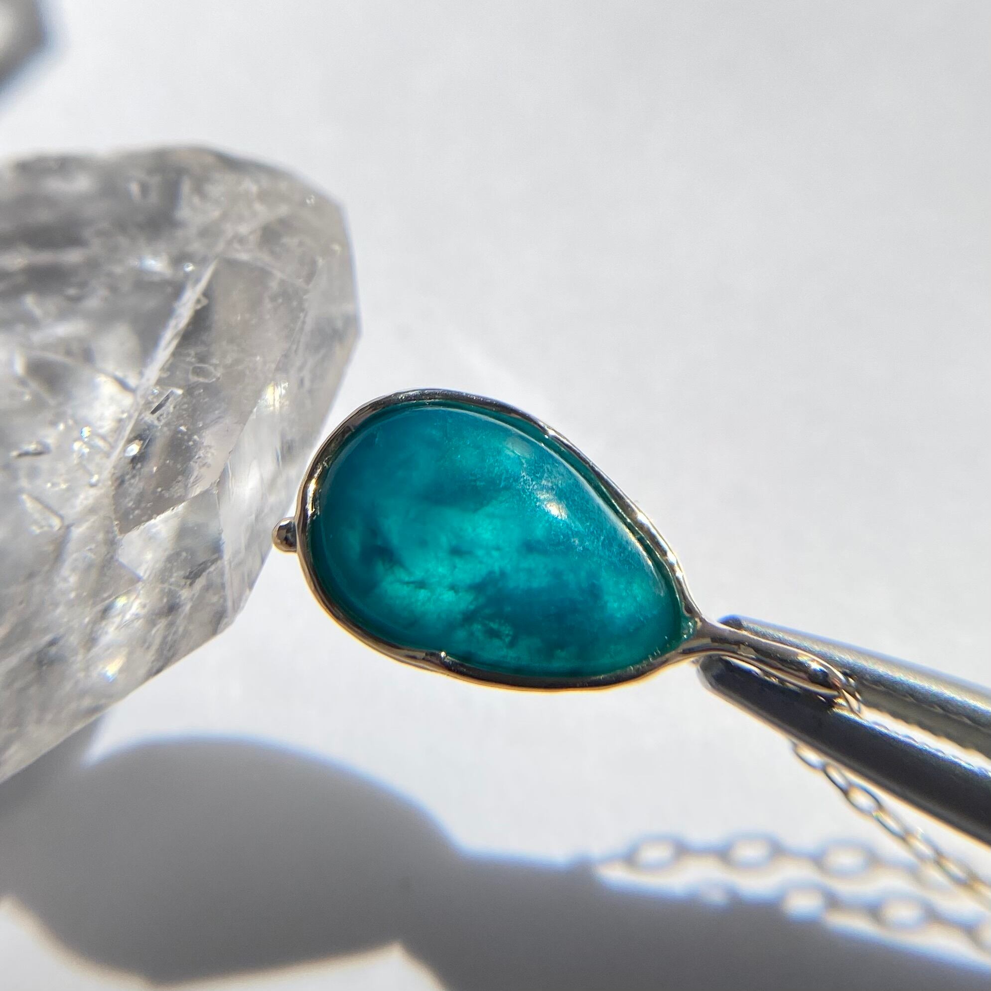 ブルーグリーンカラーが海のように美しくて、インクリュージョンが面白いジェムシリカです。光に透かして見ると模様が非常に美しく、ひときわ輝きを放ちます。