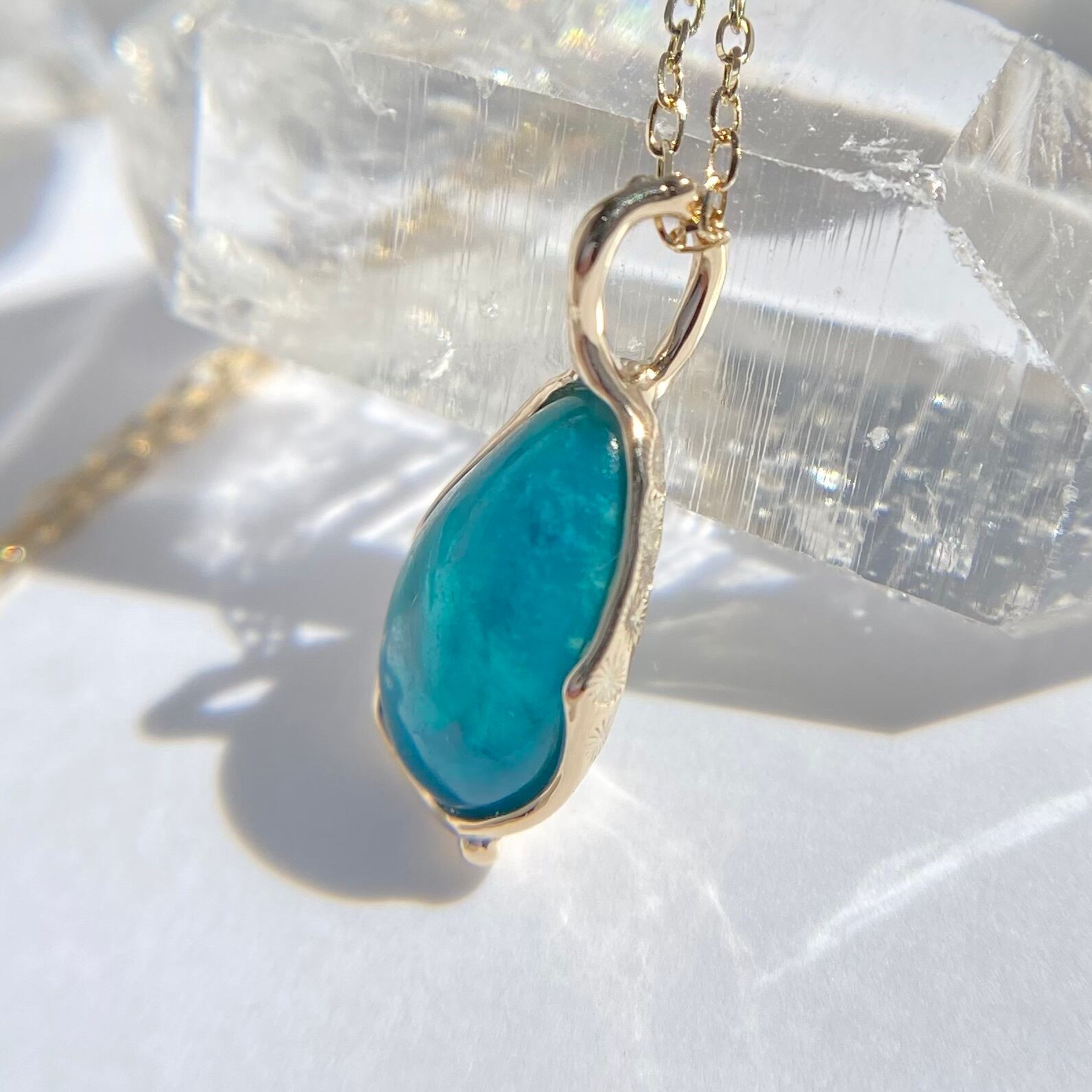 天然ジェムシリカK10ネックレスは、アメリカ・アリゾナ州産の原石から丁寧に磨かれた1点ものジュエリーです。