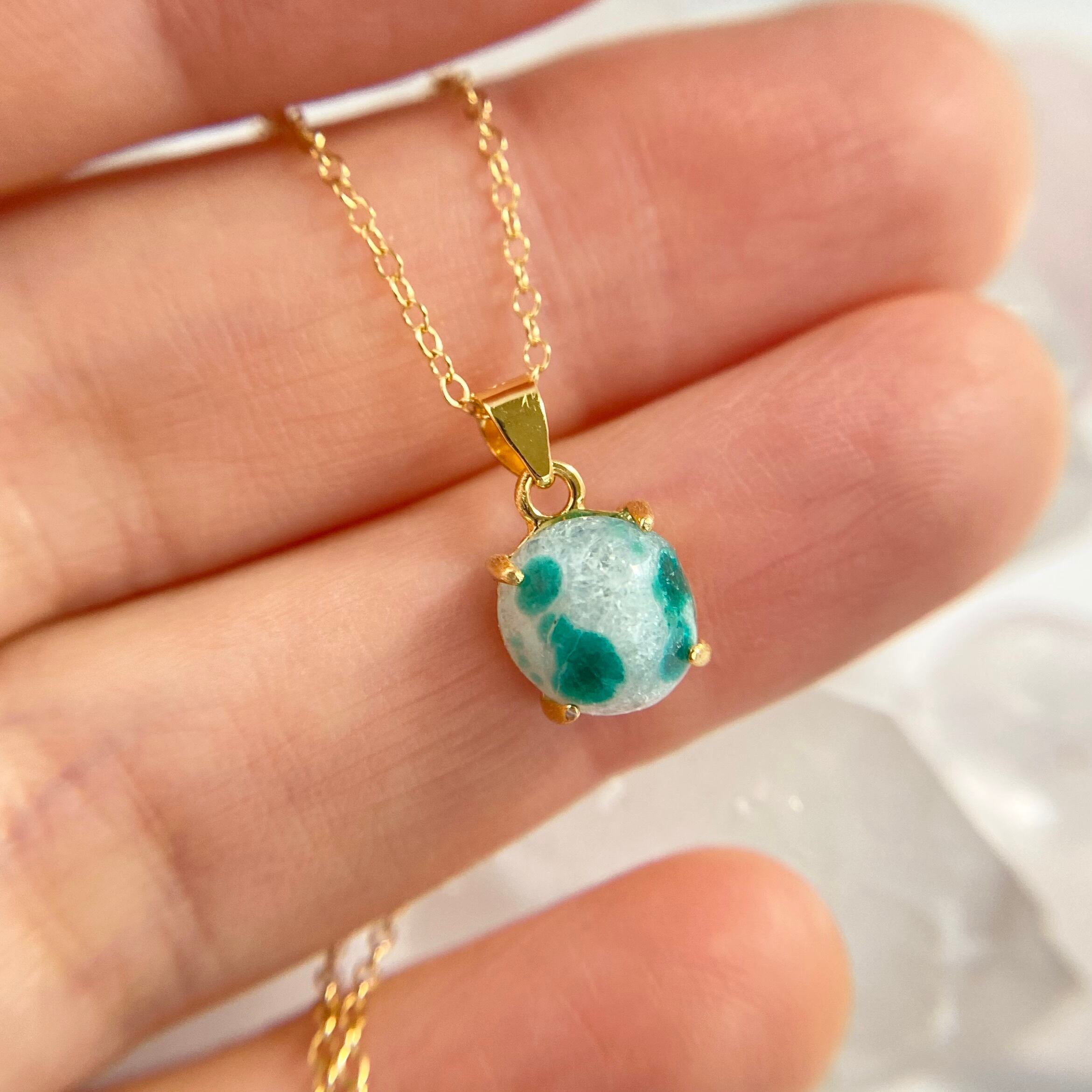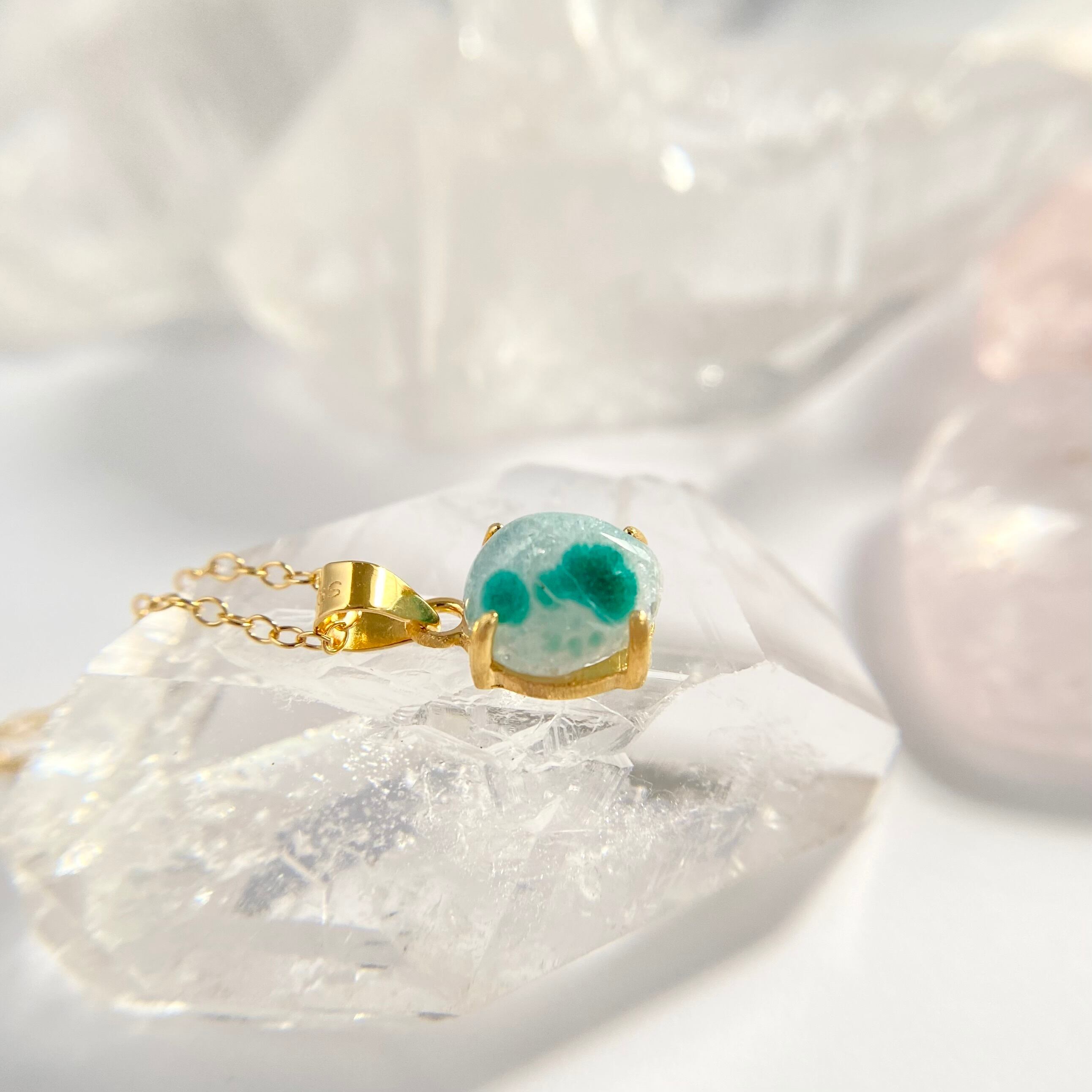天然クリソコーラクォーツネックレスは、アメリカ・アリゾナ州産の原石から丁寧に磨かれた1点ものジュエリーです。