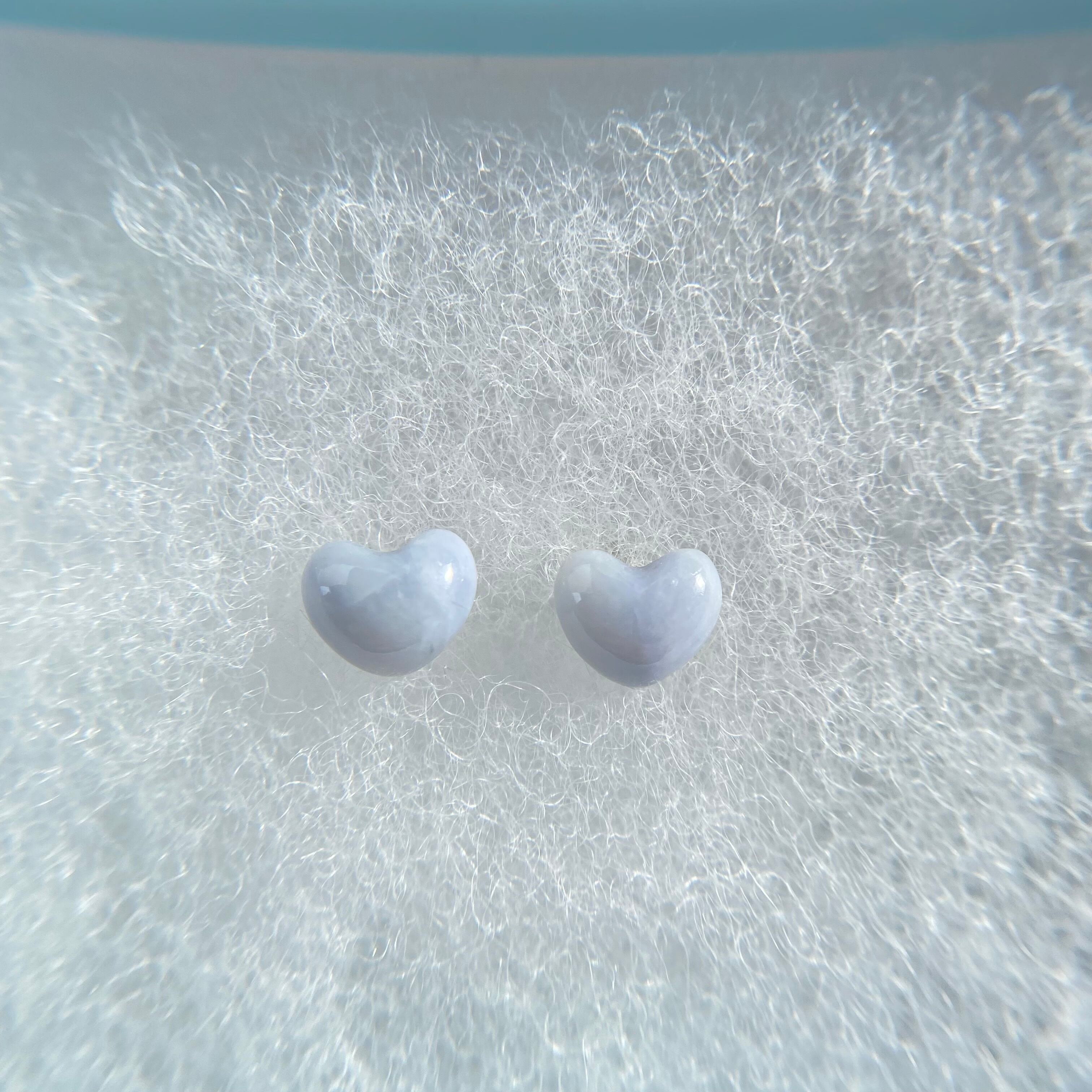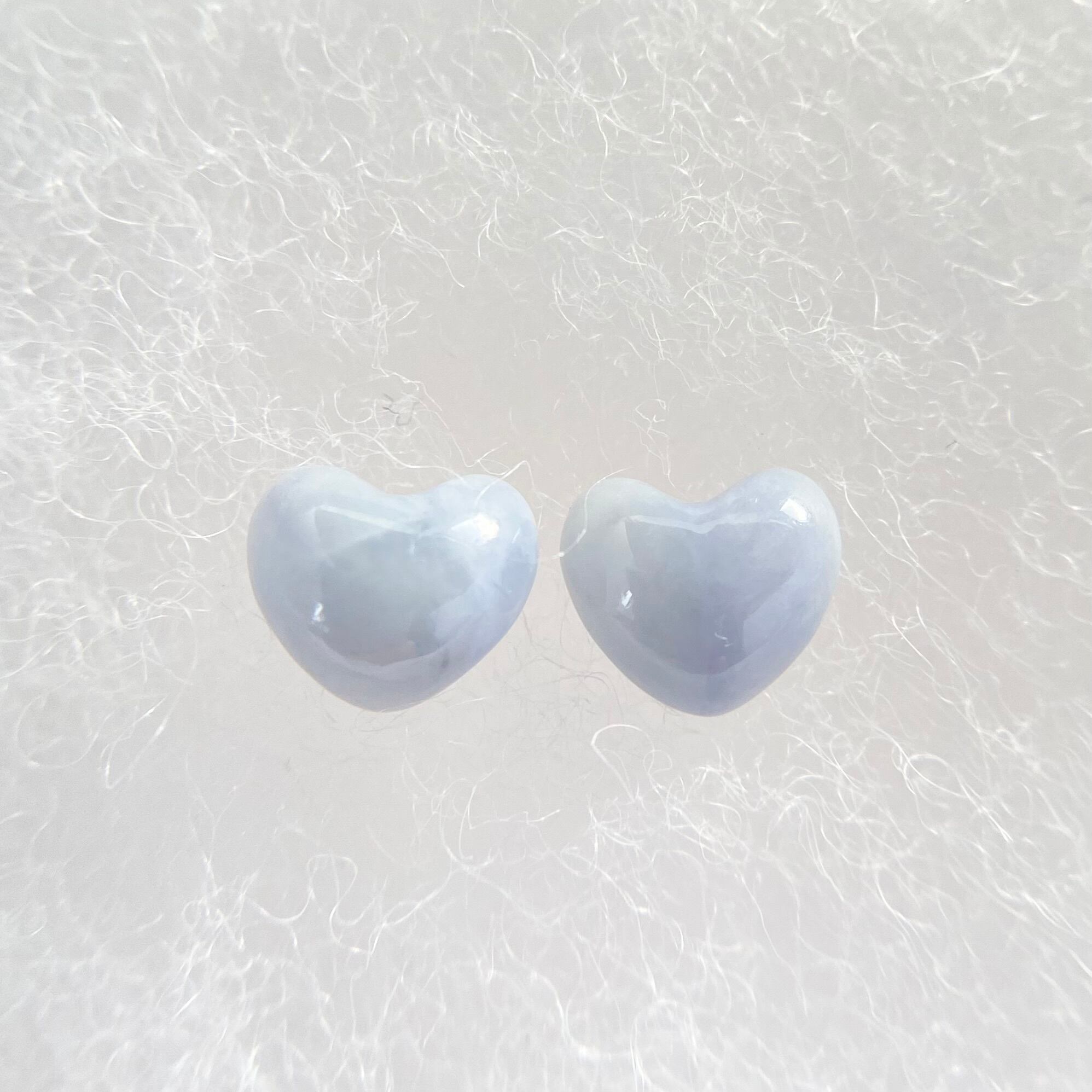 新潟県青海産の天然ラベンダー翡翠原石から丁寧に磨き上げたハート型ピアスです。