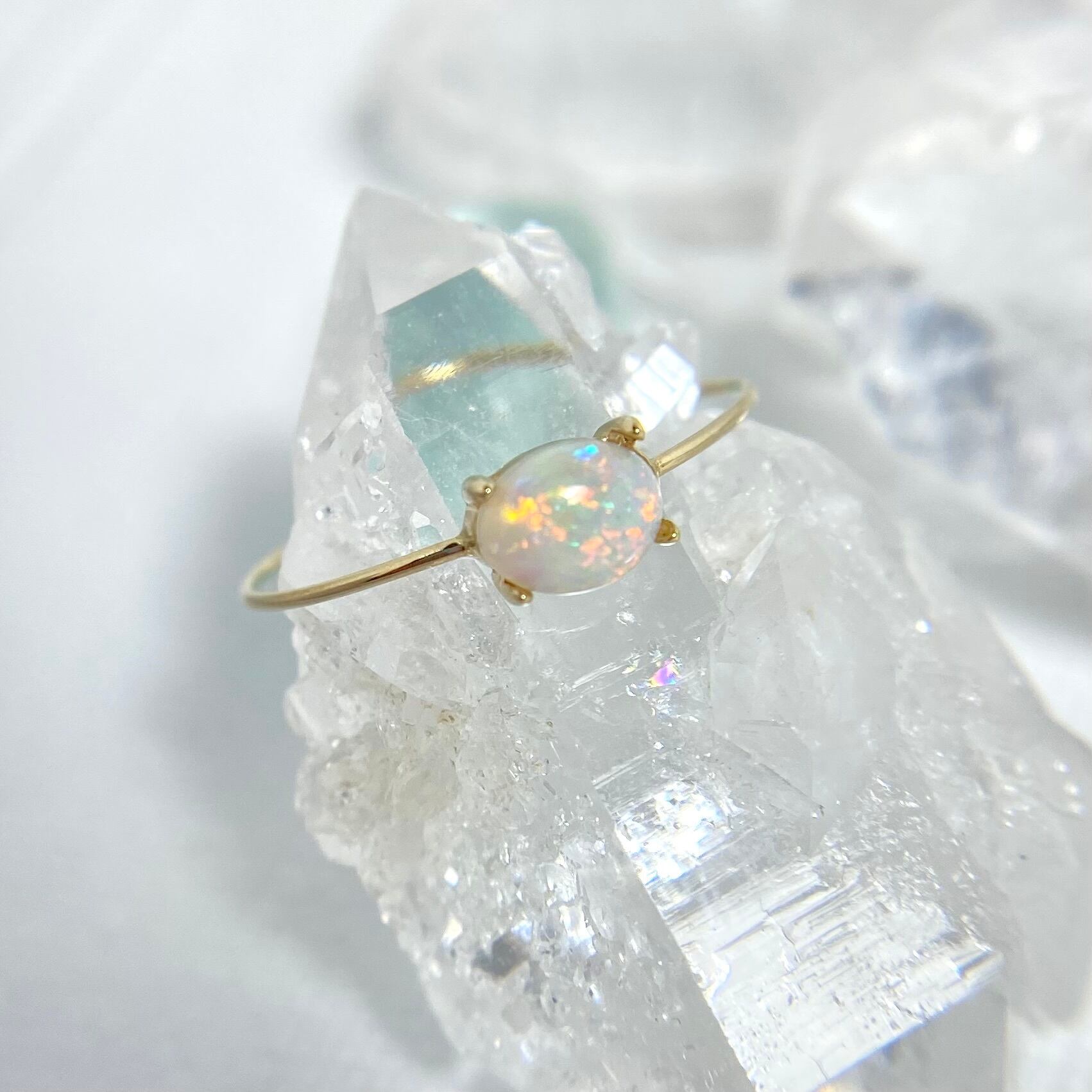 K10 天然オパールリング (選べるサイズ)オーストラリア産原石から磨いた1点ものジュエリー!